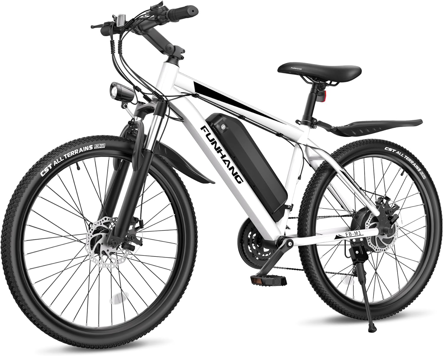 Funhang Electric Bike for Adults, 26'' 1000W Peak Ebike, Up to 50 Miles 21.7MPH Electric Mountain Bike with 48V 374.4WH Removable Battery, Adjustable Stem, Fenders, Lockable Suspension Fork, 21-Speed
