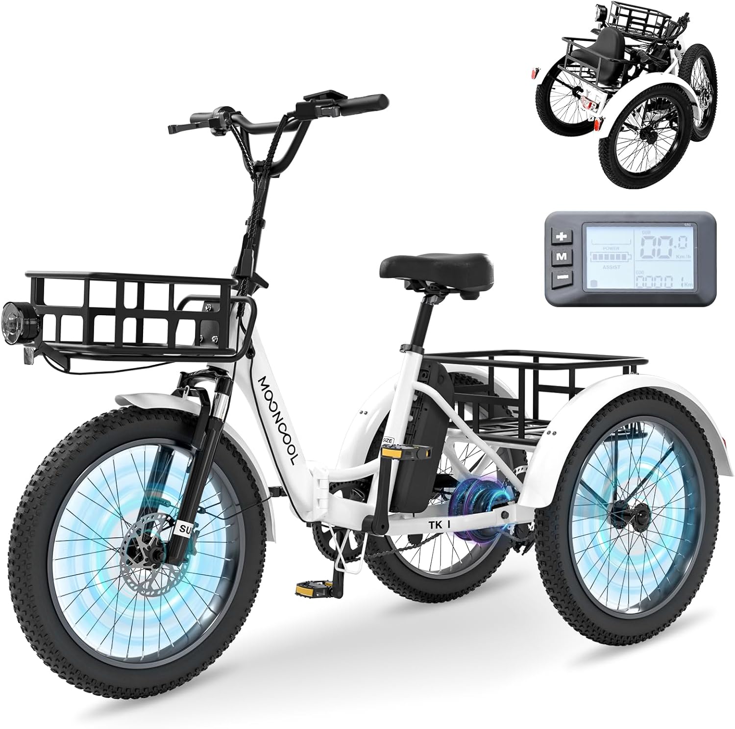 MOONCOOL Electric Tricycle for Adults, 500W/750W 48V 20 Folding Electric Trike Peak Power 1100W, 3 Wheels Electric Bicycle, Aluminum Frame Electric Tricycle with Large Basket and Removable Battery