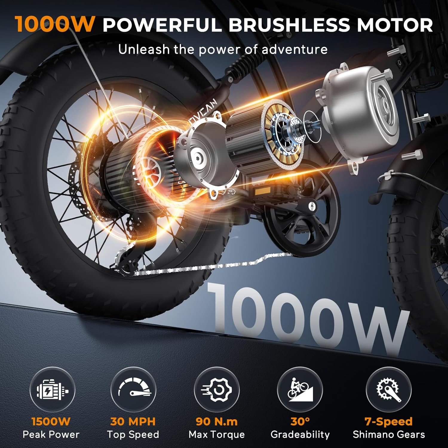 Movcan V60/V60 Pro Electric Bike, 48V 15.6/18.2Ah Removable Battery 20_ Fat Tire Electric Bike, 1000/1500W Motor 30/33MPH Top Speed Electric Motorcycle, 7 Speed Dual Disc/Hydraulic Brake E Bikes