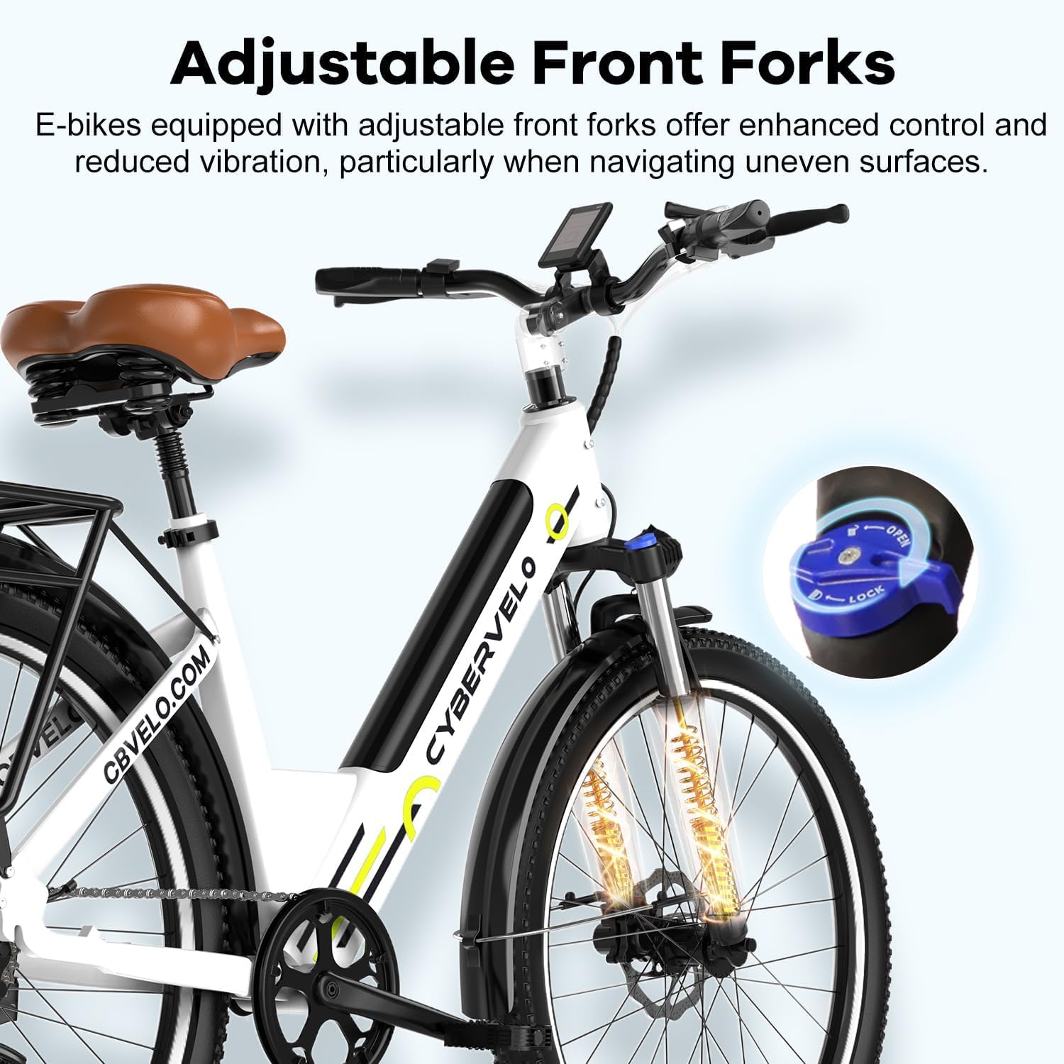 - Adjust Front Suspension,Saddle shock Absorption and Dual Disc Brakes: Equipped with 2 front fork spring shock absorbers, Saddle shock Absorption and 2 puncture-resistant tires, make sure you safe and comfortable, outstanding shock absorption performance. Best ebikes for adults under 700,Combined with front and rear mechanical disc brakes and the EABS system, Which enjoy a comfortable riding experience and powerful braking even on steep slopes, all rugged terrain,