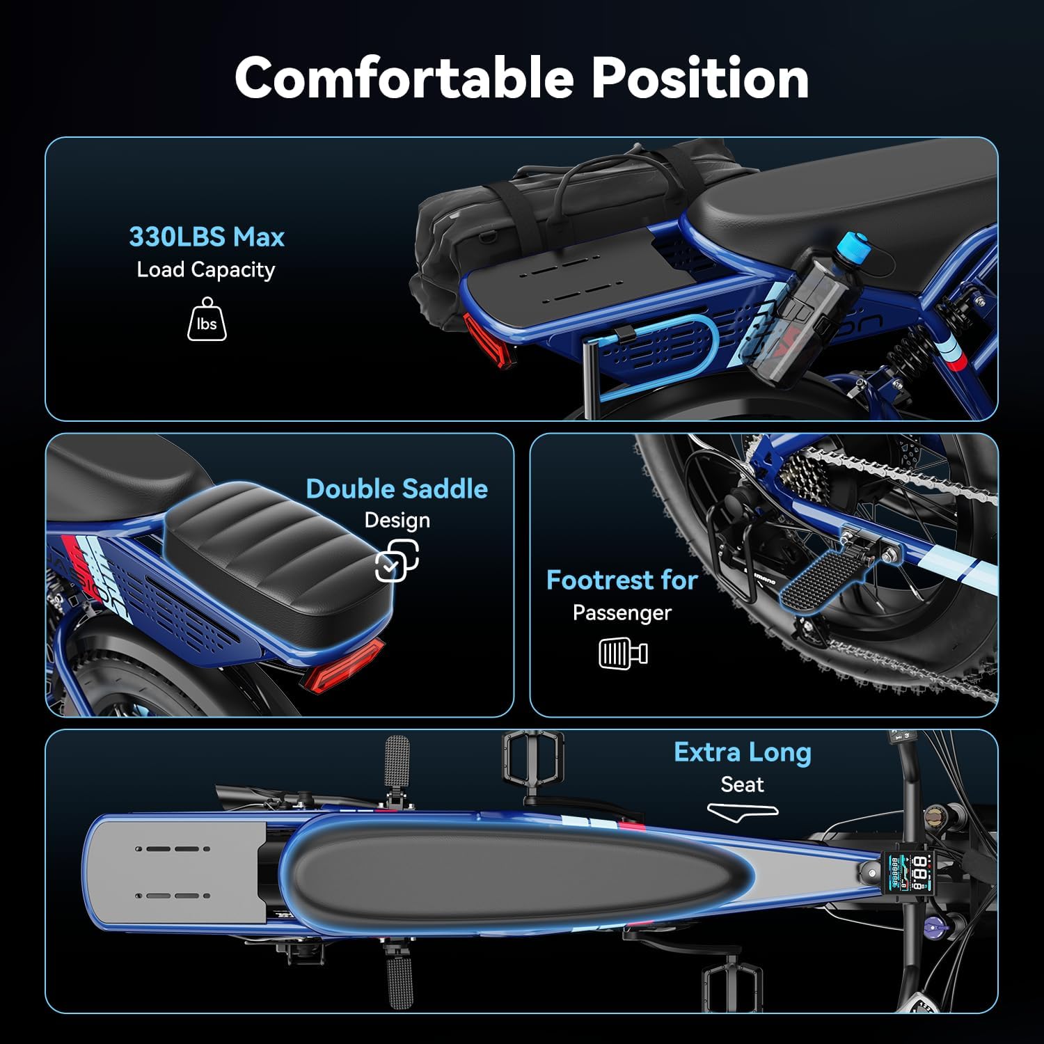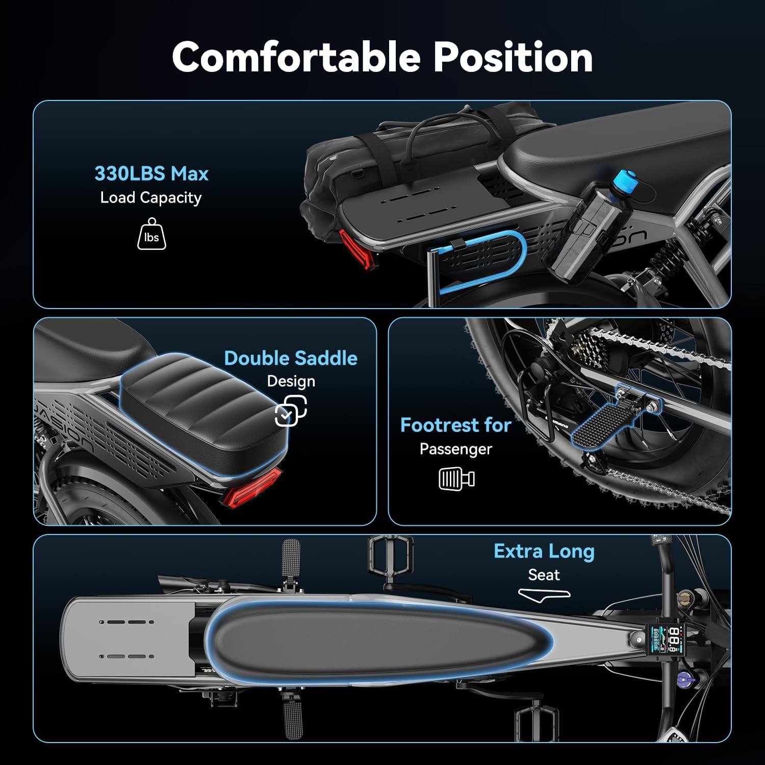 - __etro Electric Bicycle Style & Durable Reliable Materials__asion RetroVolt adult electric bike is adopt of high-quality carbon steel as the frame material, making it more durable and able to easily support a weight of 330LBS, perfect for adults. We carefully select high-quality saddle materials to ensure players and friends enjoy the utmost comfort during your rides. 3 optional retro and fashionable colors allow you to enjoy the fun of cycling during commuting and off-road activities.