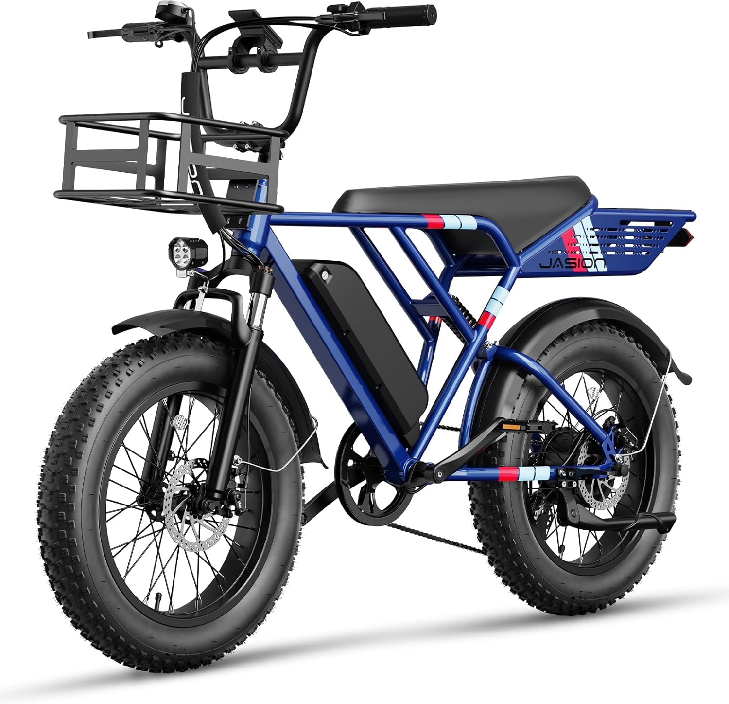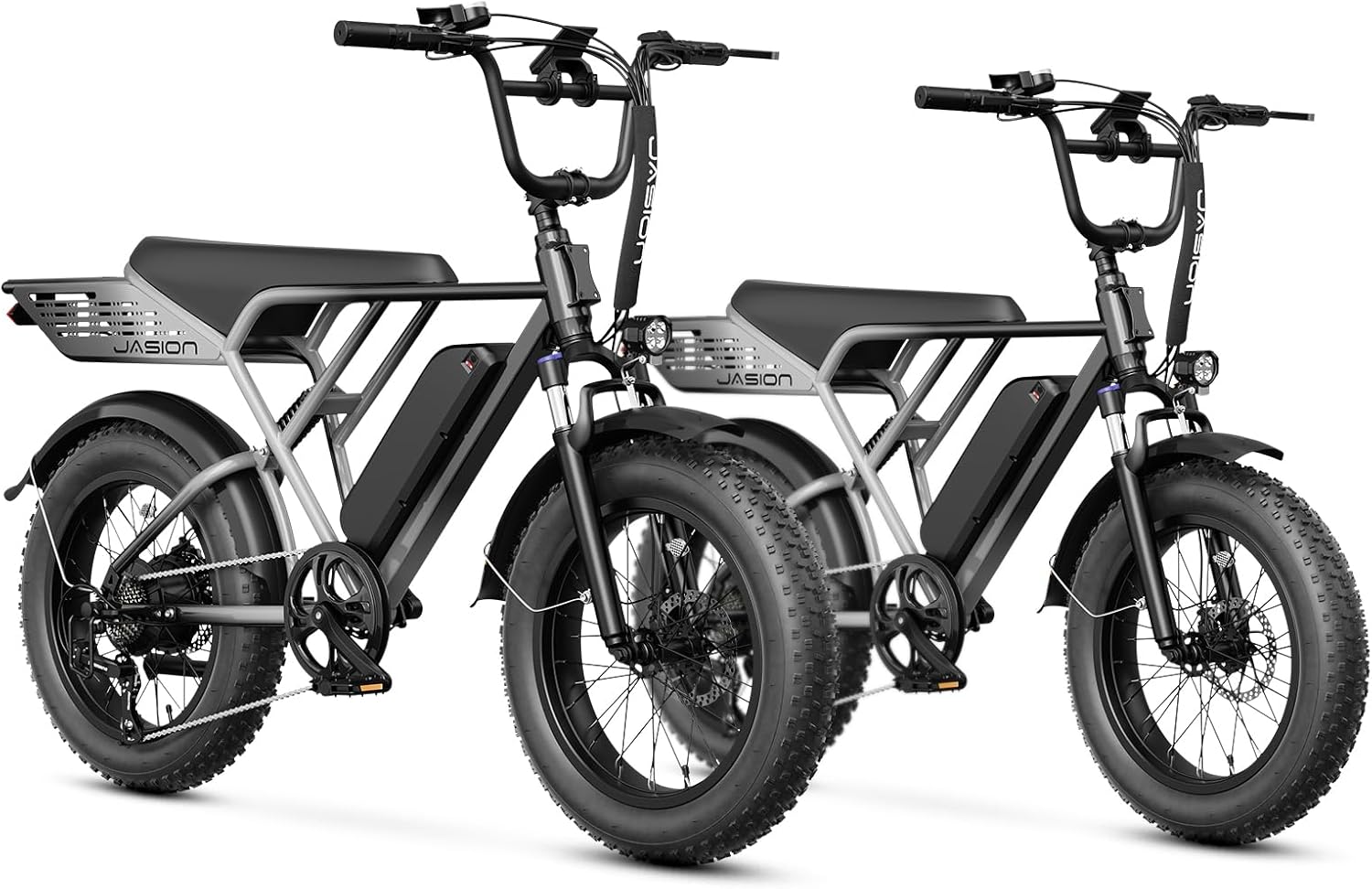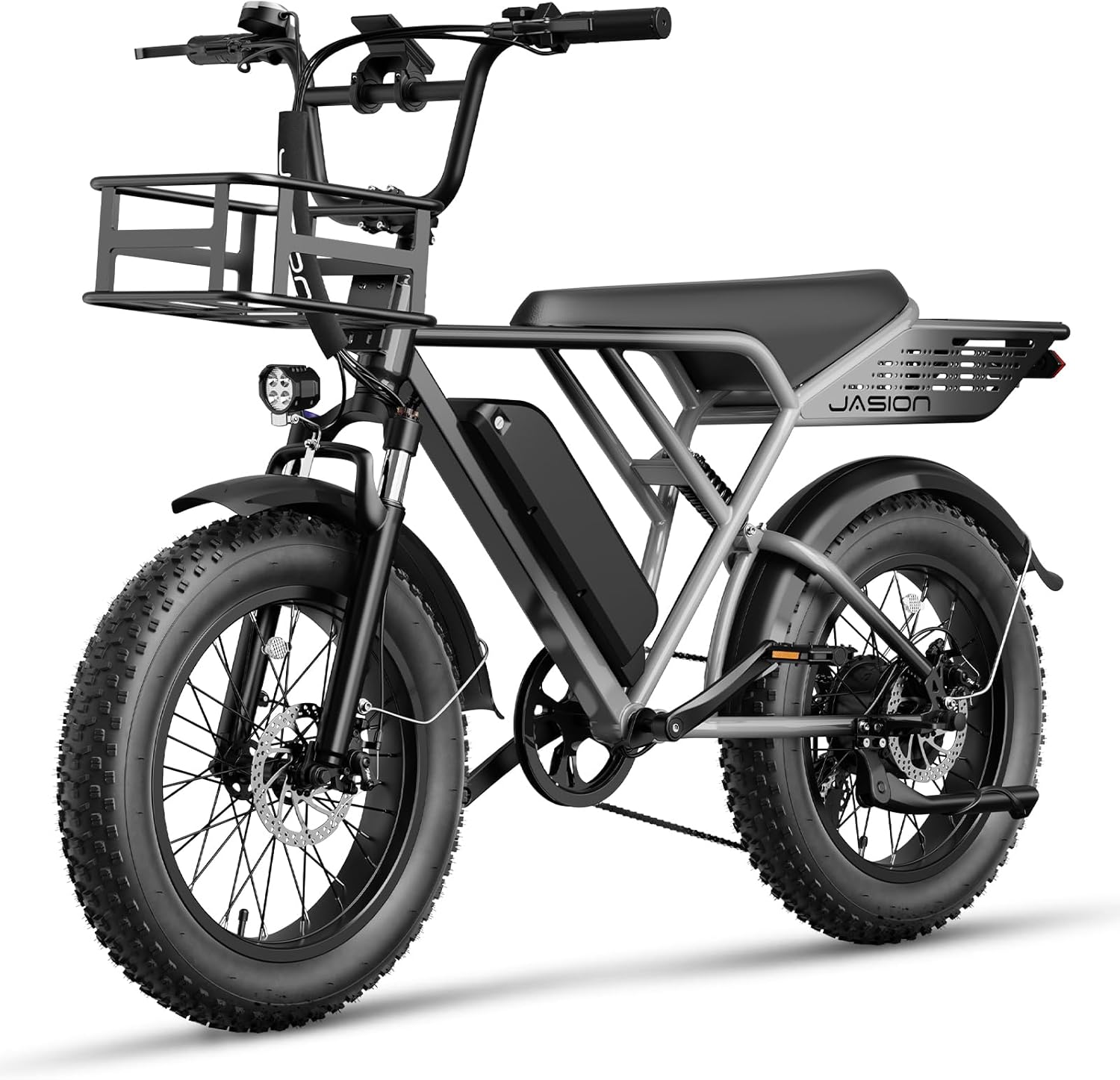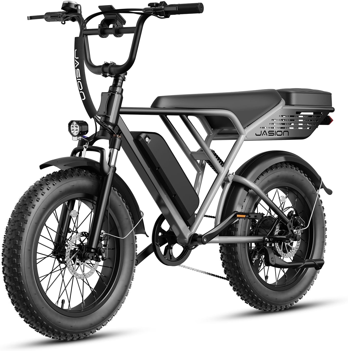 - __afety & Stability for Exceptional Riding Experience__he full front & rear suspension system of this fat tire ebike, combined with 20'x 4' anti-stab snow fat tires, absorbs most of the bumps and vibrations during riding. Whether bumpy terrain or city streets, Jasion e bike ensures comfort and stability.The front & rear dual mechanical disc braking system can provide powerful braking capabilities and precise instant braking speed even on slippery roads, ensuring your safety at all times.