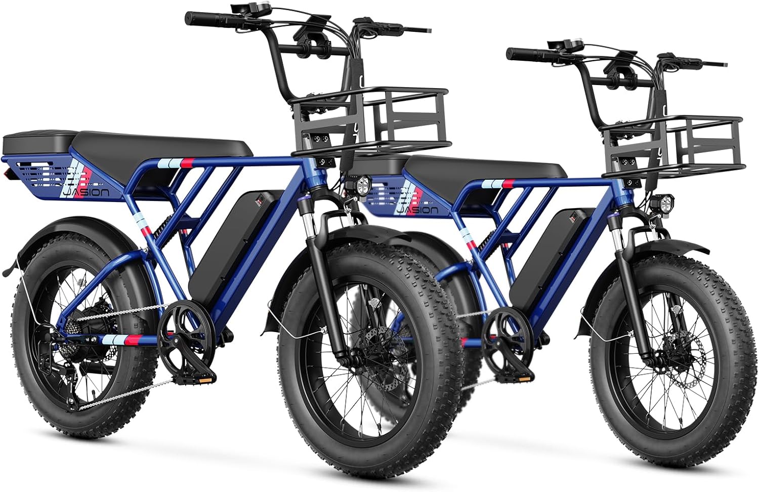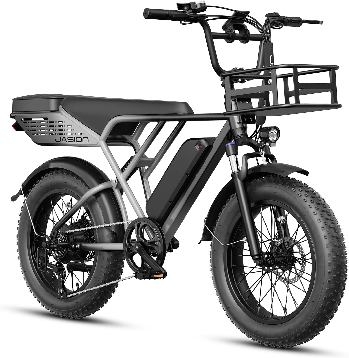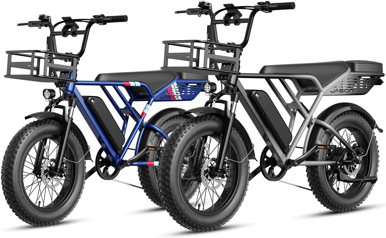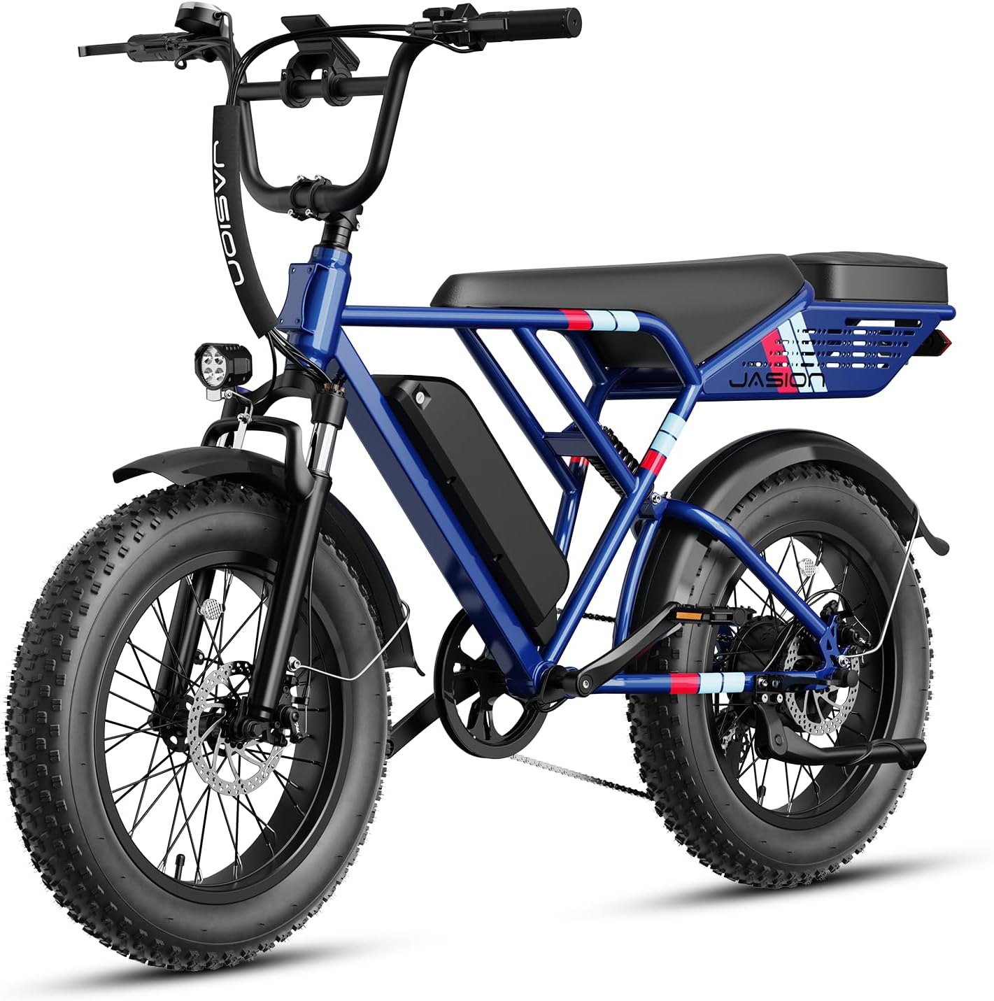 - __afety & Stability for Exceptional Riding Experience__he full front & rear suspension system of this fat tire ebike, combined with 20'x 4' anti-stab snow fat tires, absorbs most of the bumps and vibrations during riding. Whether bumpy terrain or city streets, Jasion e bike ensures comfort and stability.The front & rear dual mechanical disc braking system can provide powerful braking capabilities and precise instant braking speed even on slippery roads, ensuring your safety at all times.
