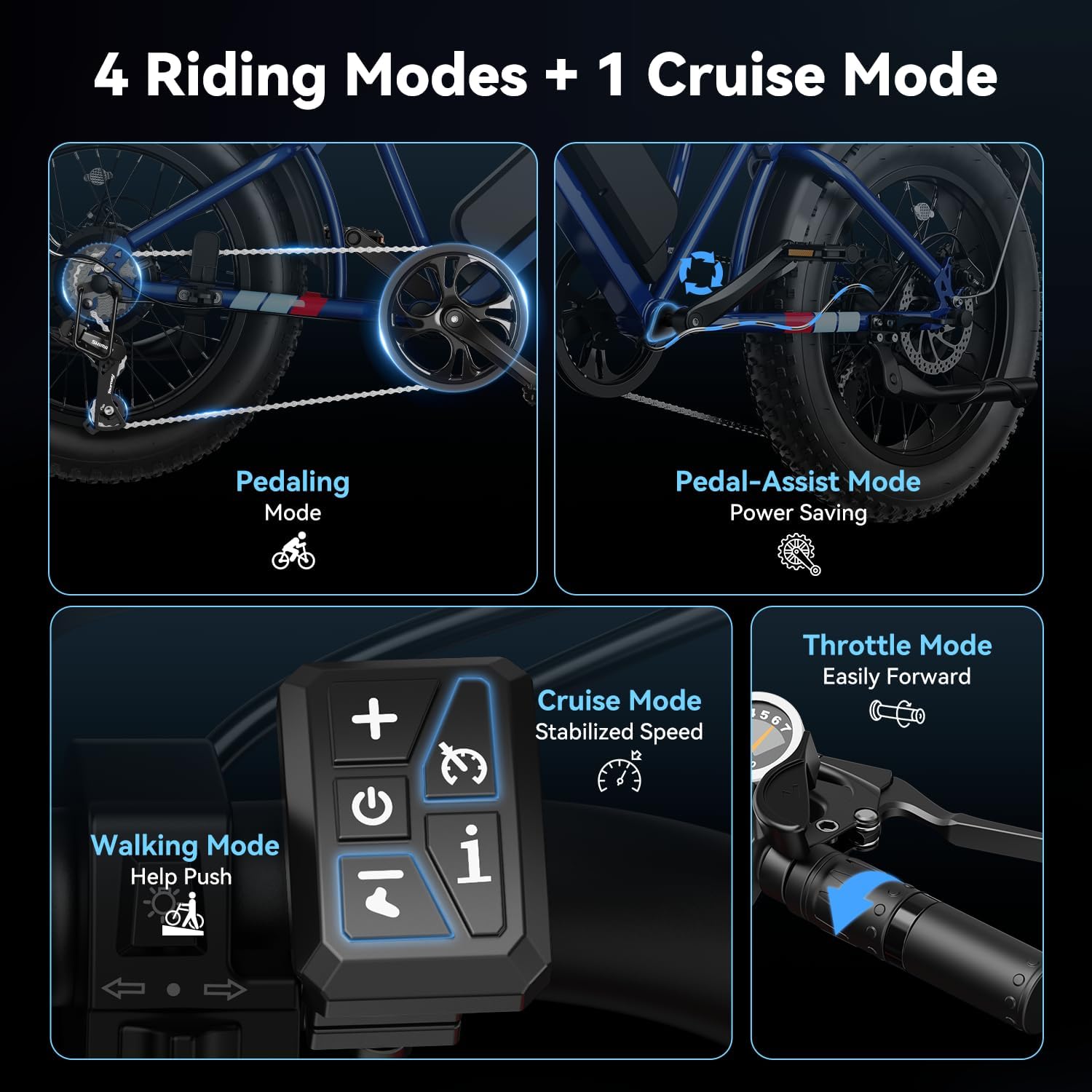 - __owerful Brushless Motor & 30MPH Max Speed__asion RetroVolt electric bike is equipped with a __eak 1500W__igh-speed brushless motor, 99Nm maximum torque, and up to 30MPH speeds, making steep hills and long rides a breeze. 7-speed transmission and 4 cycling modes: pure electric, electric assist, pure pedal and cruise Mode. Long-range e-bike offers perfect efficiency and balance of power, meeting your daily commuting and mountain crossing requirements.