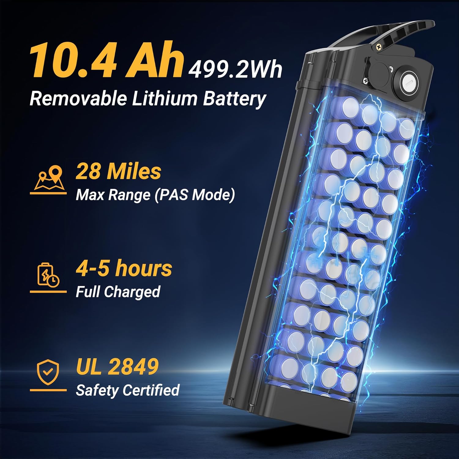 - __ Long Range Battery: Equipped with a 48V, 10.4Ah removable battery (total capacity of 499.2Wh), the F1 offers up to 21-28 miles per charge in pure electric mode. This e bike is perfect for long-distance commutes or outdoor adventures, ensuring you stay powered up throughout the day.