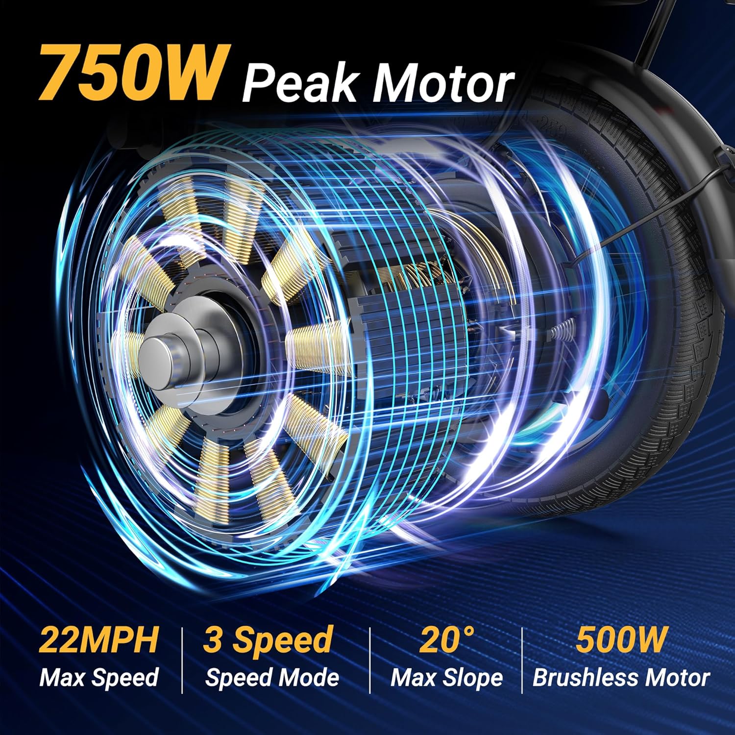 - _____� 750W Power Motor: The F1 electric bike for adults is powered by a 750W peak motor, reaching a top speed of 22 mph. Whether you're commuting or exploring, this adult electric bicycle ensures smooth, reliable power for effortless rides and easy climbs.