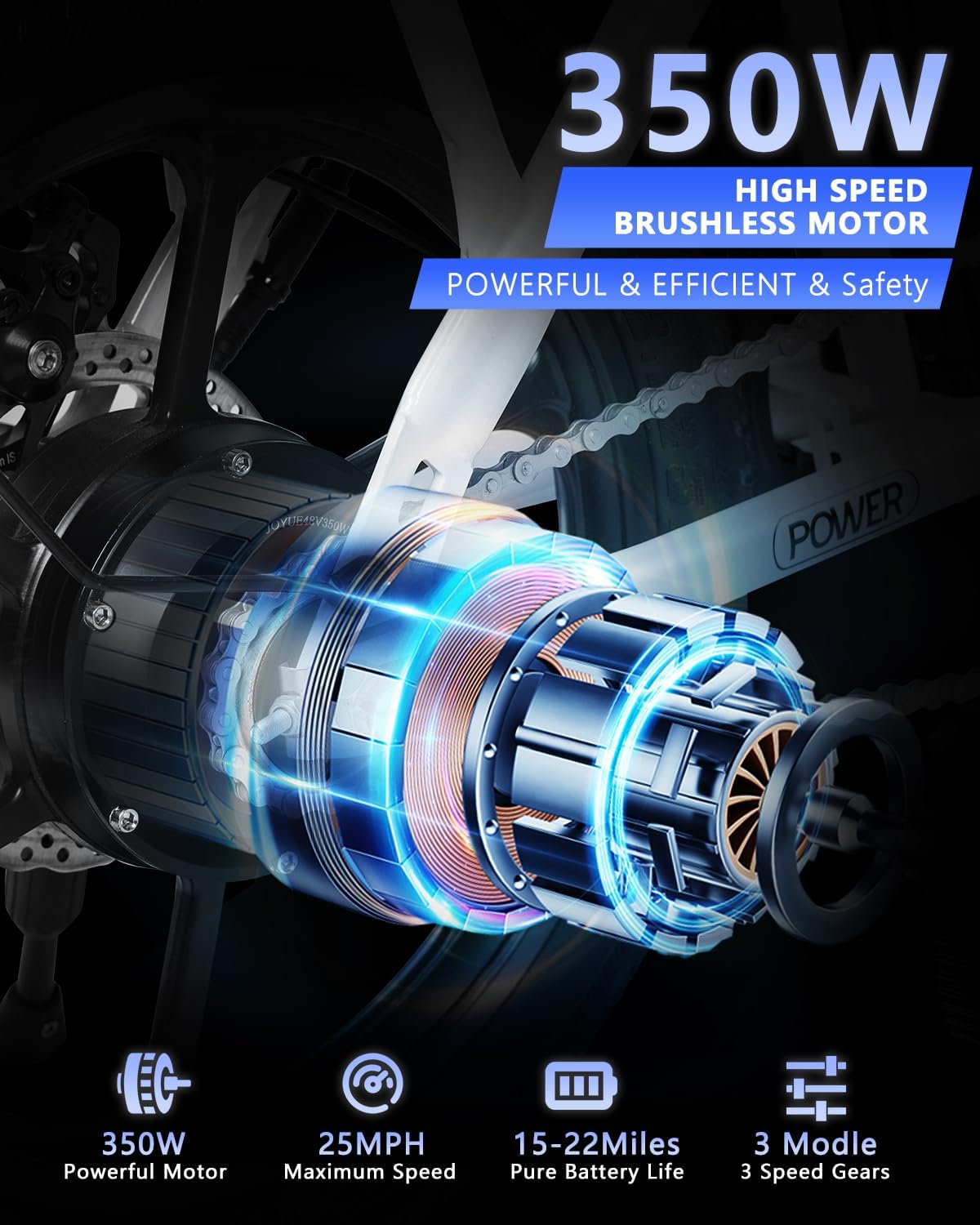 - _500W & 3 Riding Modes__he 500W brushless motor ensures safe and efficient riding, with a maximum speed of 20MPH. After fully charged, you can ride 20+ miles in pedal-assisted mode. It provides three riding modes: pure electric mode, pedal-assist mode, and normal bicycle mode to suit various needs. Our electric bycicle can easily cope with uphill slopes of up to 15°, and enjoy a breezy riding experience.
