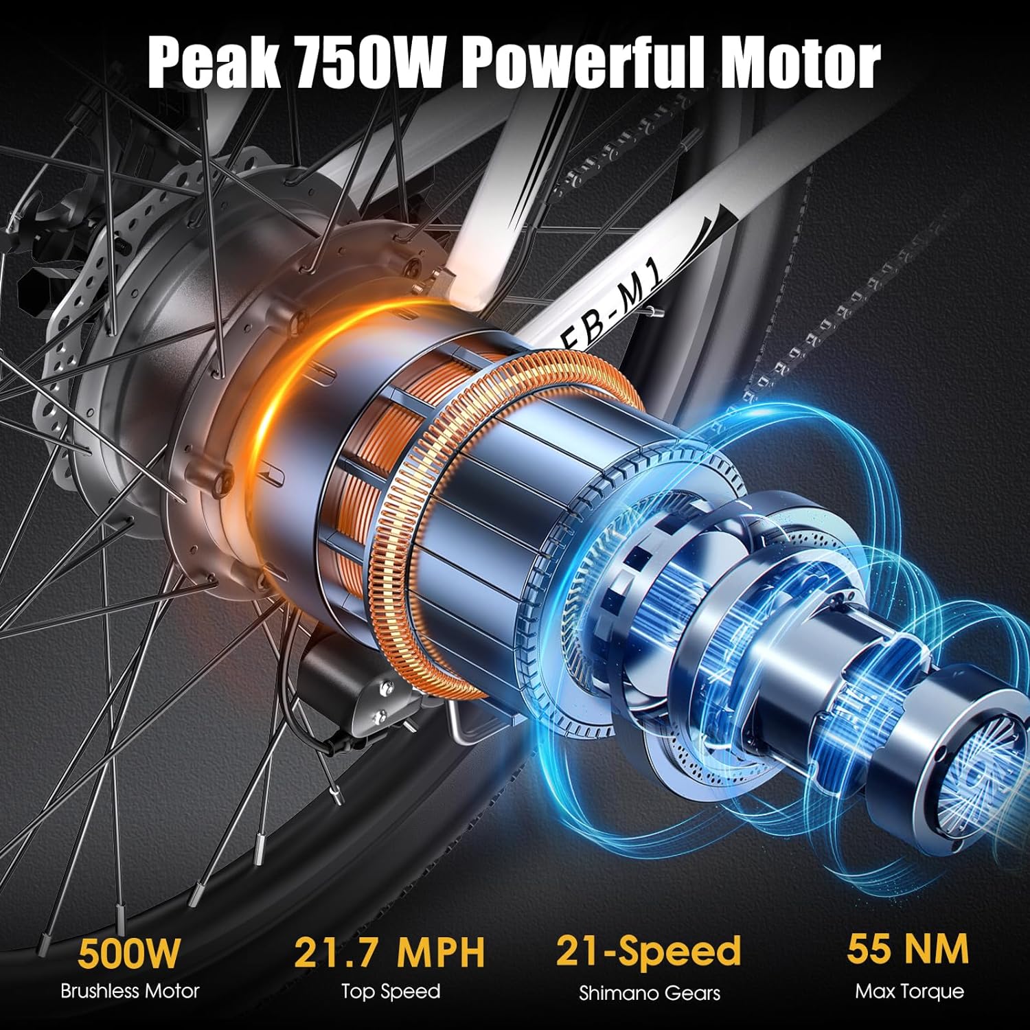 - Powerful 500W Motor & Removable Battery: Funhang electric bike with a 500W(Peak 1000W) high-speed brushless motor is able to achieve a top speed of 21.7mph, delivering impressive power and performance for conquering terrains. 48V 374.4Wh IPX5 waterproof Lithium-ion battery allows you to confidently travel up to 25-50 miles on a single charge. Its removable and lockable design makes it convenient to charge on/off the ebike, fully charged for 4-5 hours.