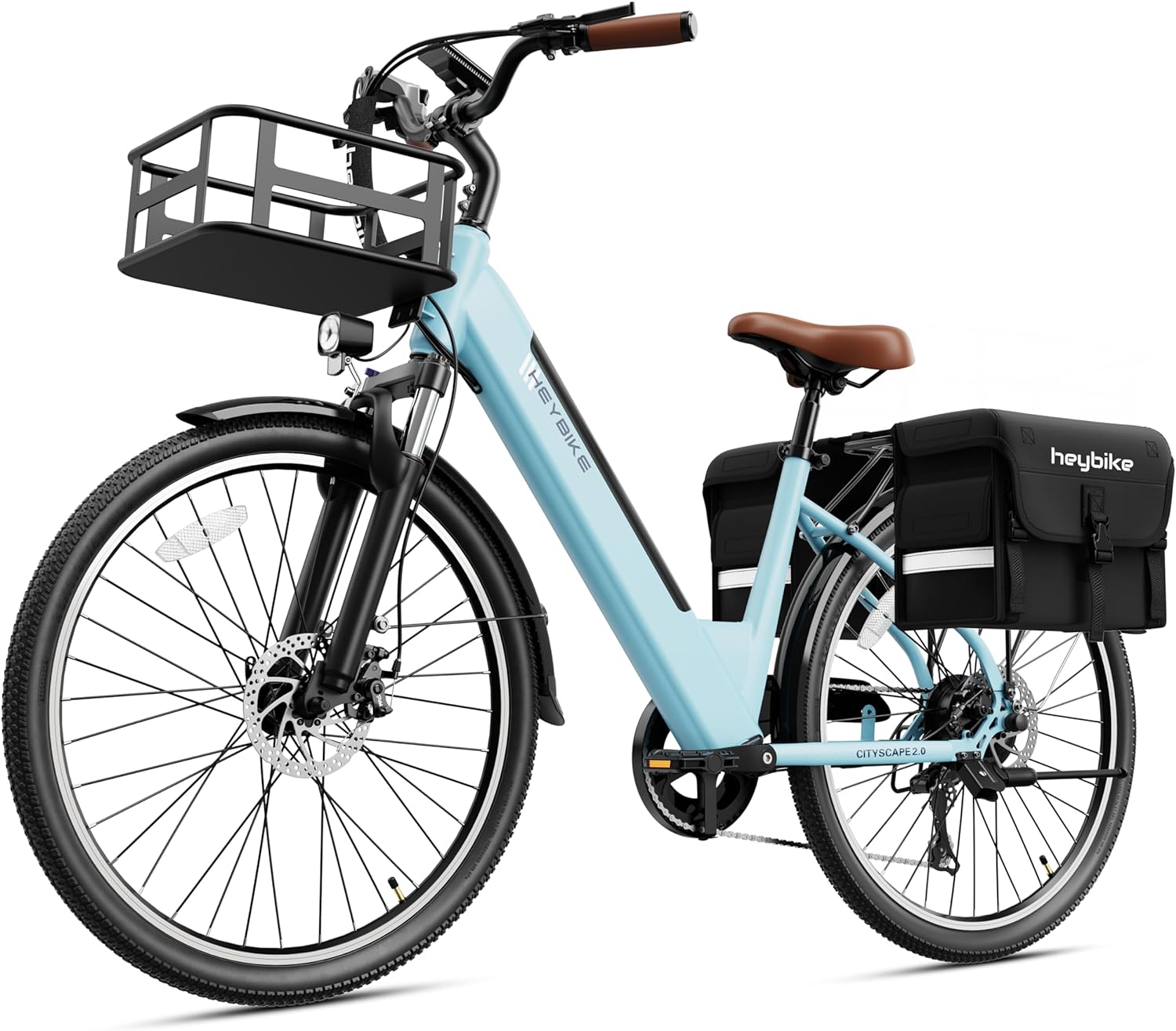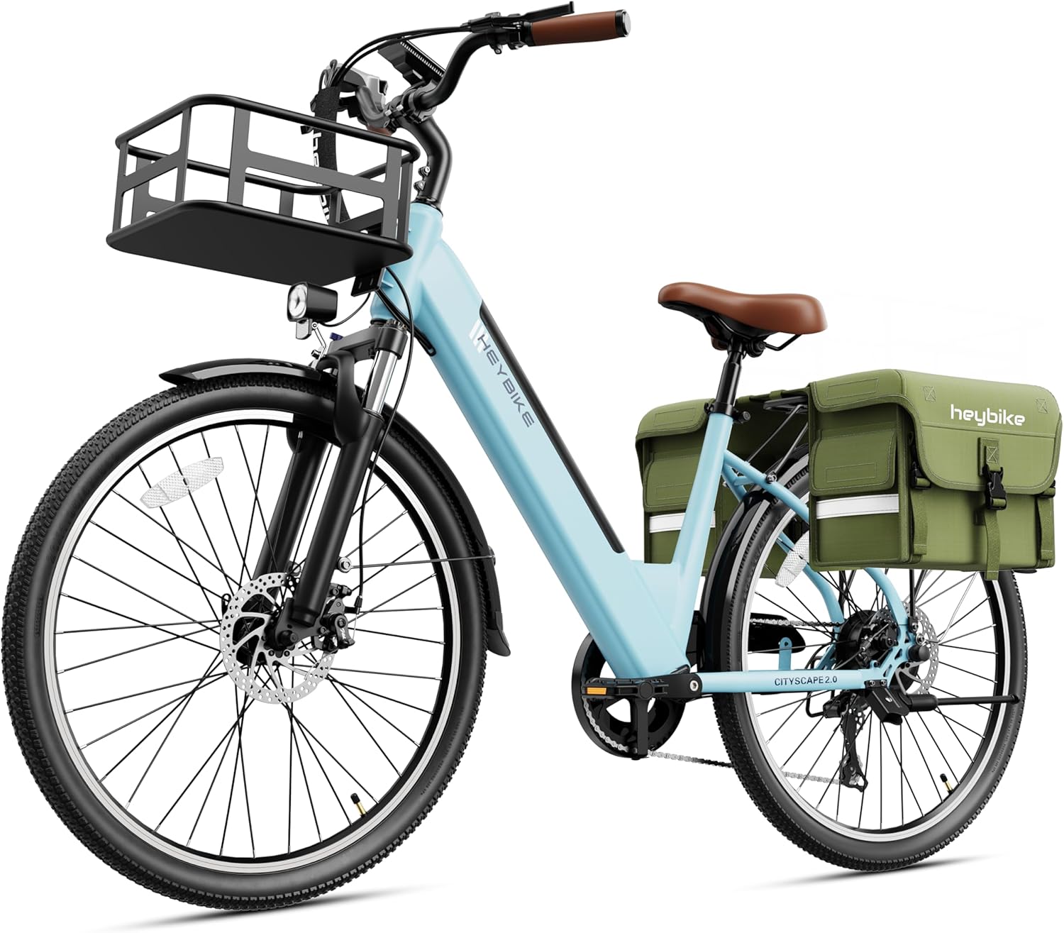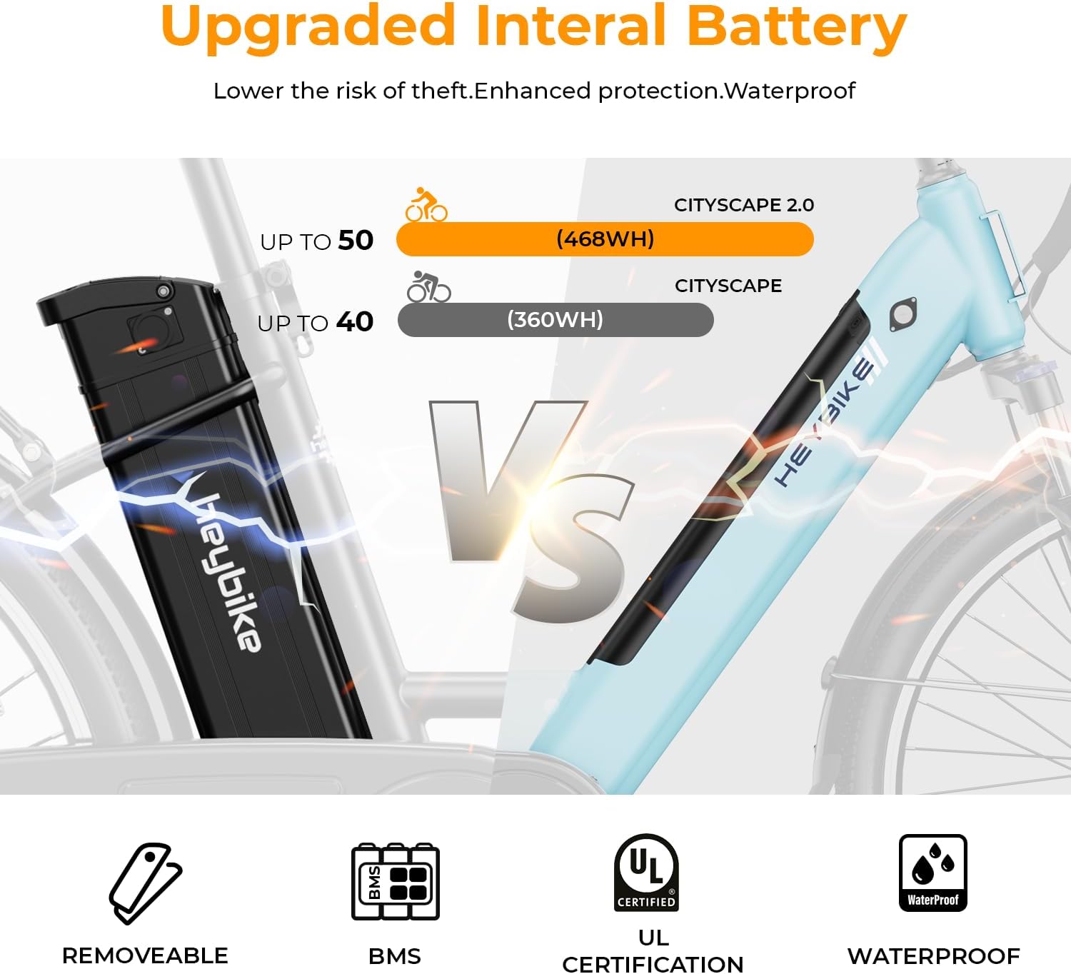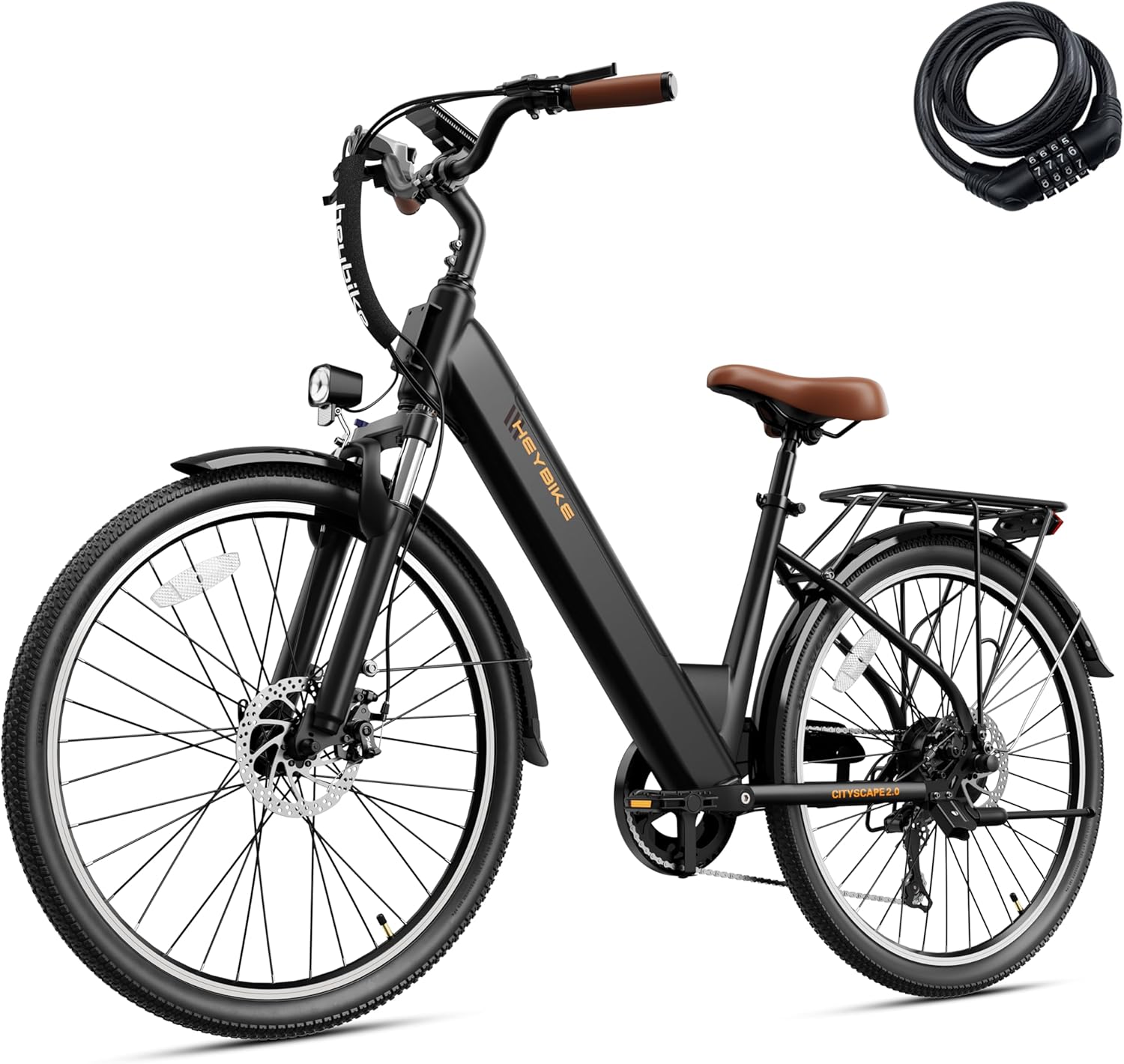- 500W High Torque Motor-Equipped with a 500W brushless motor (peak 1000W), Heybike Cityscape 2.0 boasts such powerful power that riders can effortlessly maneuver through traffic and tackle steep hills or challenging terrains with a maximum speed of up to 24MPH.