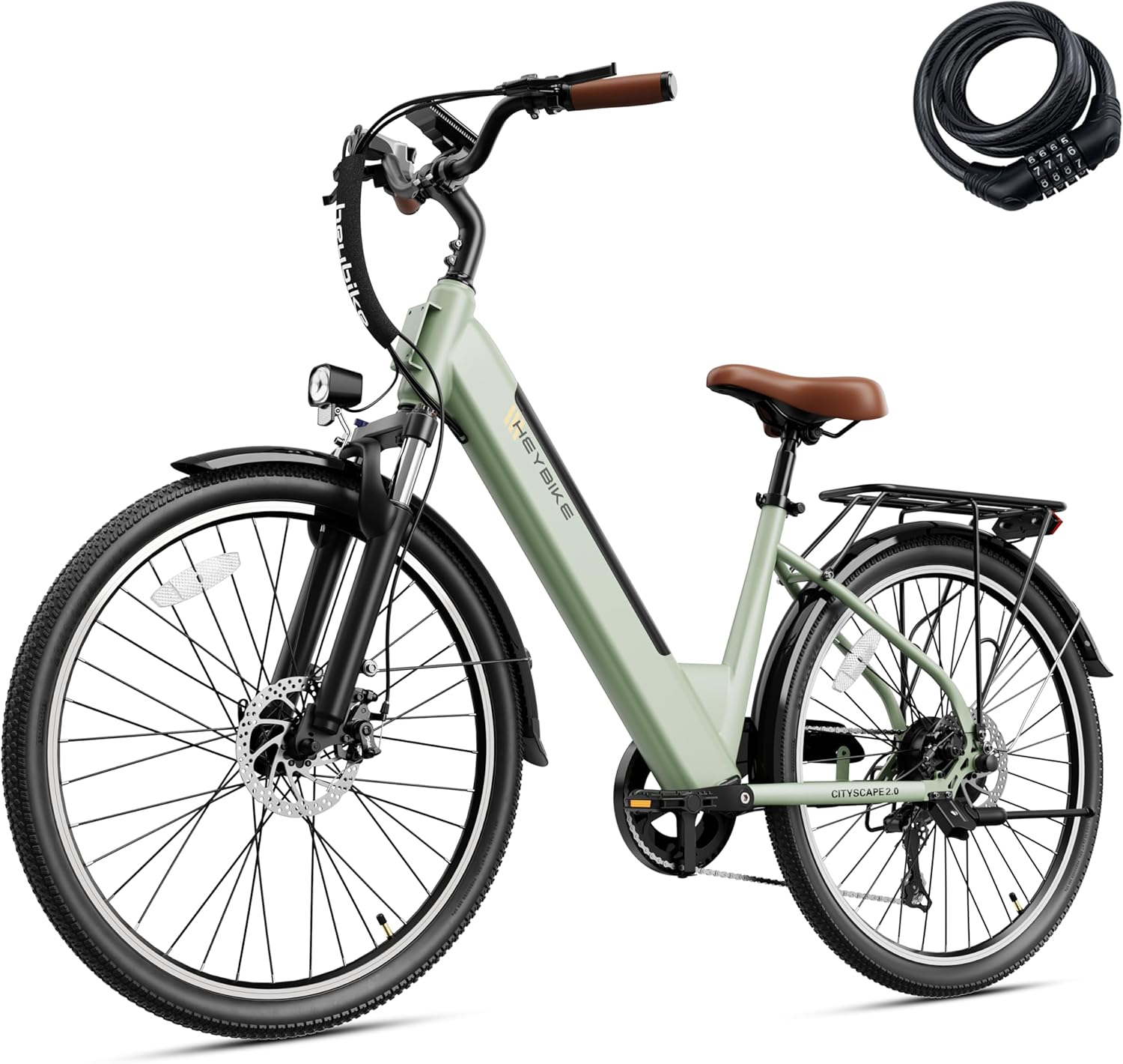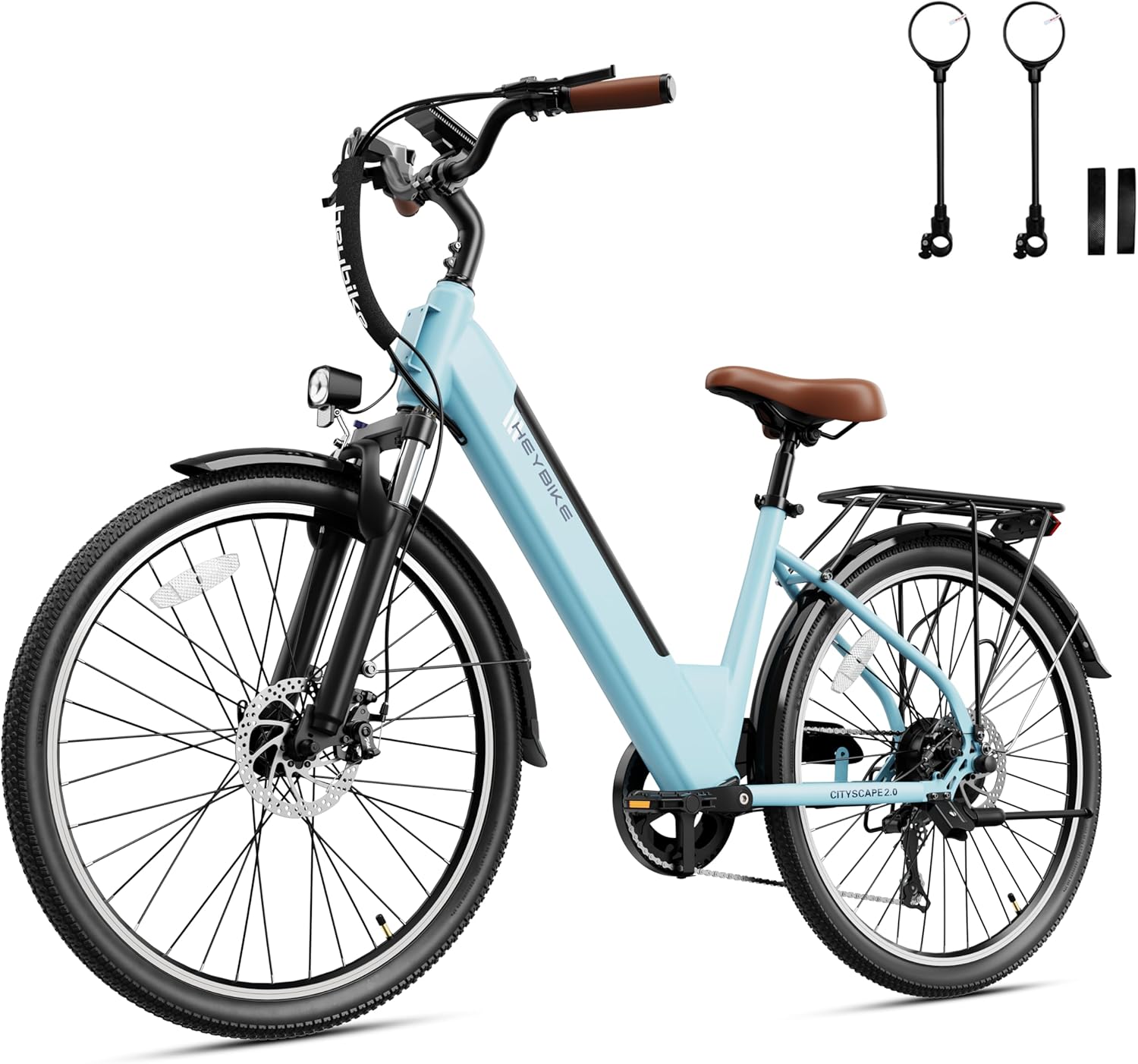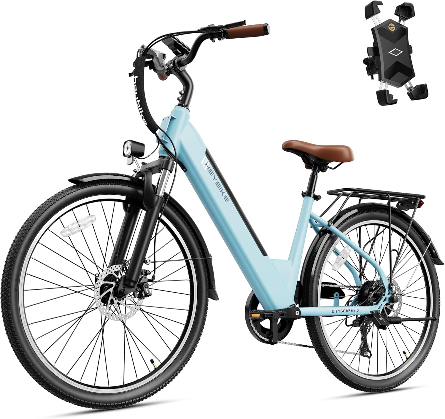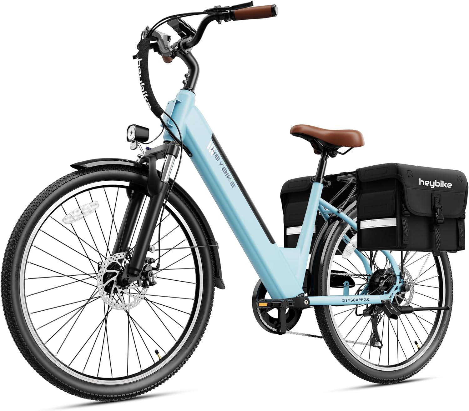 - 500W High Torque Motor-Equipped with a 500W brushless motor (peak 1000W), Heybike Cityscape 2.0 boasts such powerful power that riders can effortlessly maneuver through traffic and tackle steep hills or challenging terrains with a maximum speed of up to 24MPH.