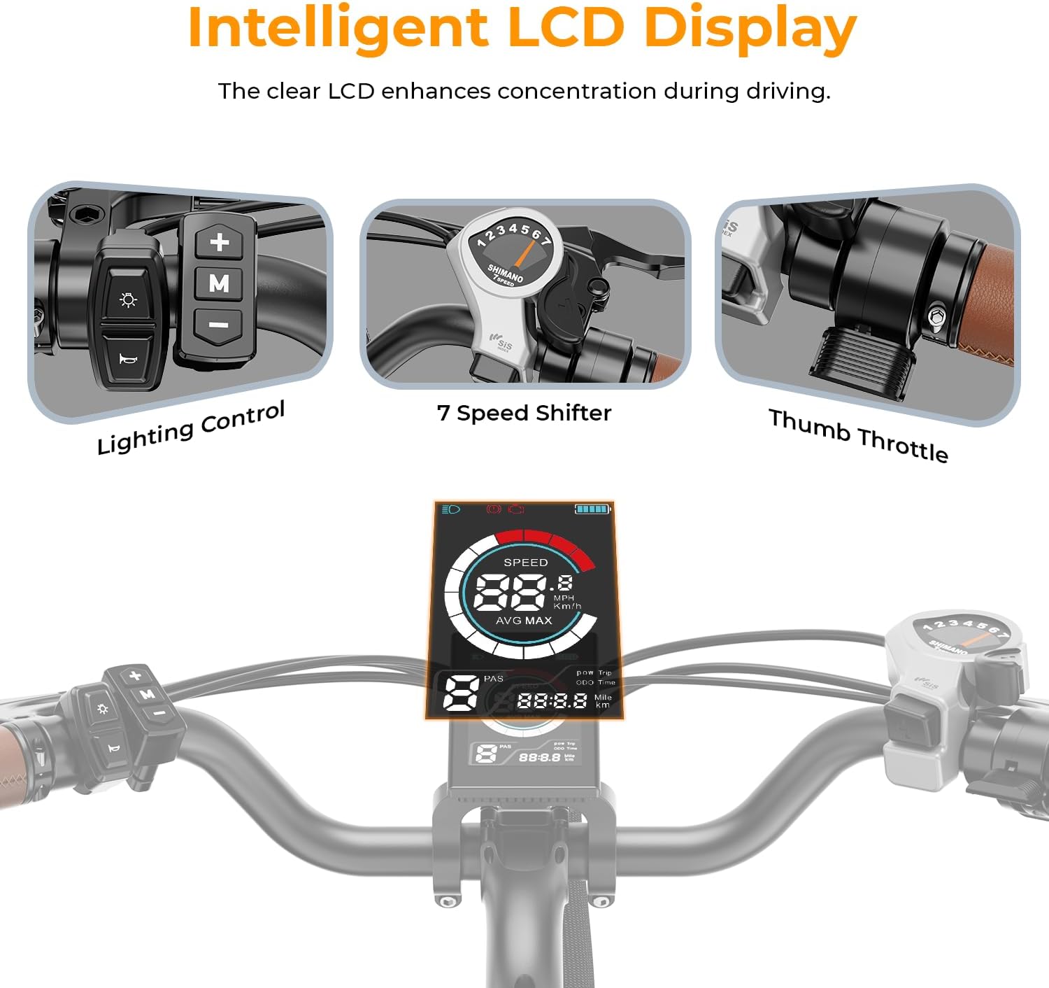 - 3 WORKING MODES - Effortlessly switch between throttle and pedal assistance to match your diverse riding moods. In throttle mode, the range can reach 30-35 miles, while in assisted mode, it extends to 35-50 miles. Moreover, in pedal-assist mode, it cleverly strengthens the muscles around the knees, ultimately contributing to maintaining your physical health.