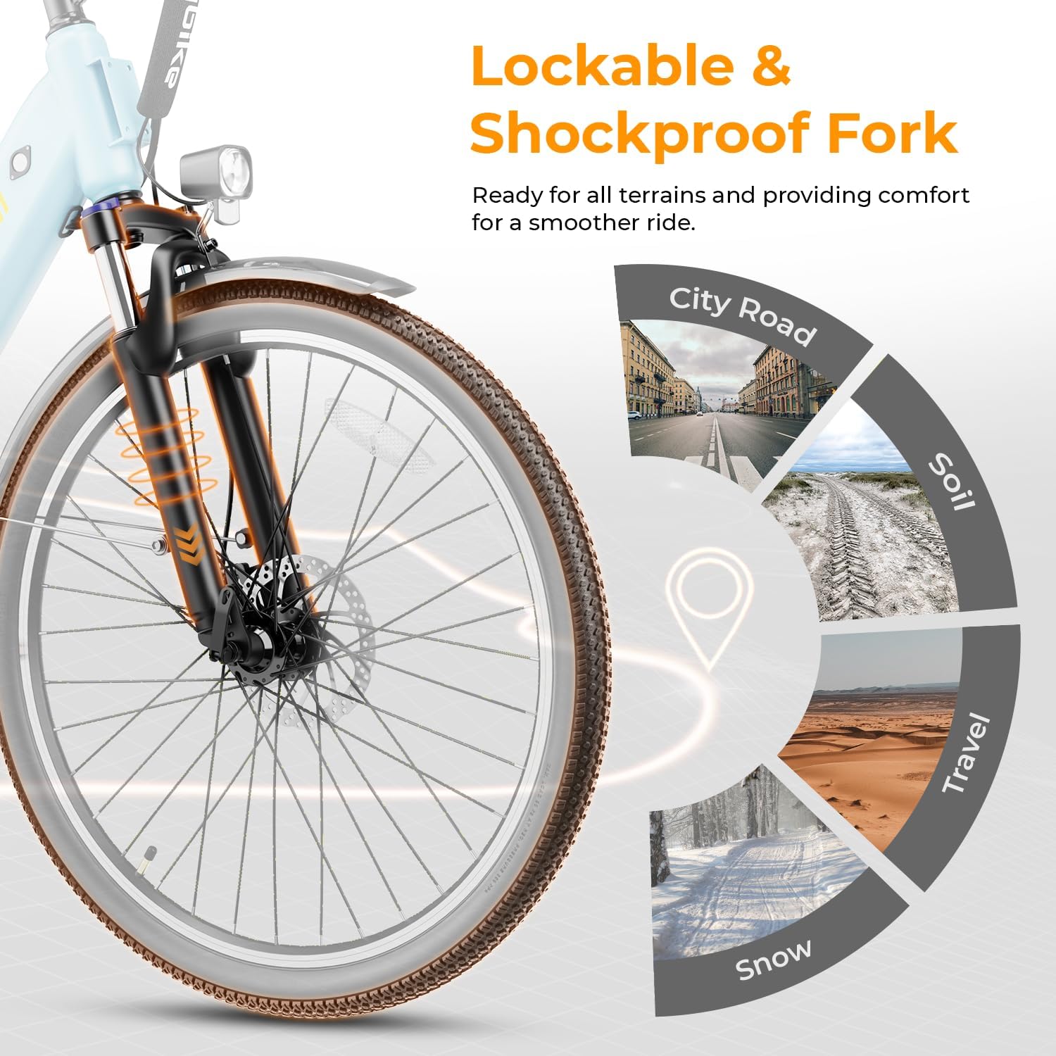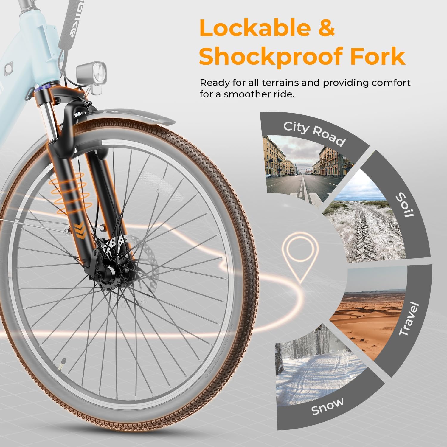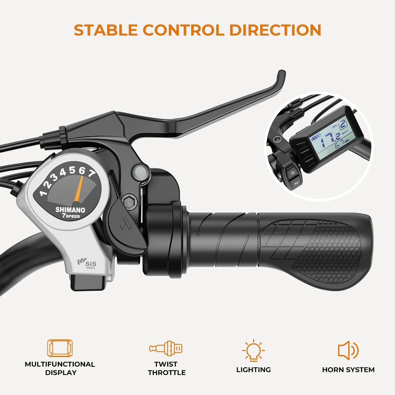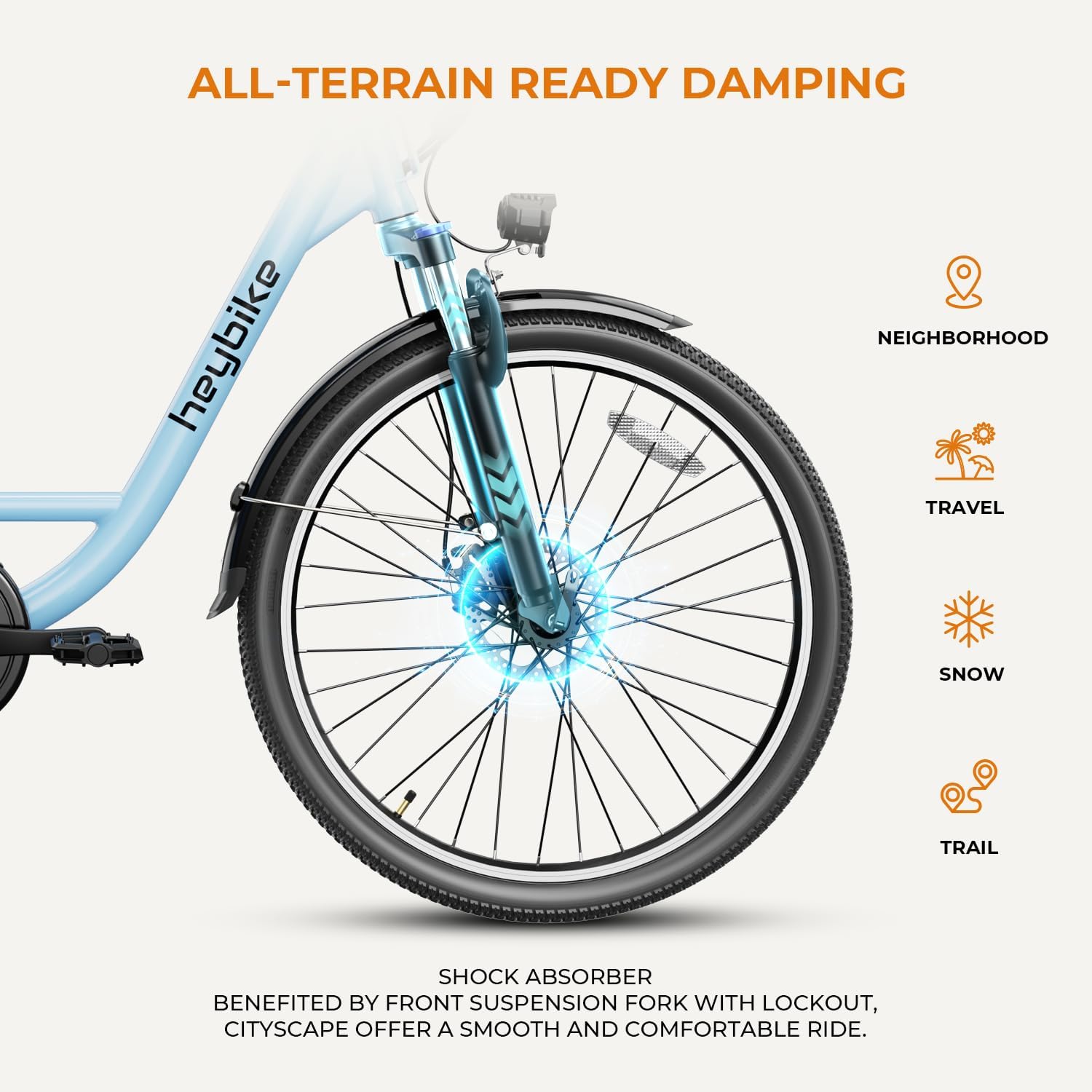 - Premium Features-Cityscape 2.0, with its state-of-the-art 7-speed and effective suspension, elevates your riding comfort to new heights, providing unprecedented control over your electric bike. The outstanding dual-disc brakes and lighting system comprehensively safeguard your safety.