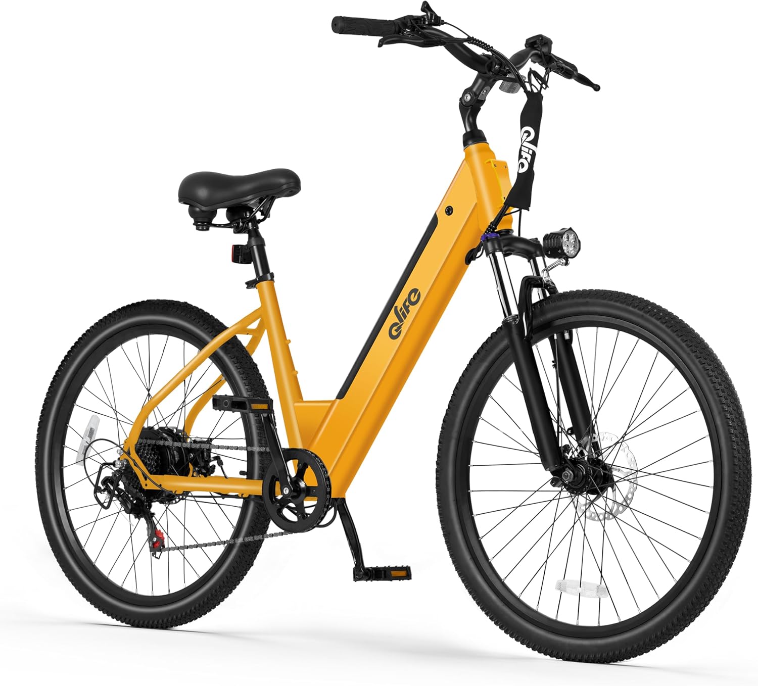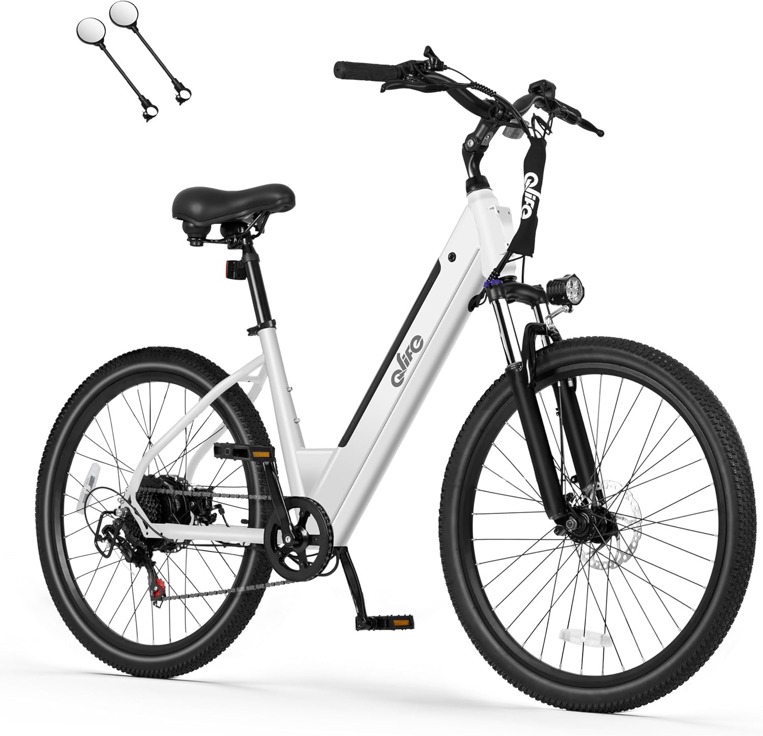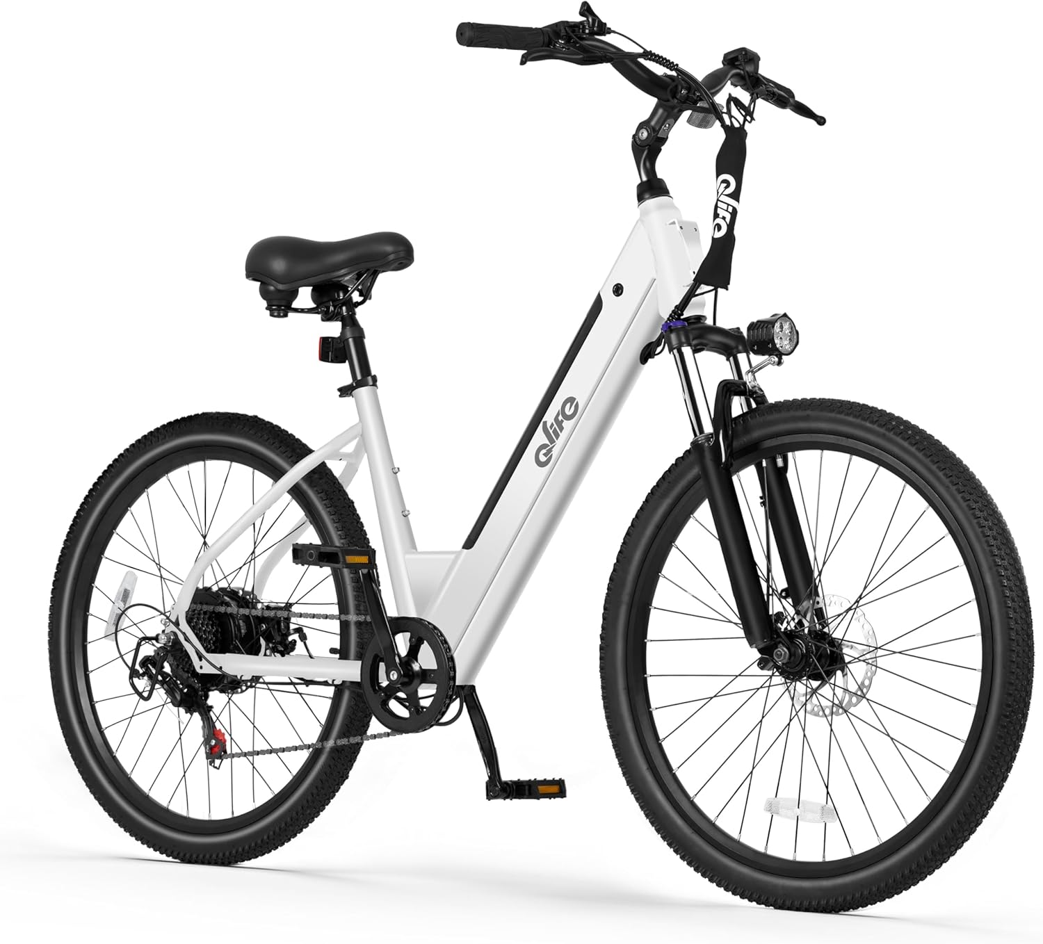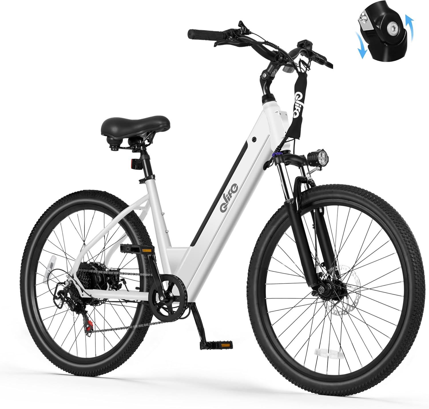- __ow-Step design__he unique step through frame design of the electric bicycle makes it easy for riders of any height to get on and off the bike. The ergonomically designed wide and comfortable seat and upright riding posture reduce riding fatigue and are suitable for long-term use.