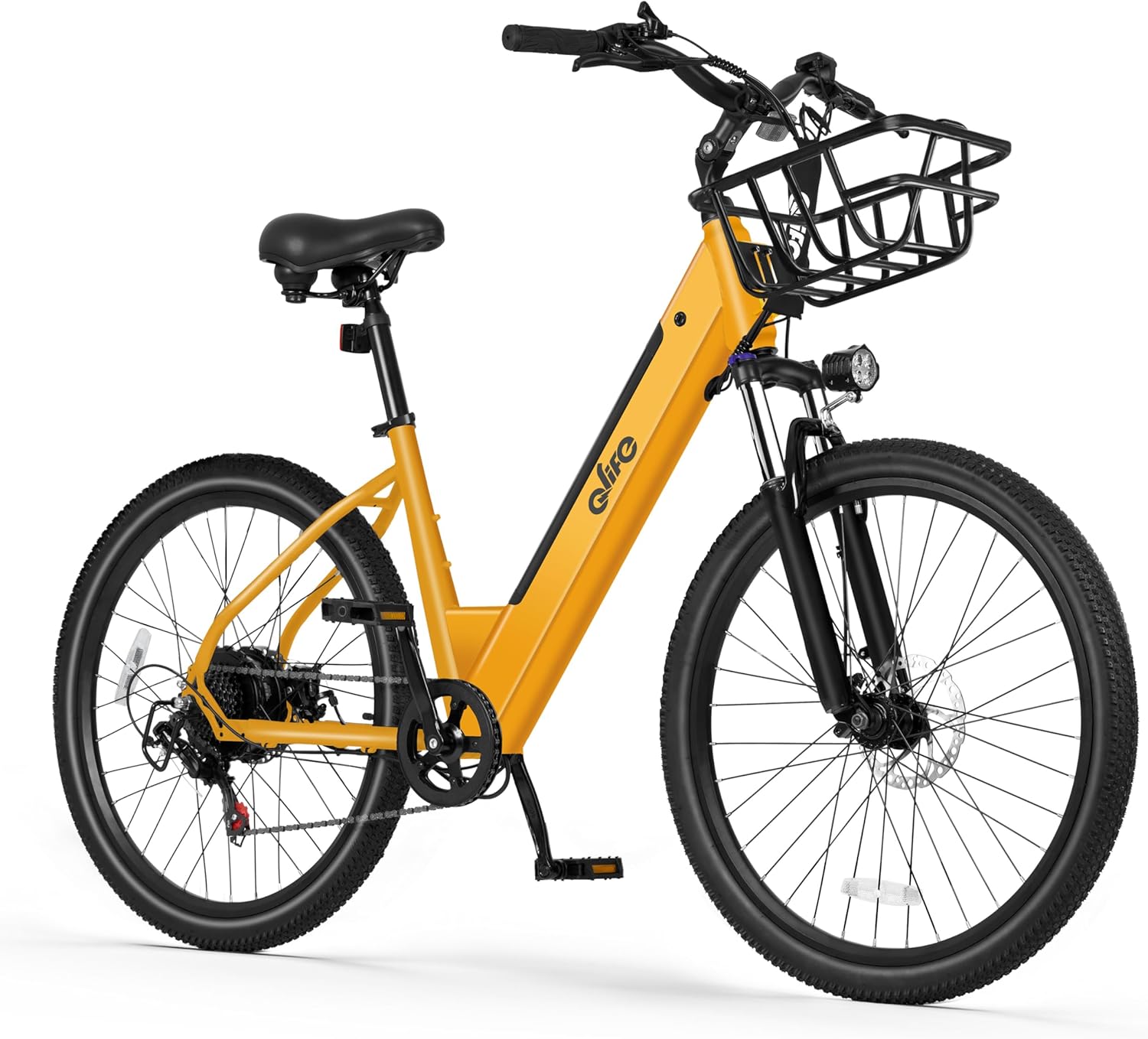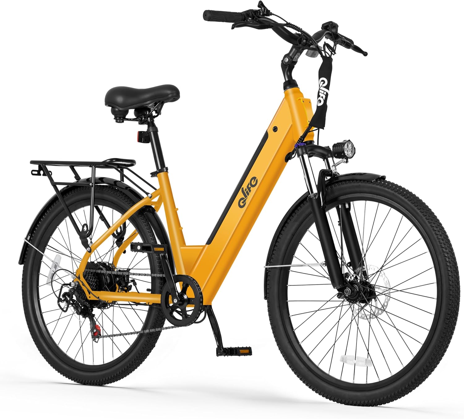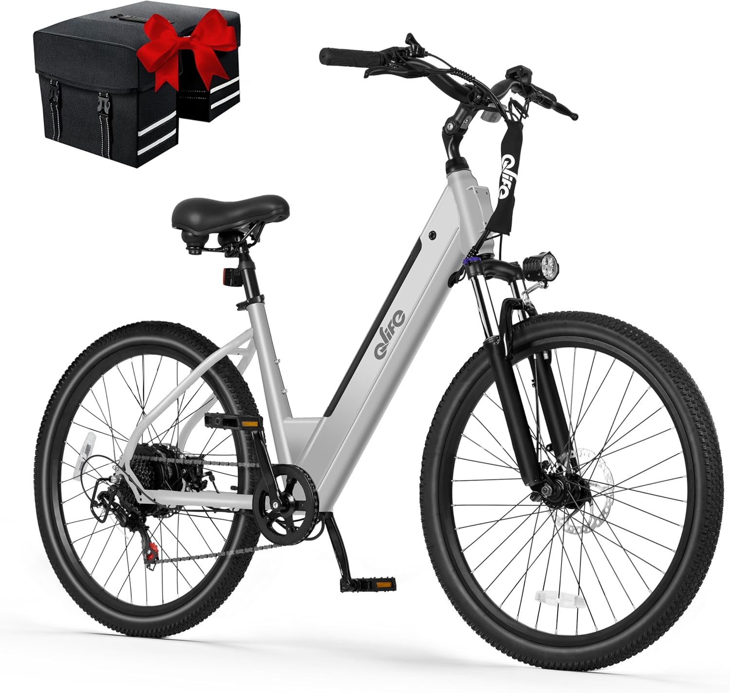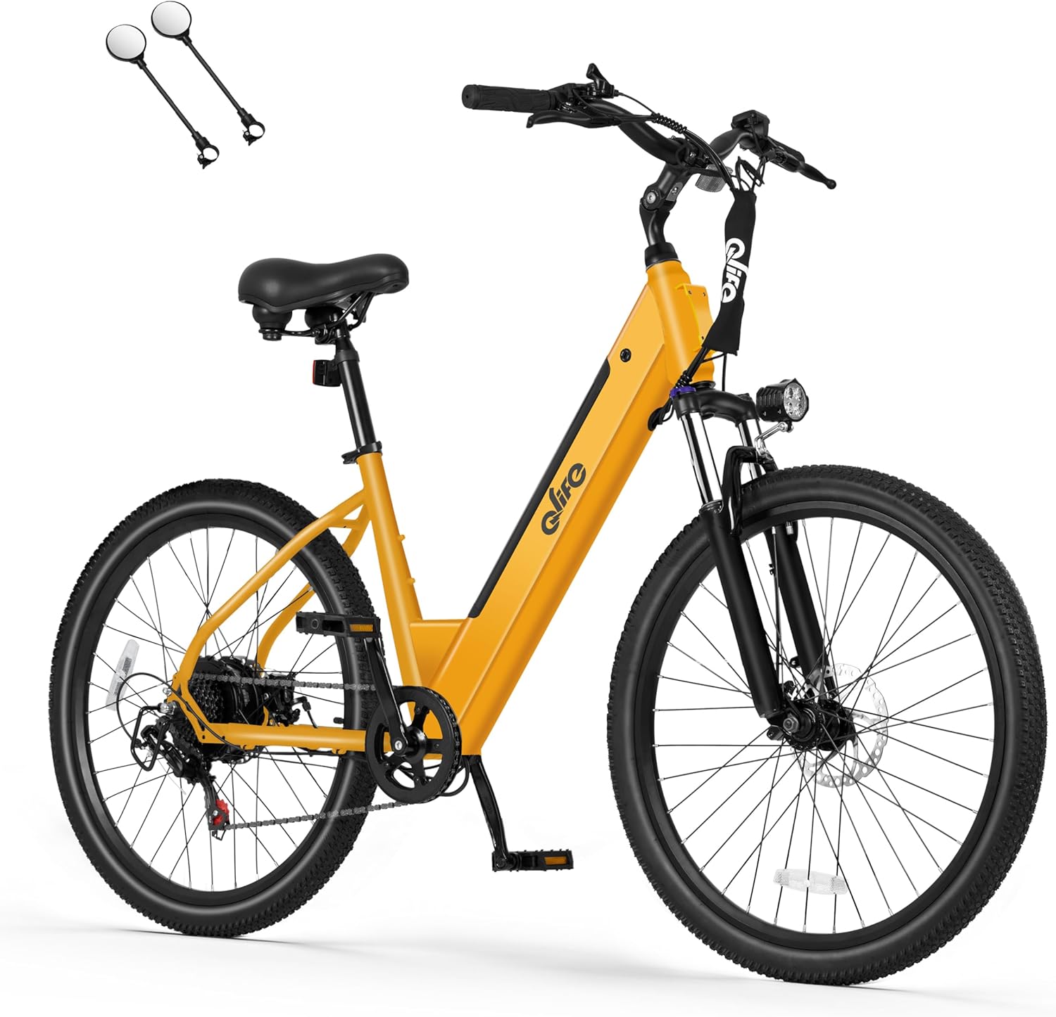 - __ow-Step design__he unique step through frame design of the electric bicycle makes it easy for riders of any height to get on and off the bike. The ergonomically designed wide and comfortable seat and upright riding posture reduce riding fatigue and are suitable for long-term use.