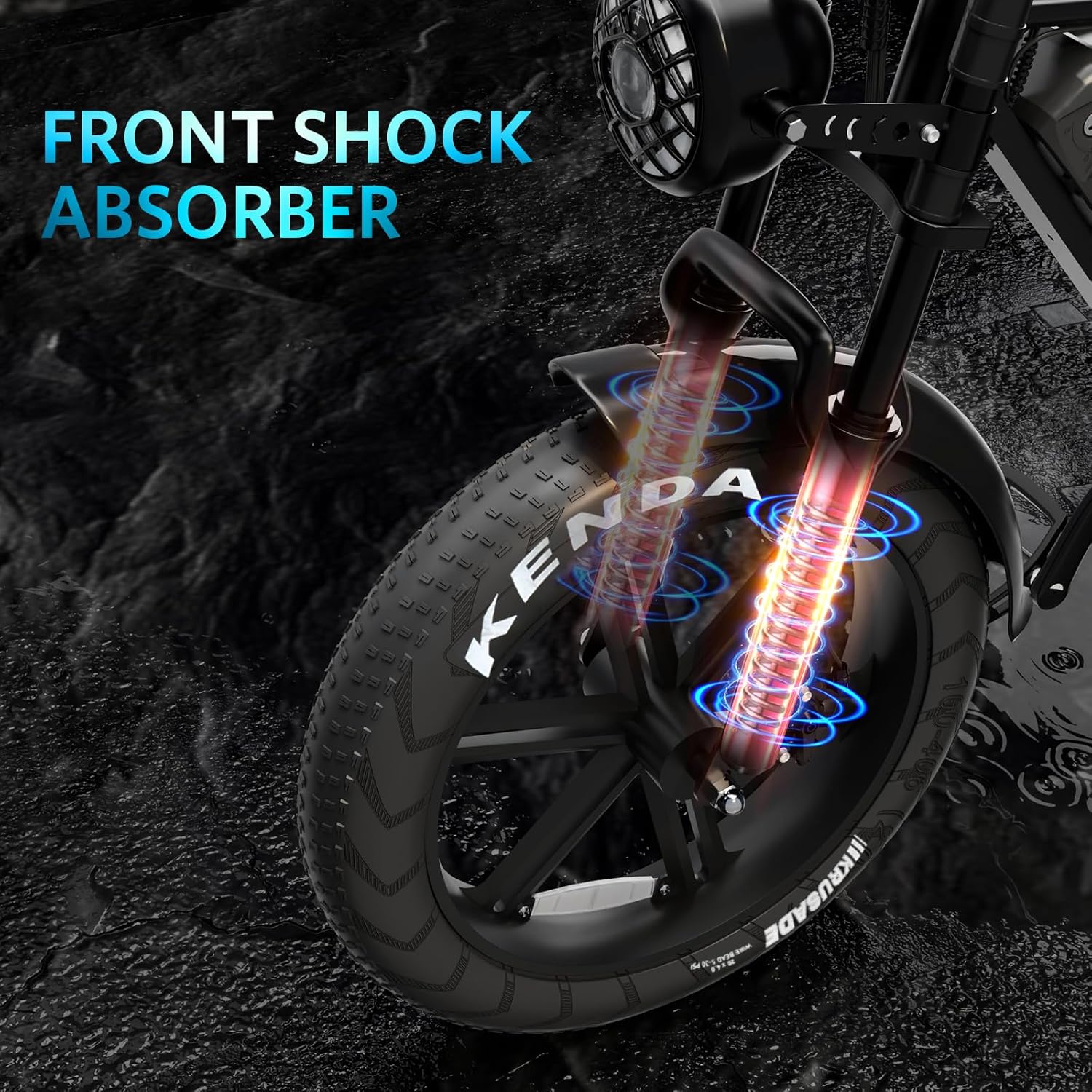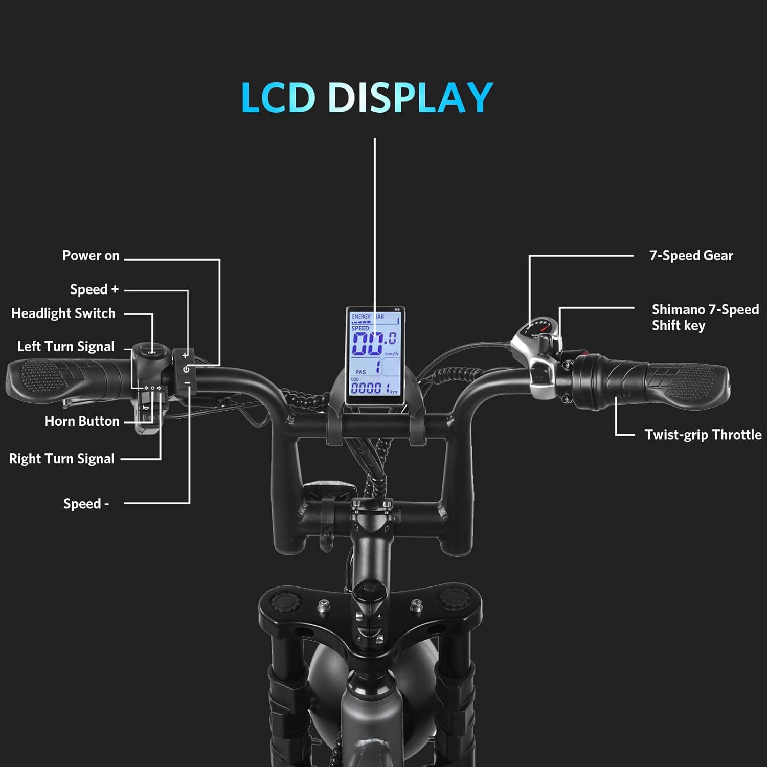 - __Premium Configuration: Electric bicycle is equipped with front shock absorber, making the ride safer. LED Headlights and Turn Signals will be more convenient and safer to drive when it is dark. What's more, 7 speed which makes the shifting smoother