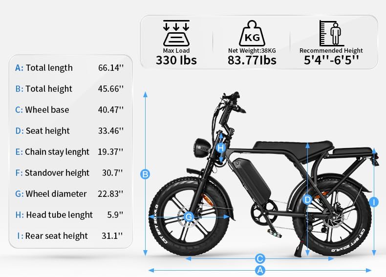 - __Good Riding Experience: The big saddle and anti-skidding fat tire can increase stability, give you a comfort and energic riding experience.20'*4.0' fat tire electric bike is suitable for you to easily ride on the beach, snow, gravel, rain, mud, sand and even ice