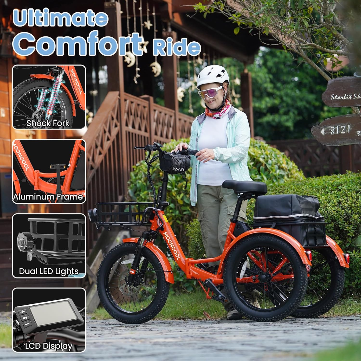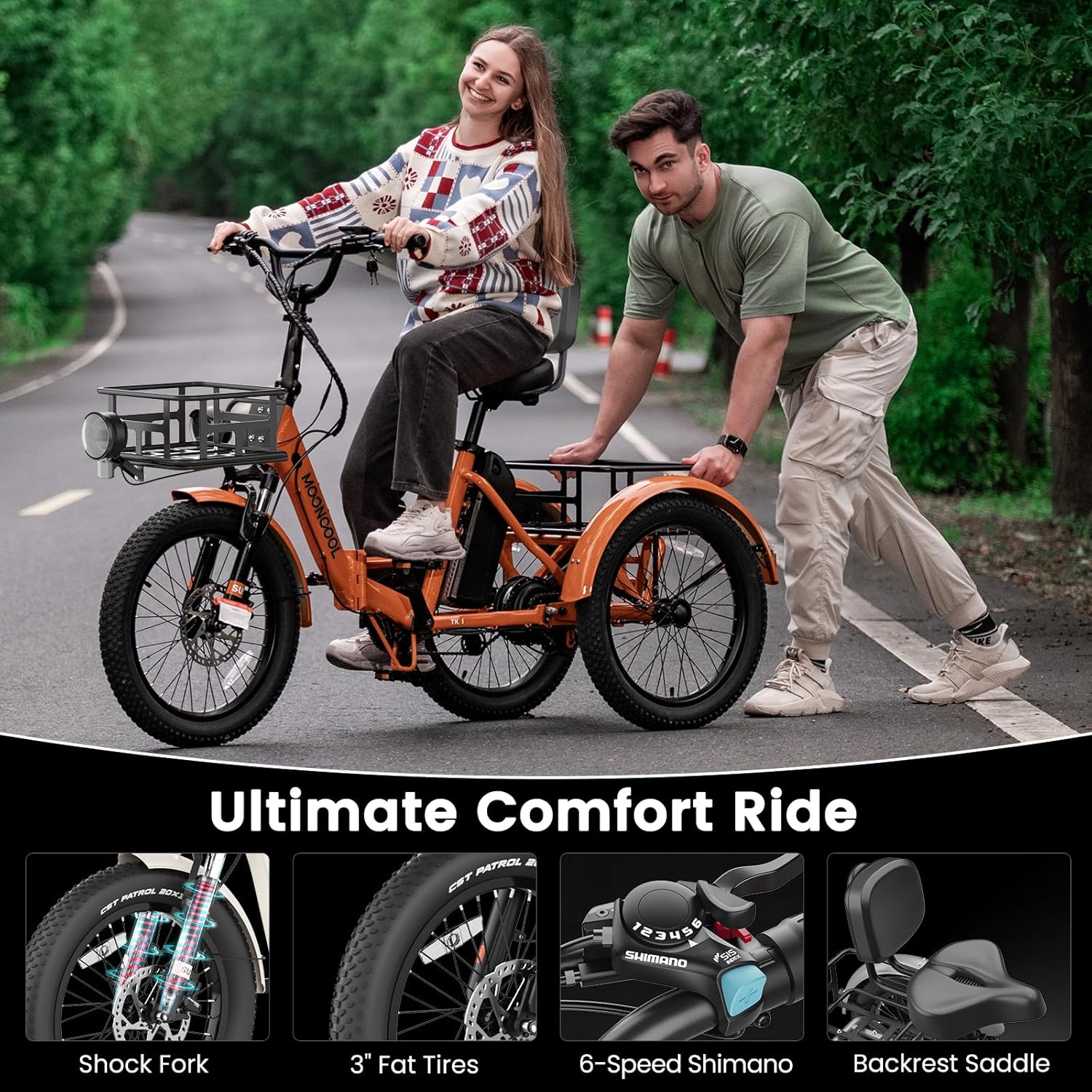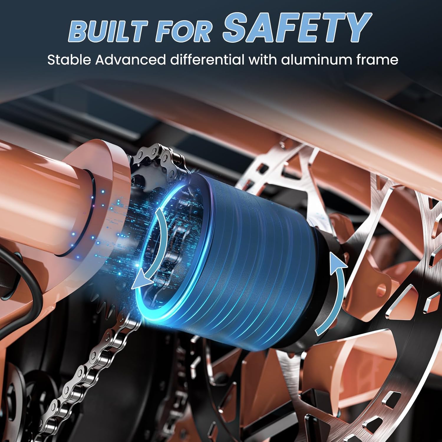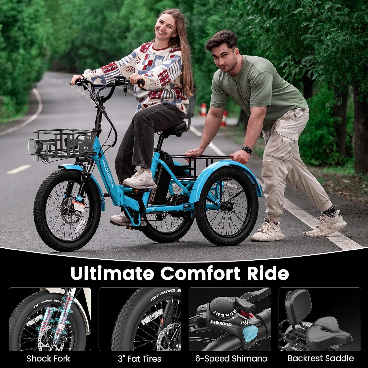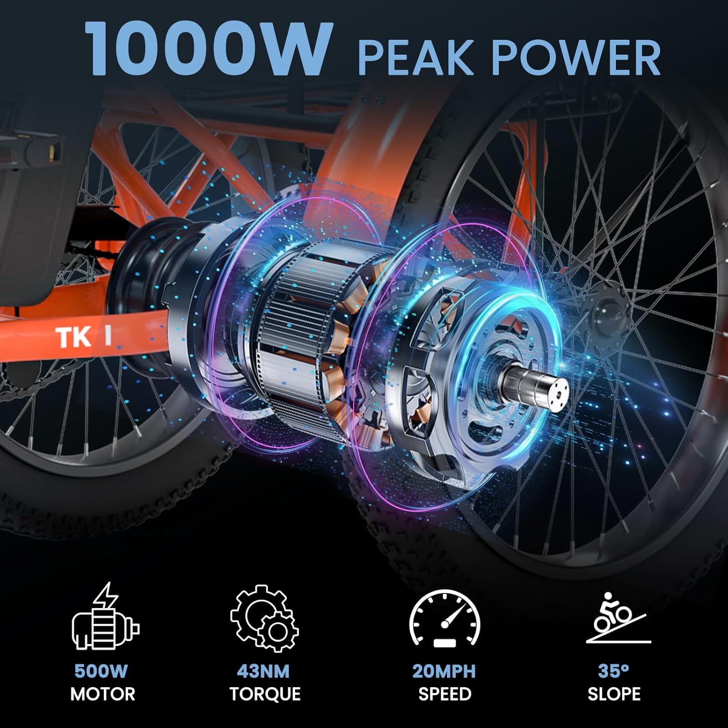 - 500W Motor and Rear Speed Differential: The electric trike comes with a 48V 500W helical motor. Not only enhances your speed and torque but also eliminates any concerns of startup slippage, guaranteeing a smooth riding experience