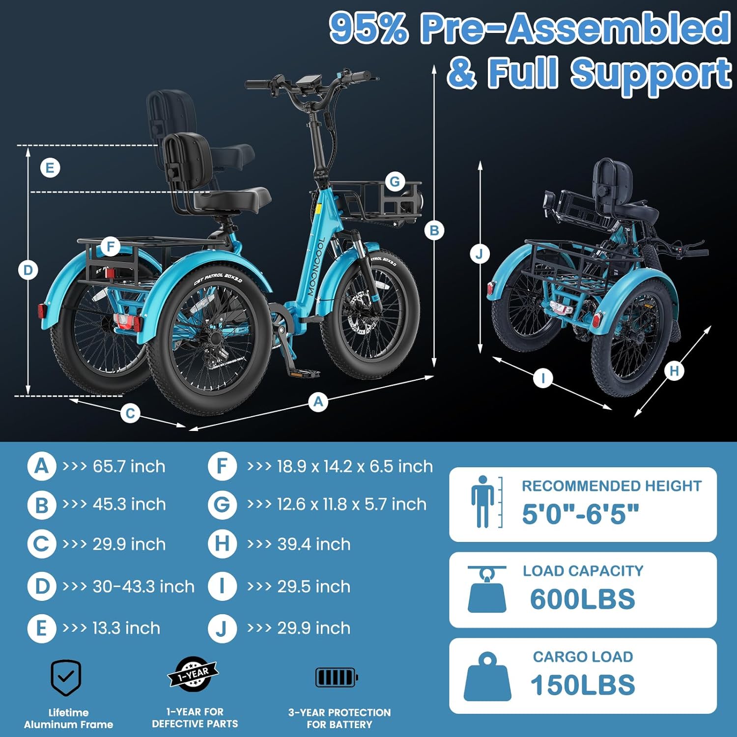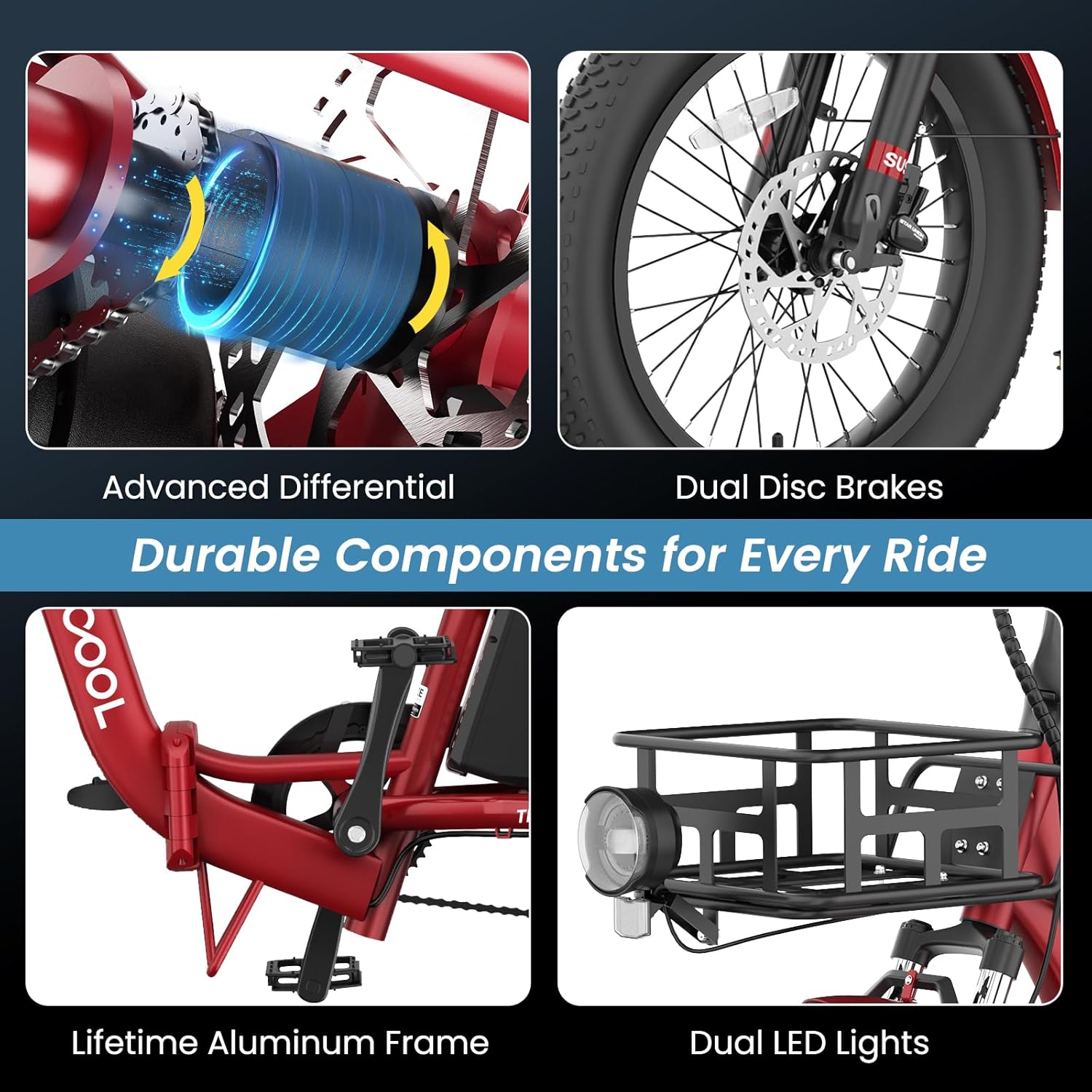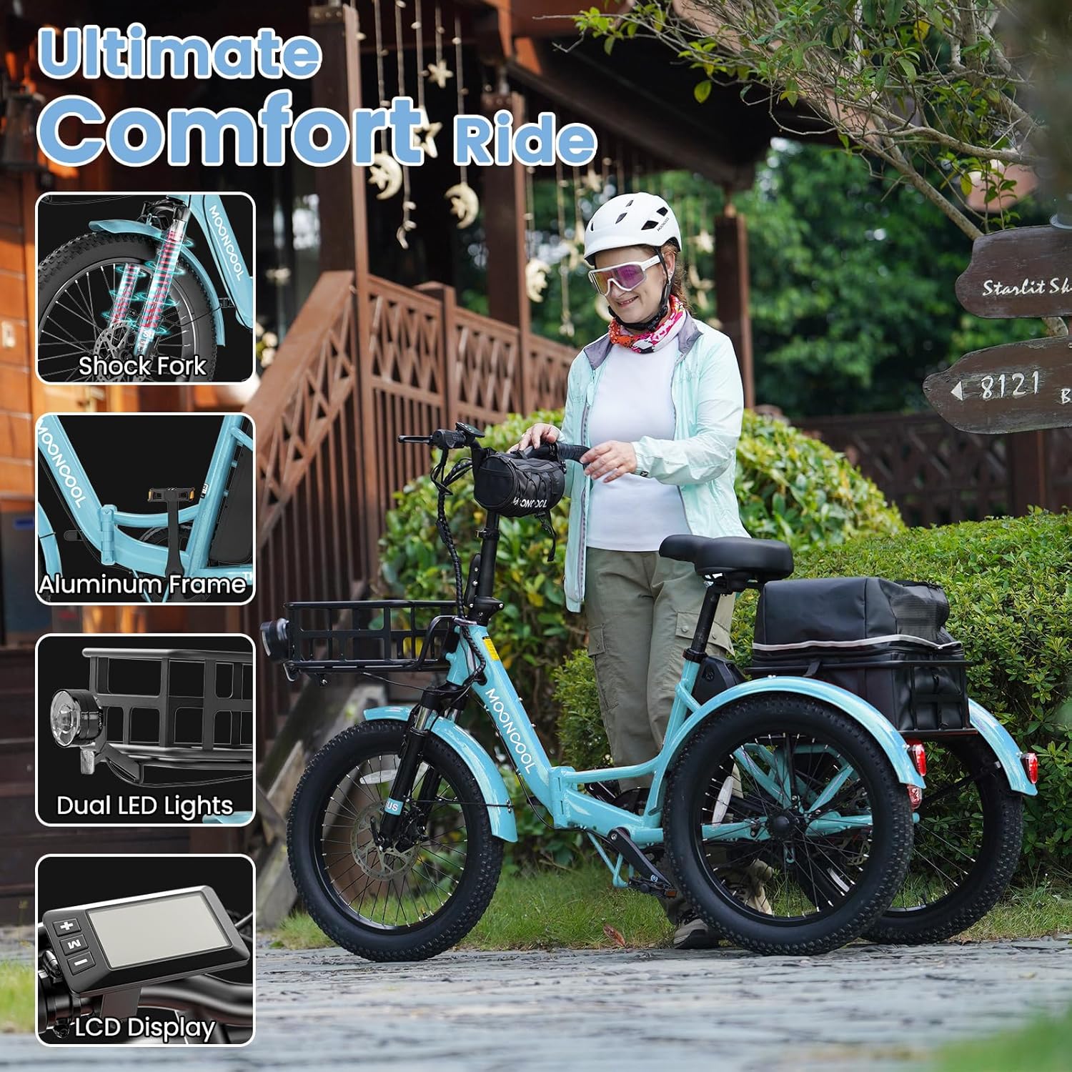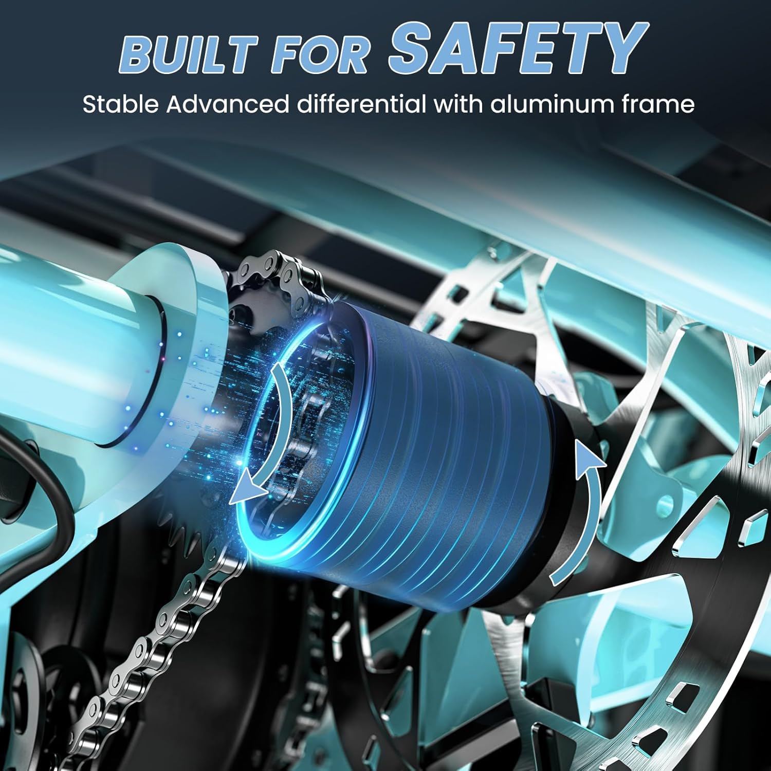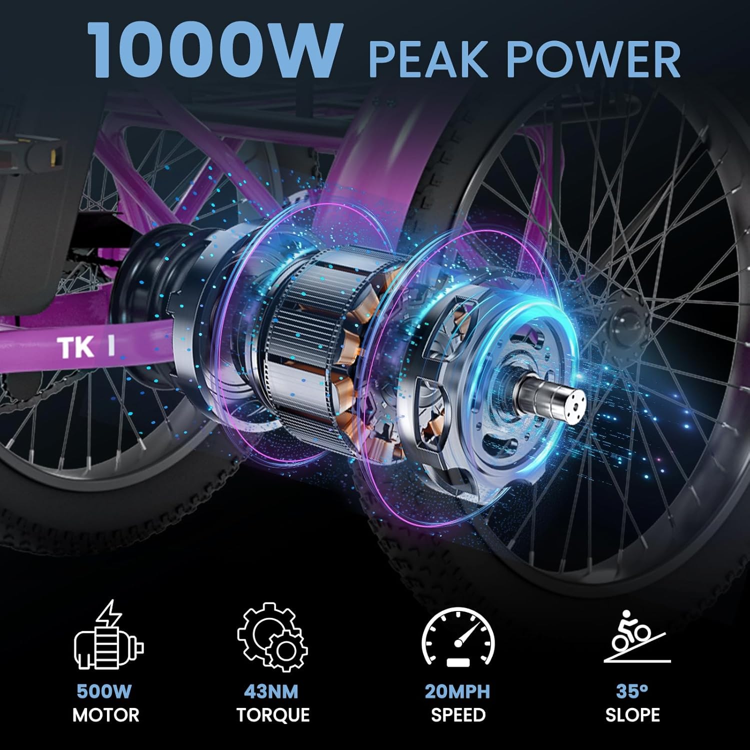 - 500W Motor and Rear Speed Differential: The electric trike comes with a 48V 500W helical motor. Not only enhances your speed and torque but also eliminates any concerns of startup slippage, guaranteeing a smooth riding experience