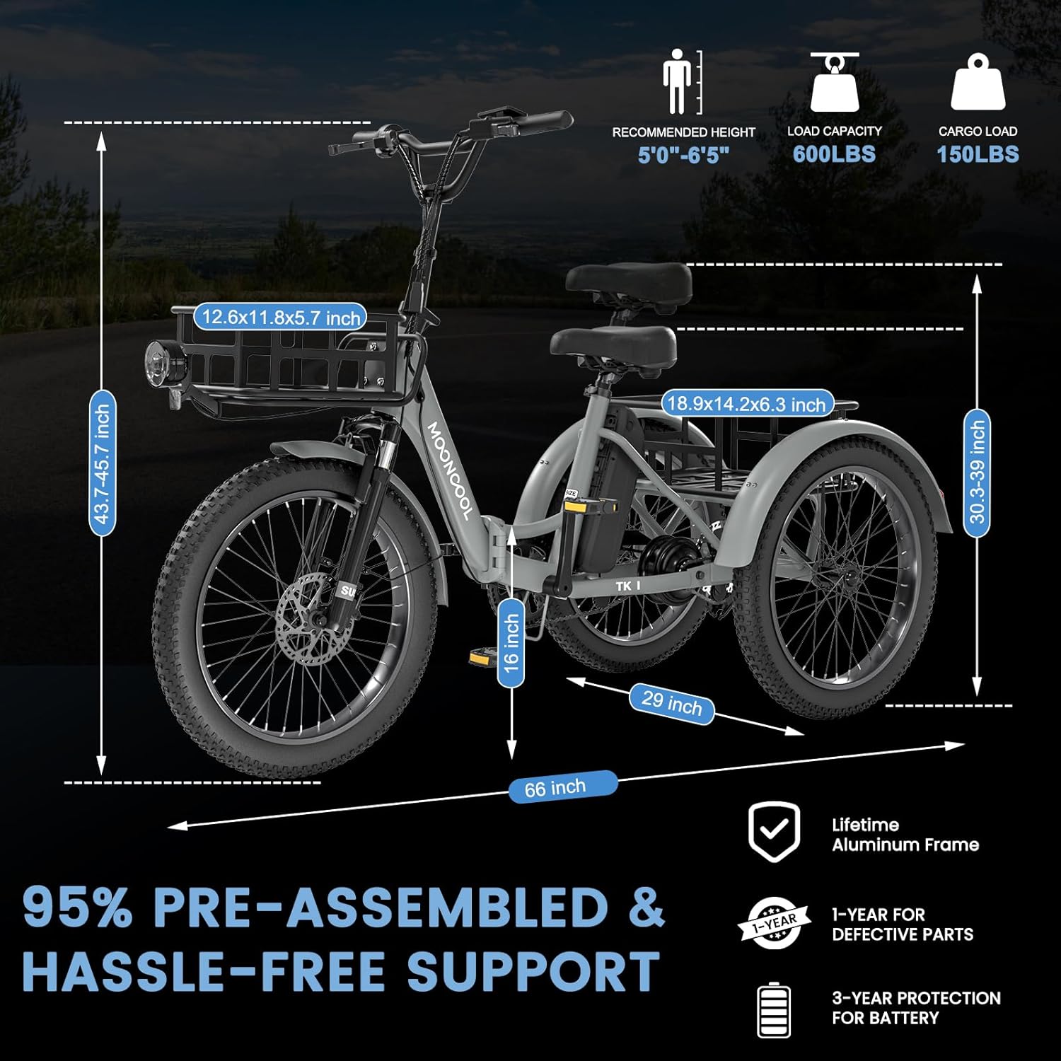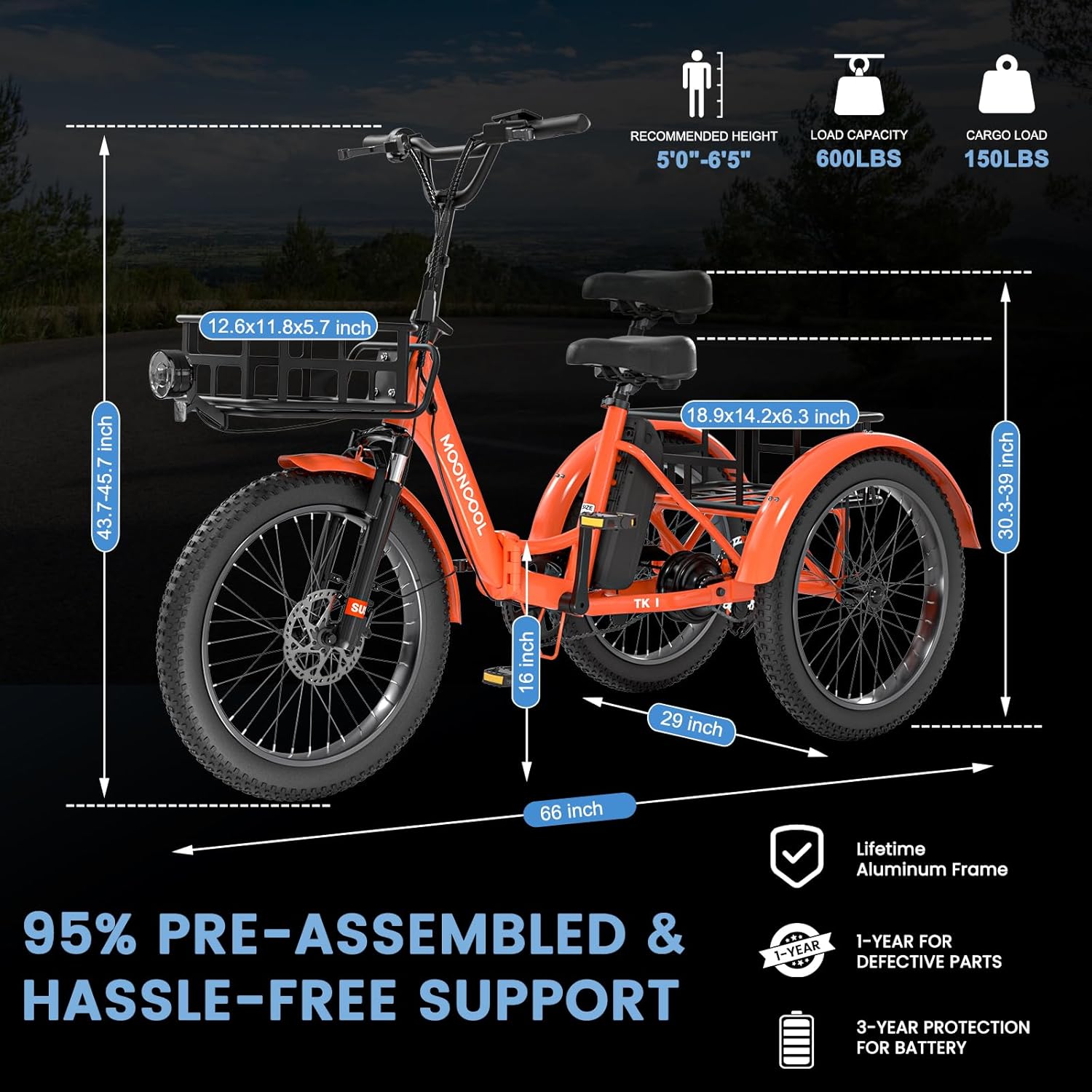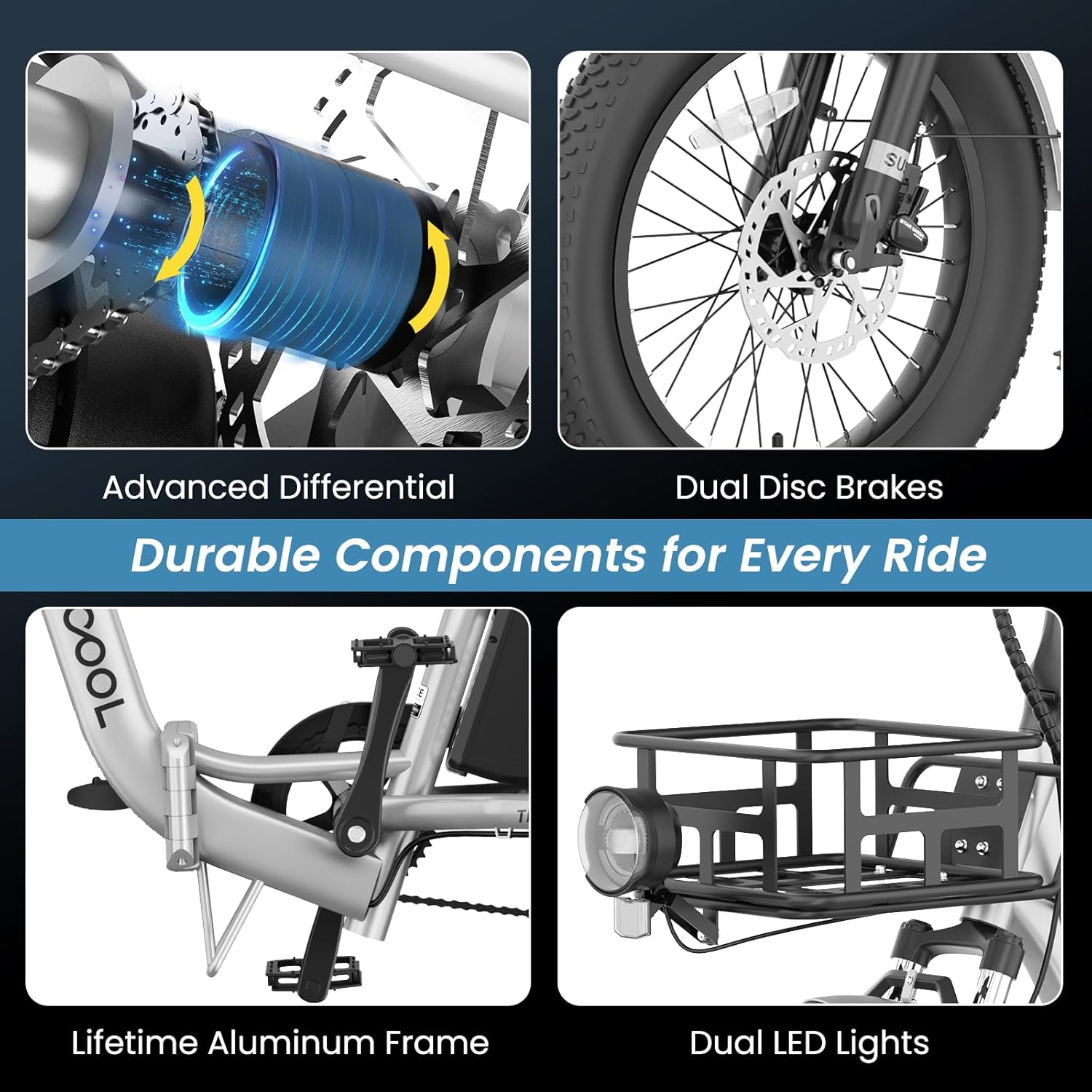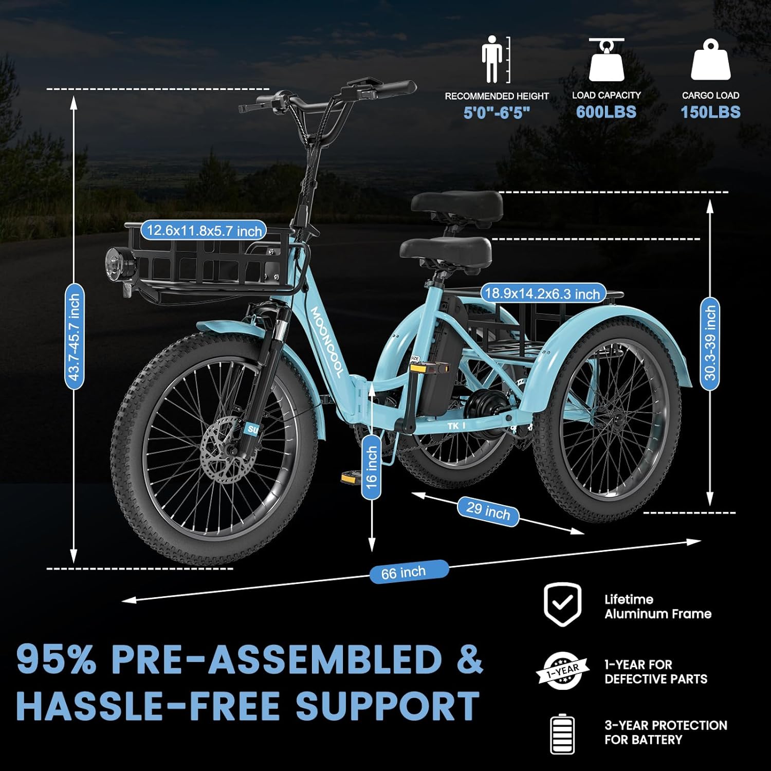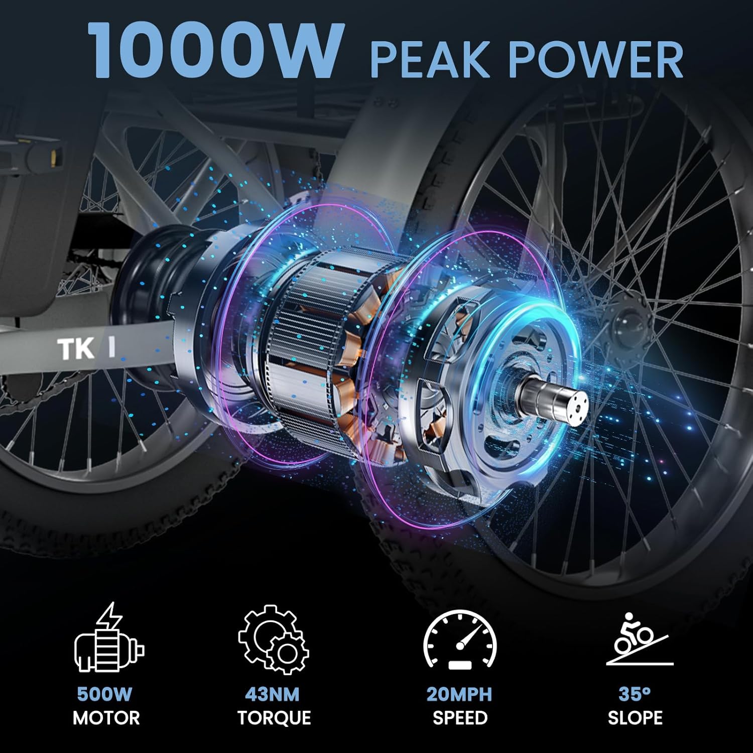 - 500W Motor and Rear Speed Differential: The electric trike comes with a 48V 500W helical motor. Not only enhances your speed and torque but also eliminates any concerns of startup slippage, guaranteeing a smooth riding experience