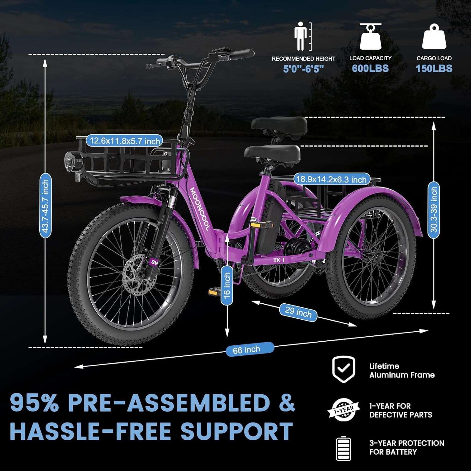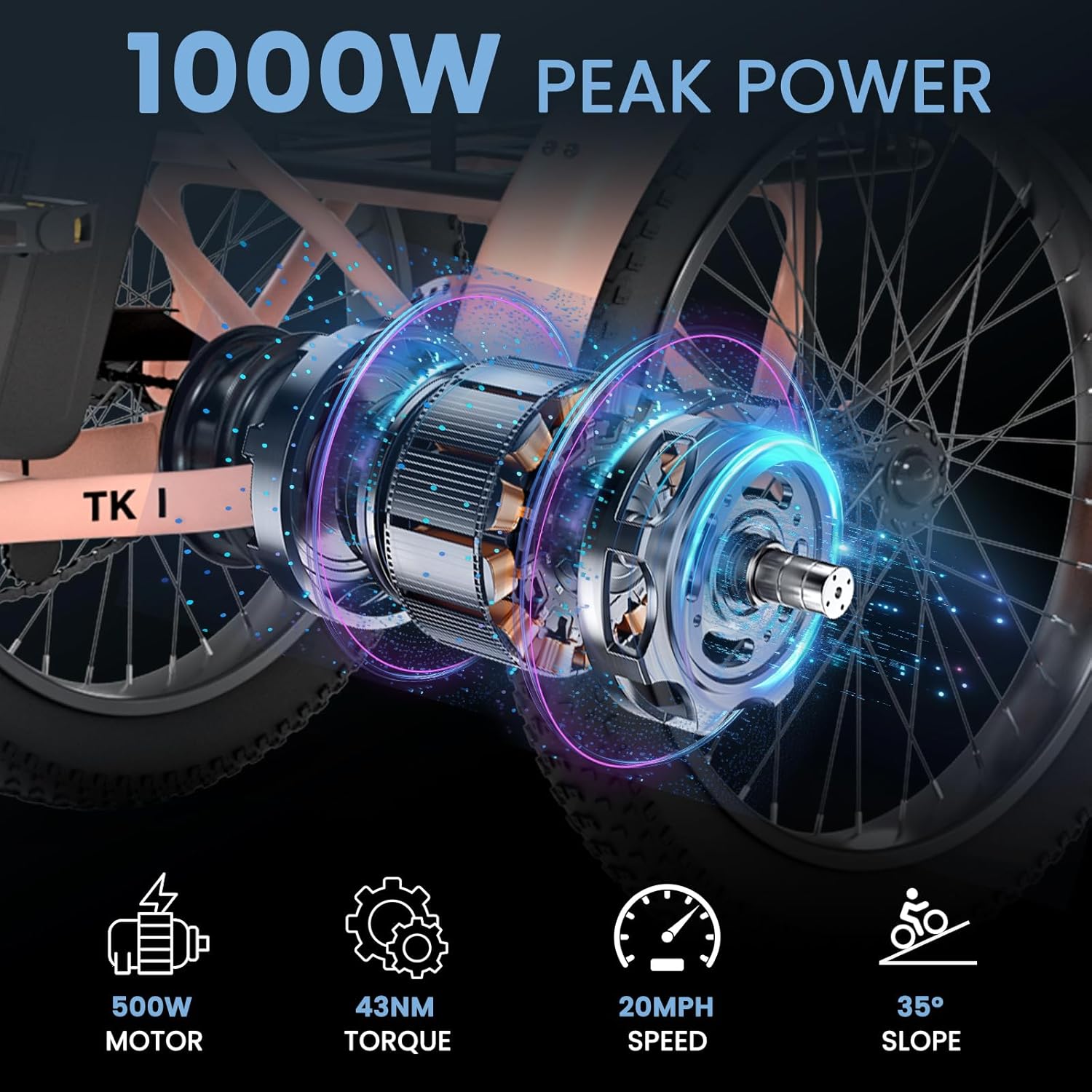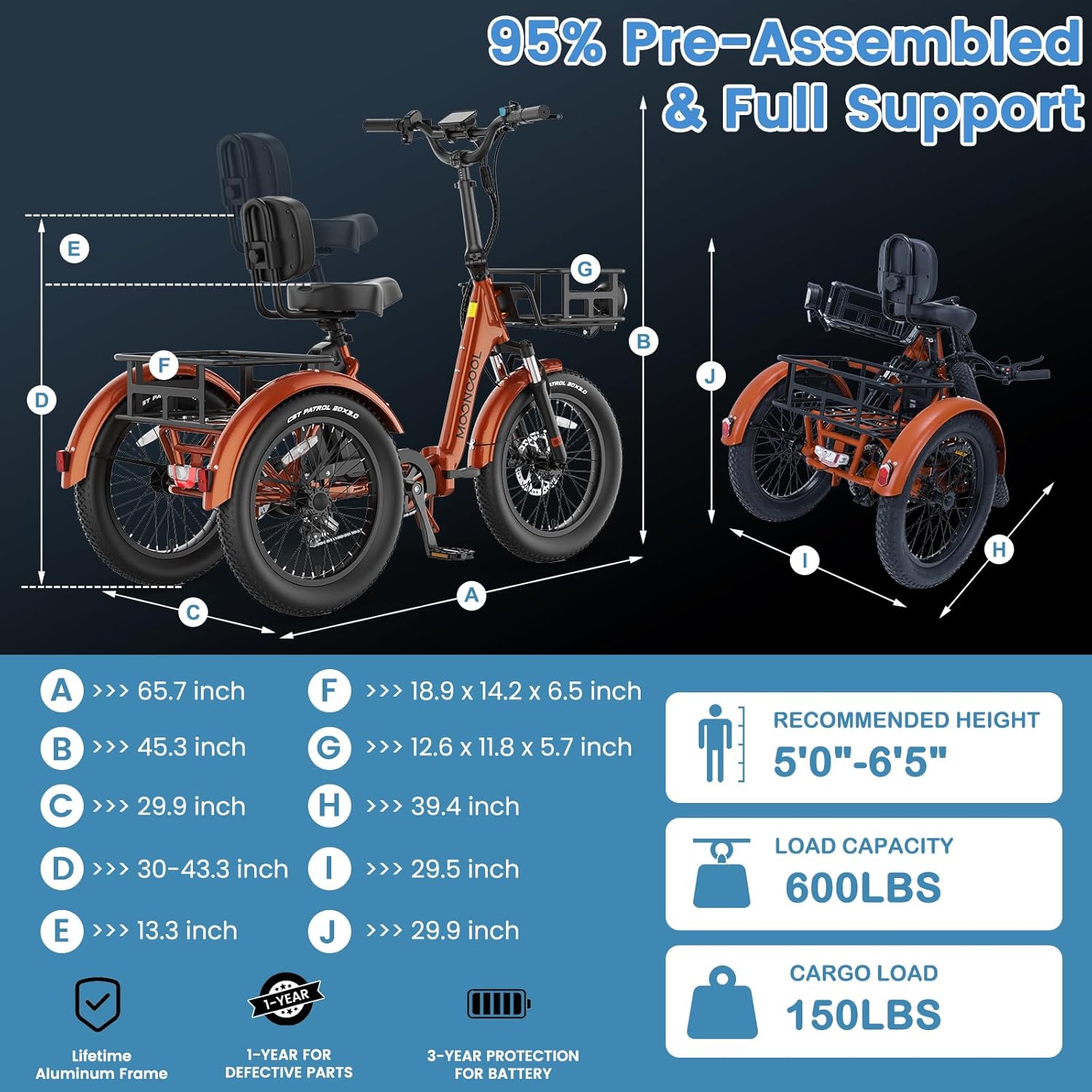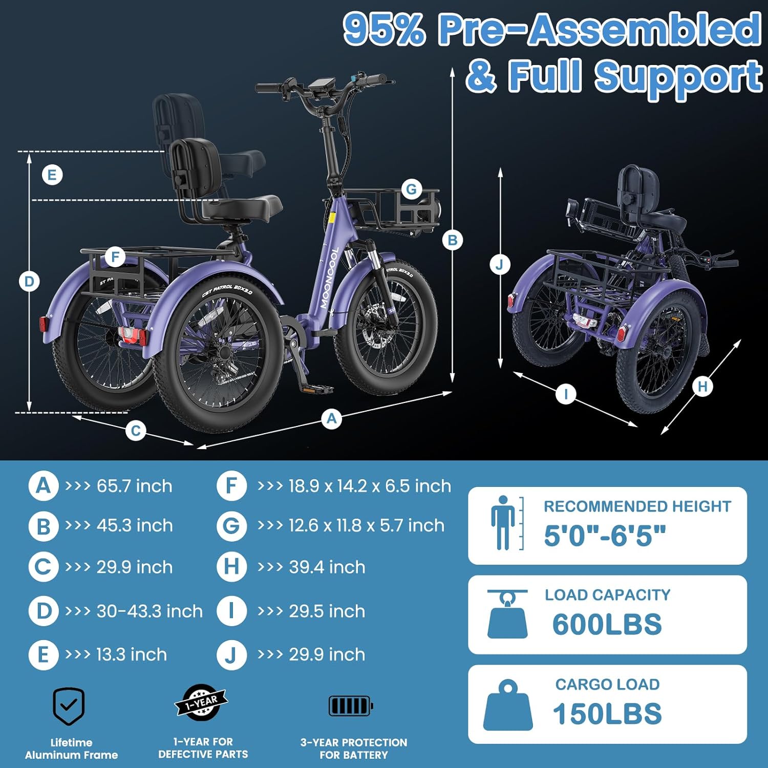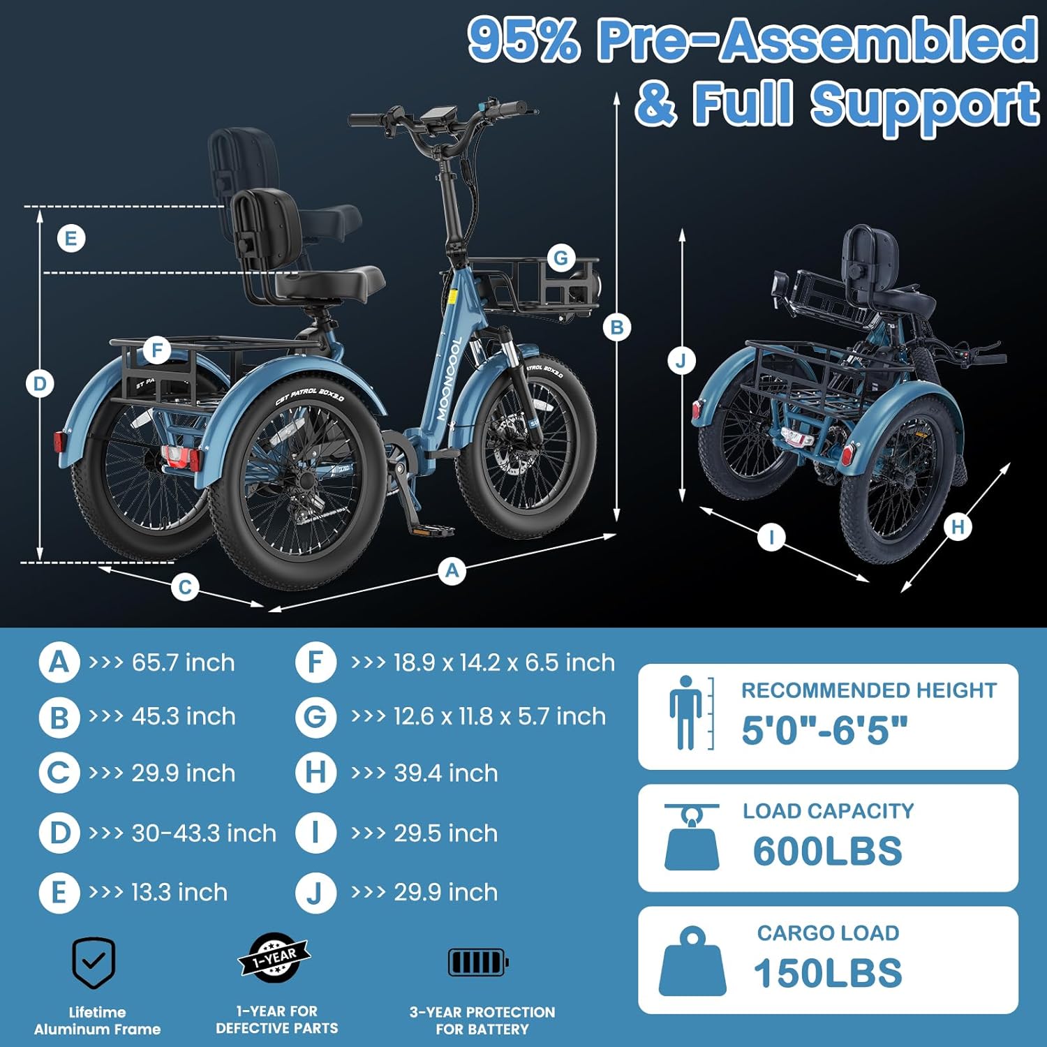 - 500W Motor and Rear Speed Differential: The electric trike comes with a 48V 500W helical motor. Not only enhances your speed and torque but also eliminates any concerns of startup slippage, guaranteeing a smooth riding experience