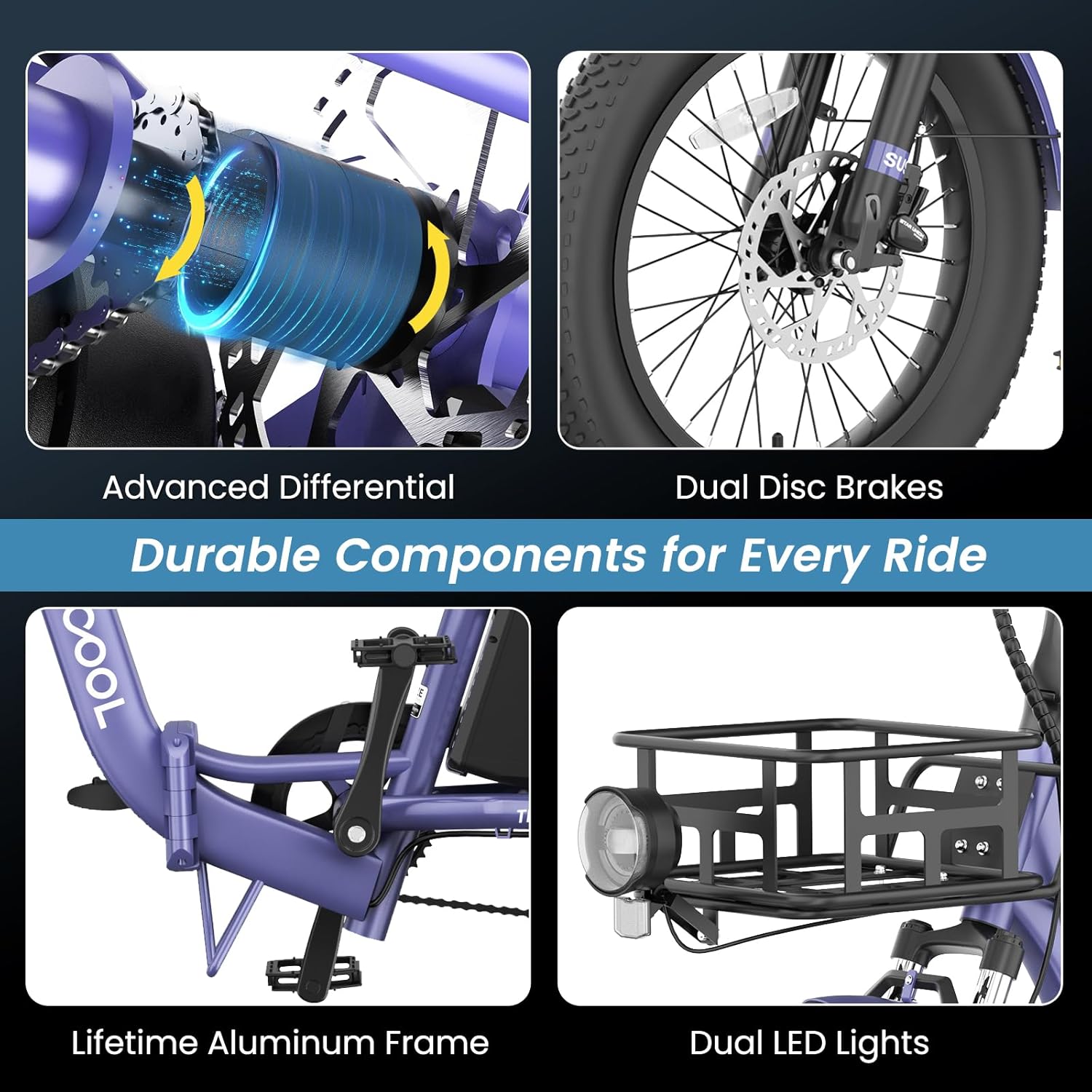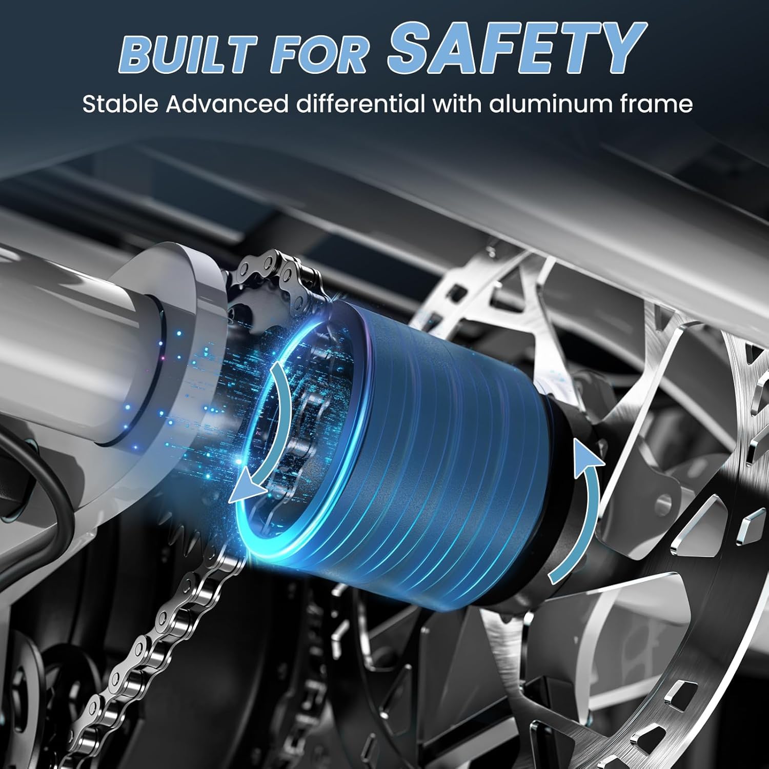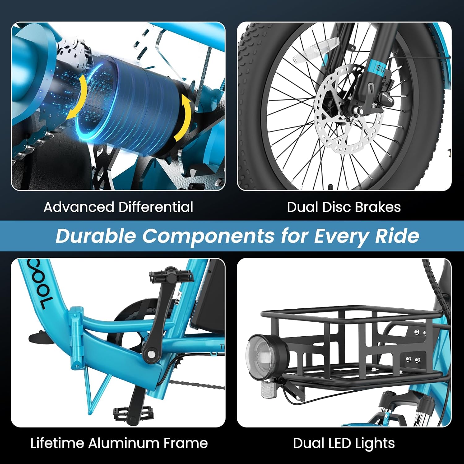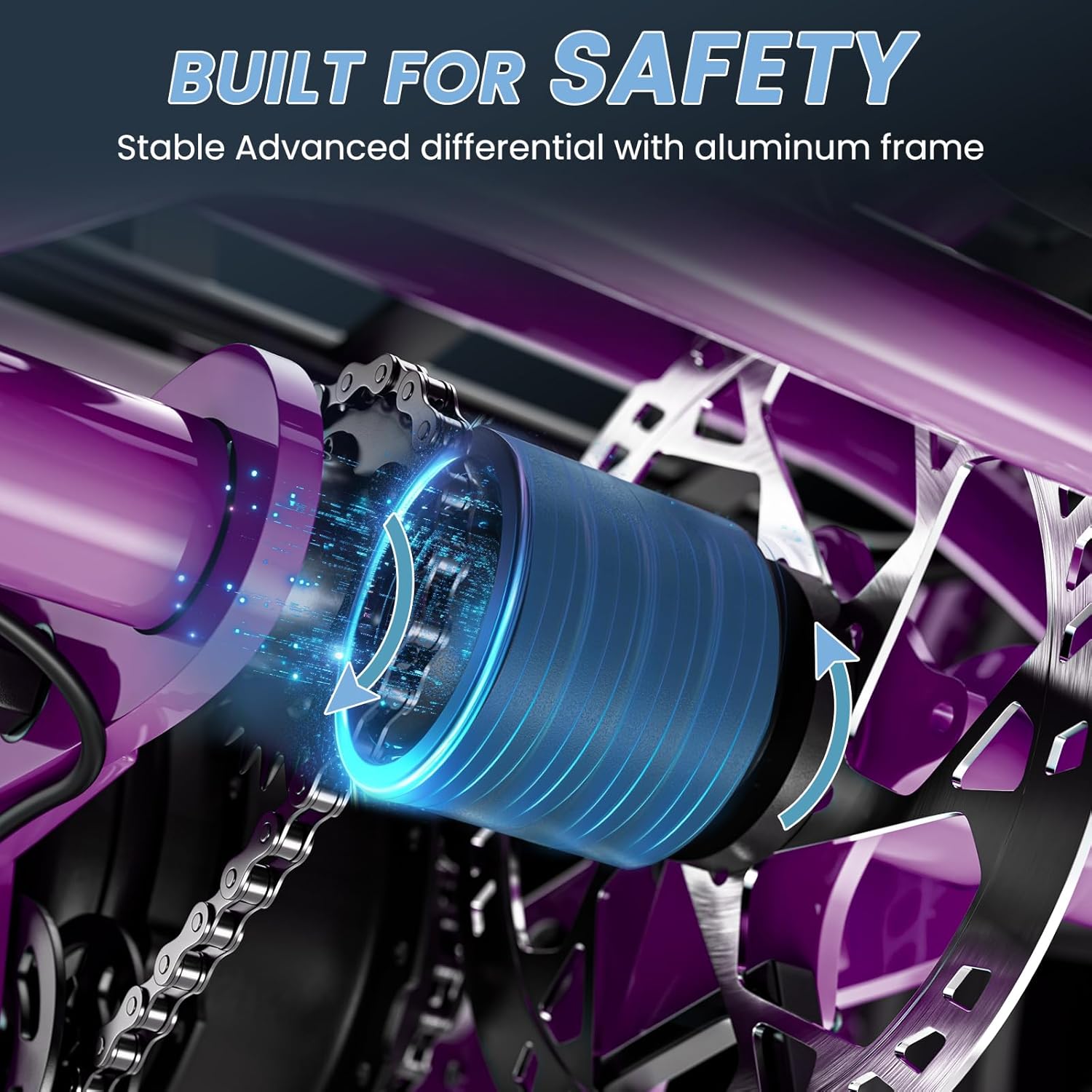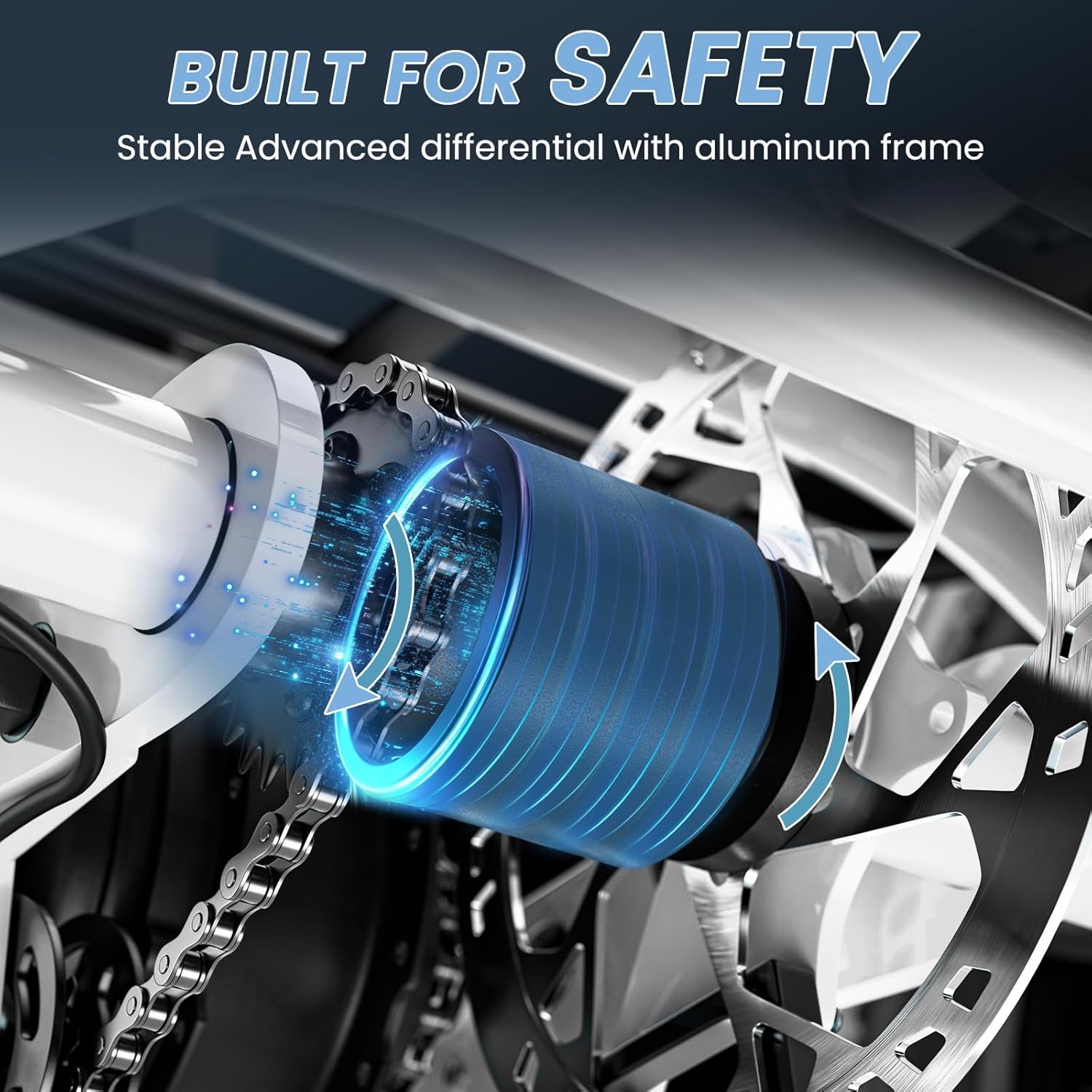 - 500W Motor and Rear Speed Differential: The electric trike comes with a 48V 500W helical motor. Not only enhances your speed and torque but also eliminates any concerns of startup slippage, guaranteeing a smooth riding experience