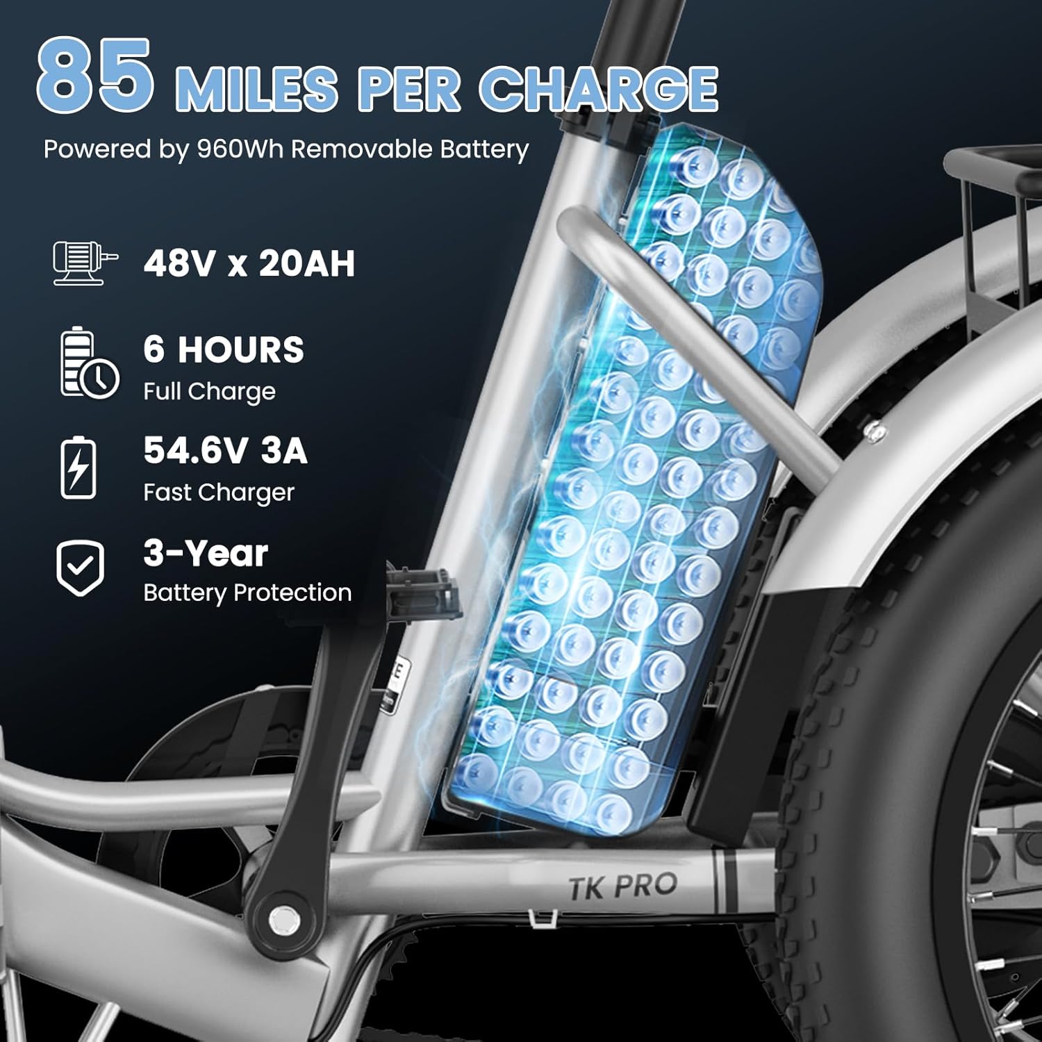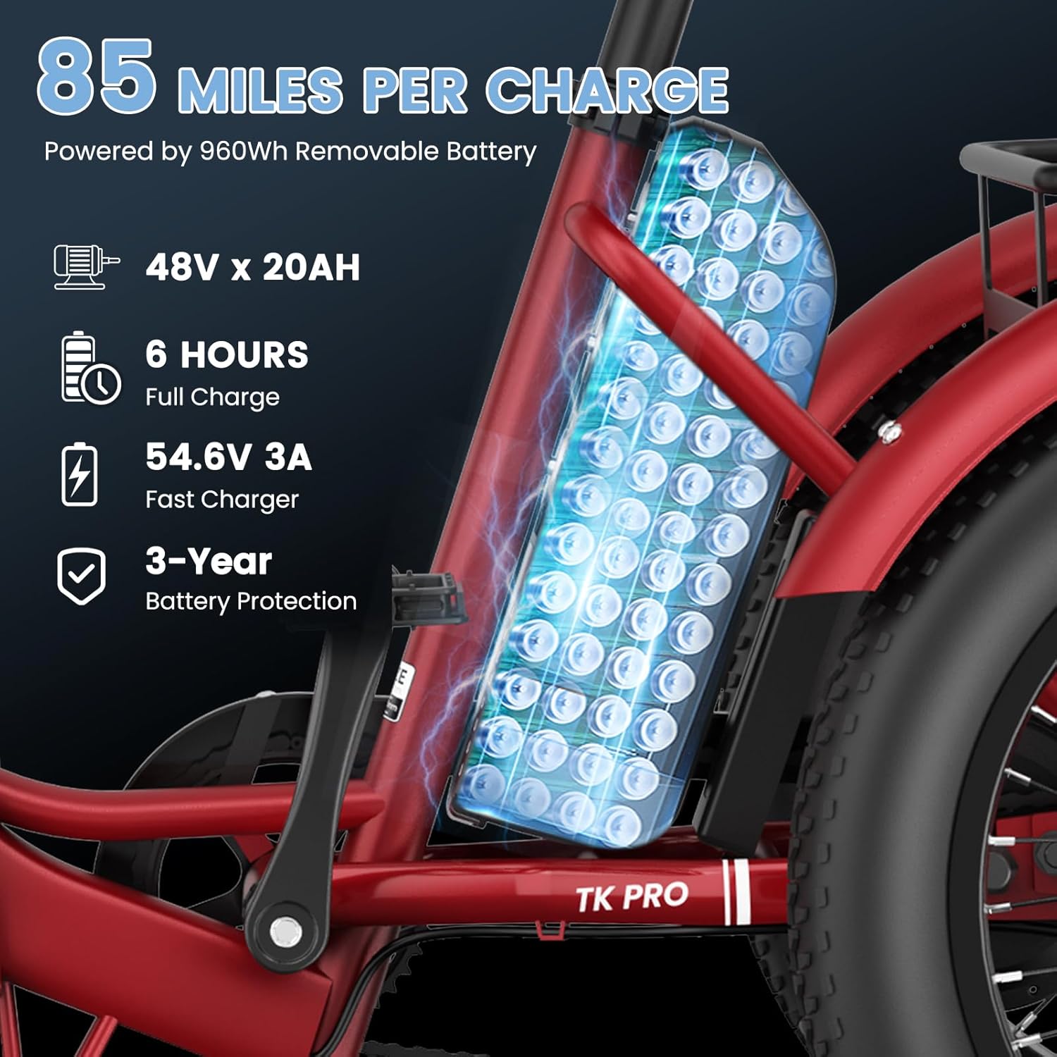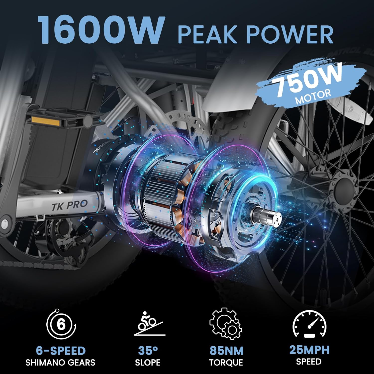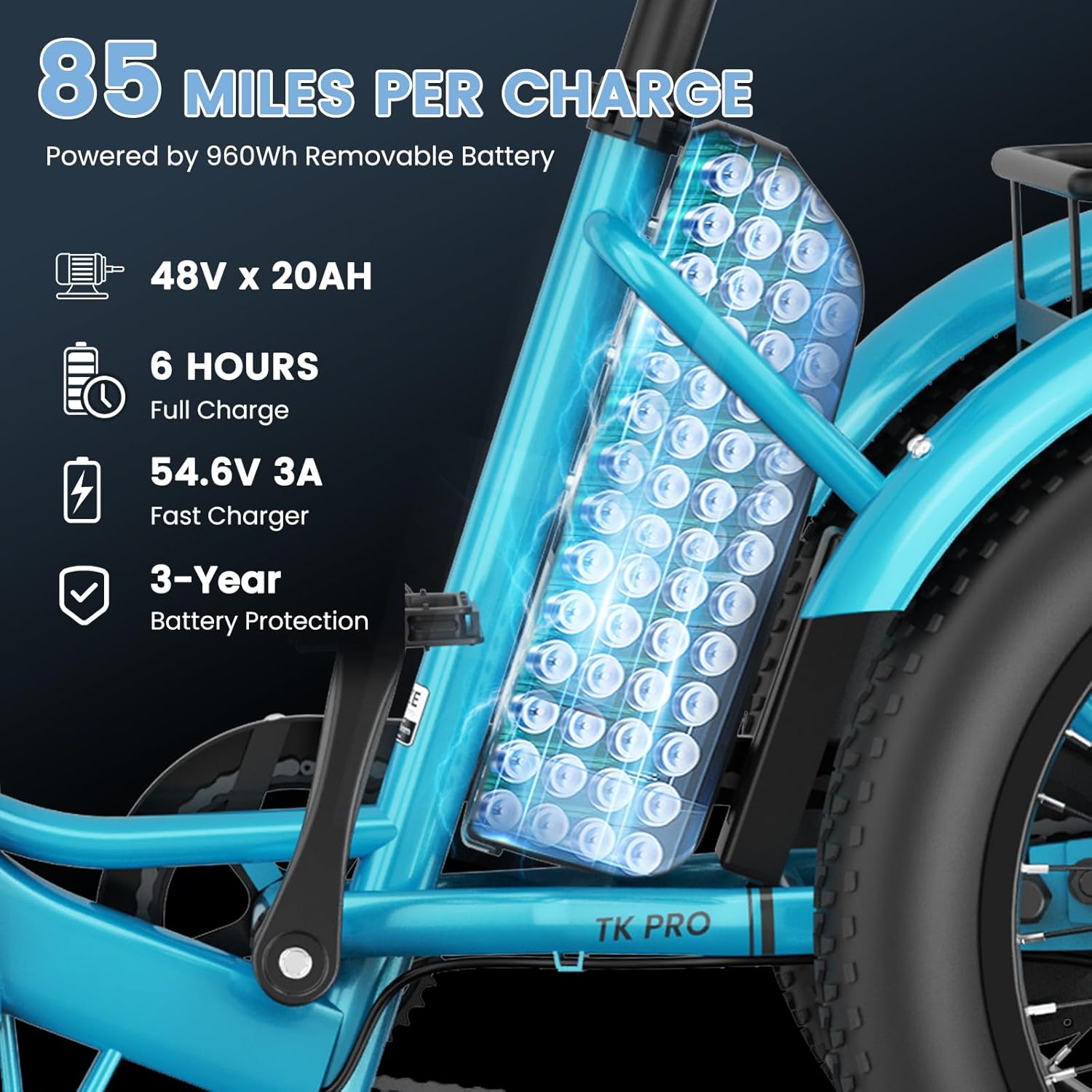 - Removable Battery Pack: Comes with a 48V 14.5Ah removable battery, covering a range of 35-45 miles per full charge., you'll experience extended riding time and the flexibility to charge on the go