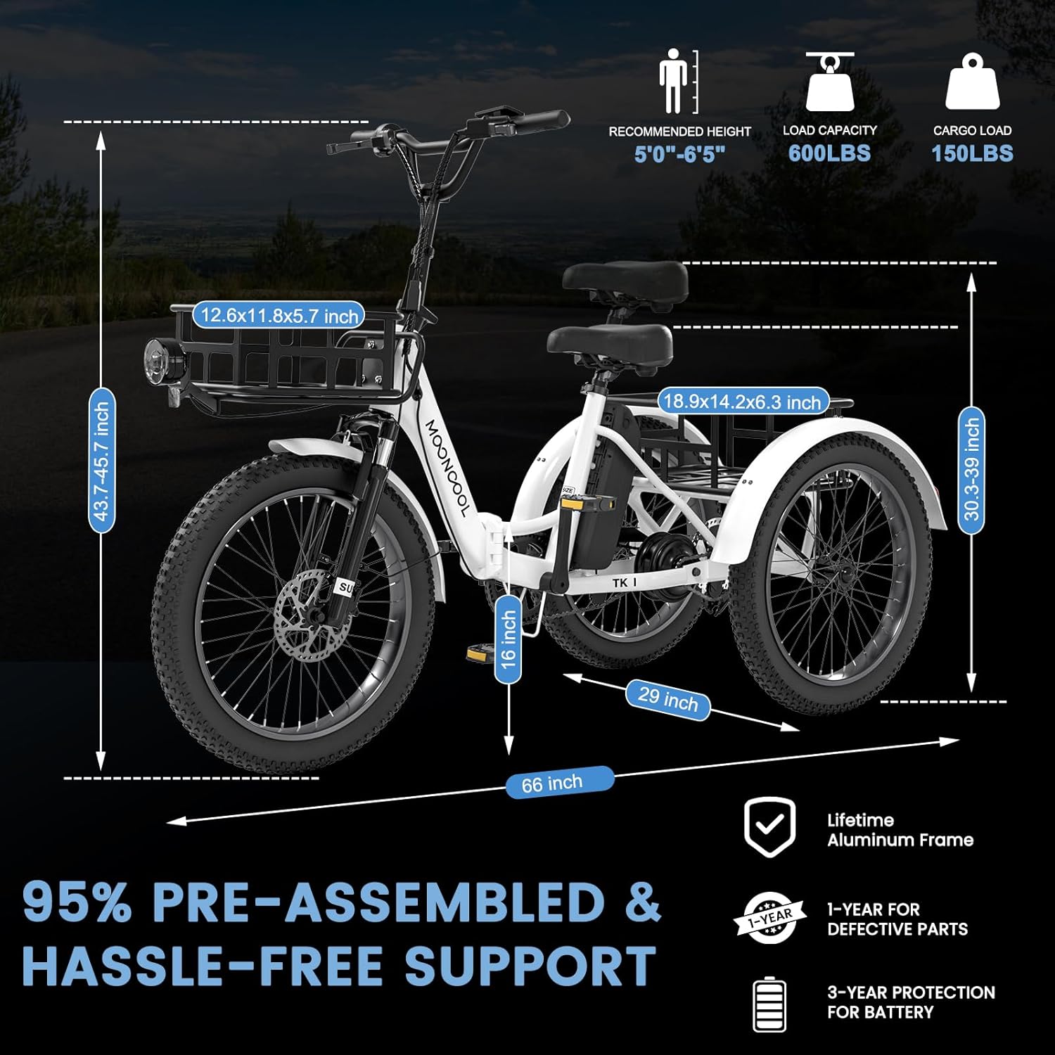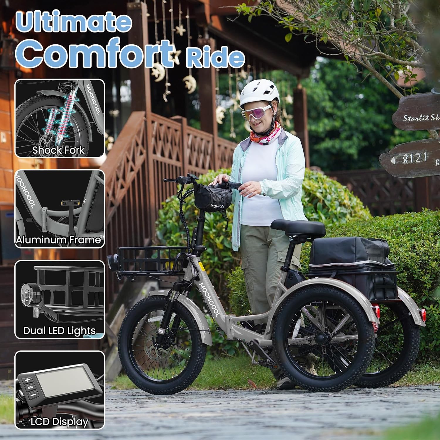 - Durable Aluminum Frame: Built to last, the folding electric tricycle is featured with the 6061 aluminum bike frame, ensures strength and longevity, providing a sturdy foundation for your rides