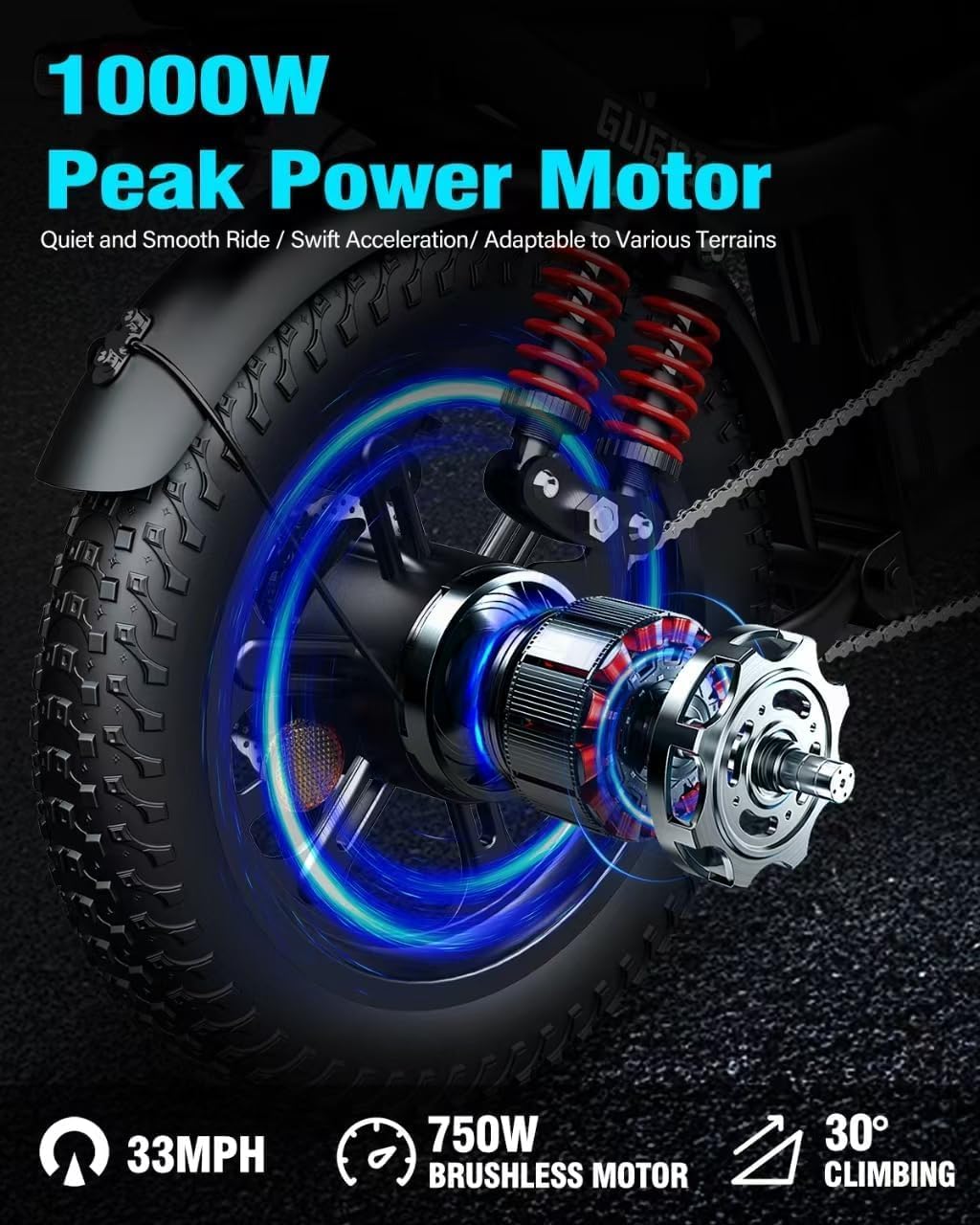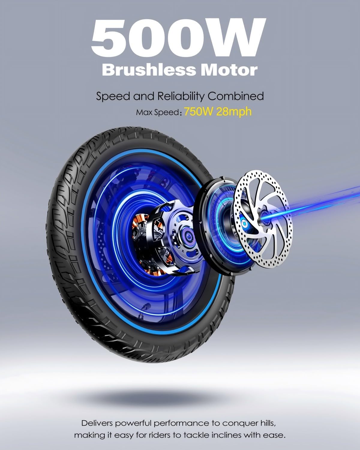 - Powerful Peak 750W Motor & Impressive Performance: Our adult folding electric bike is powered by a high-speed 750W brushless motor, delivering a top speed of 28 mph. Easily conquer 25- degree inclines and enjoy smooth, powerful rides, whether commuting or exploring.