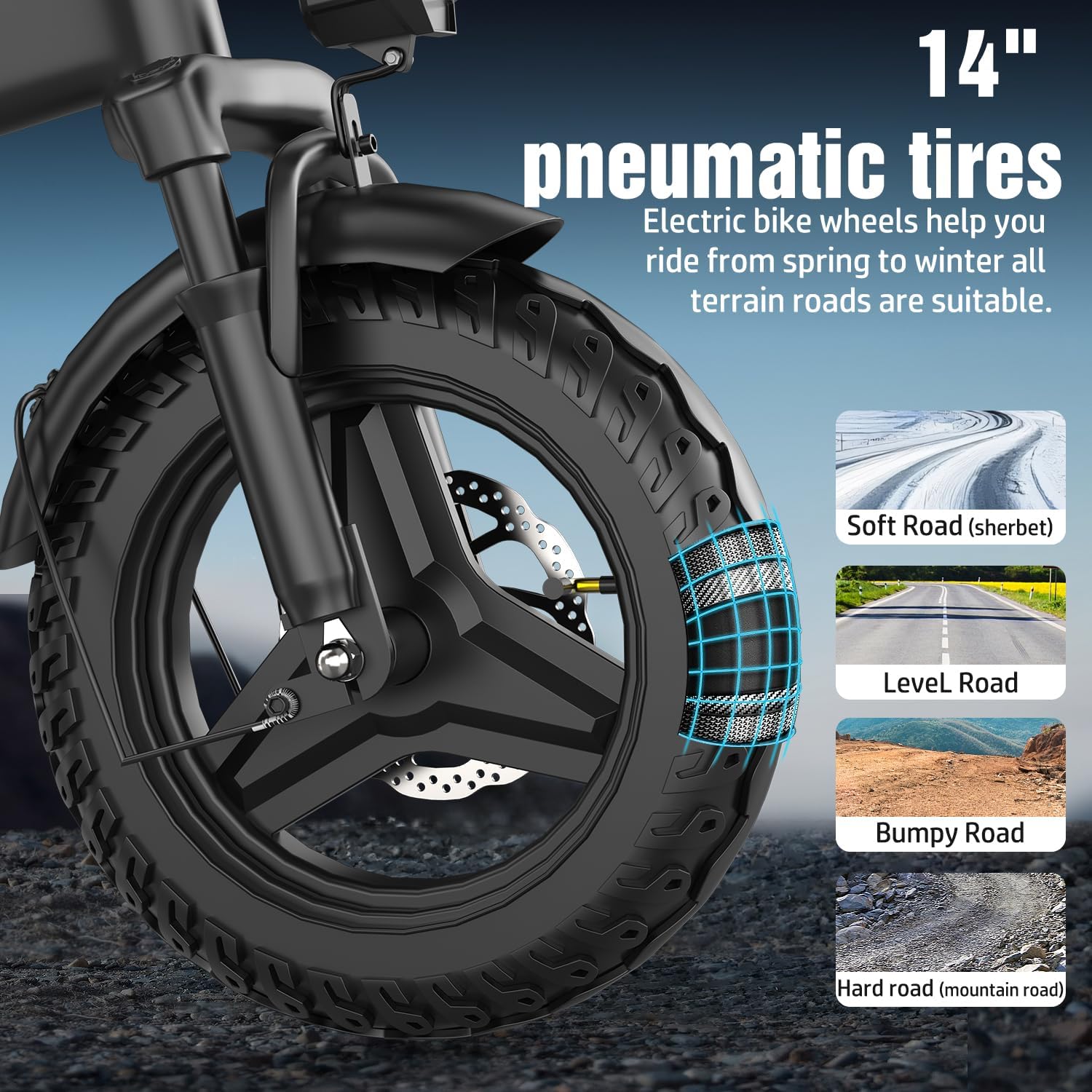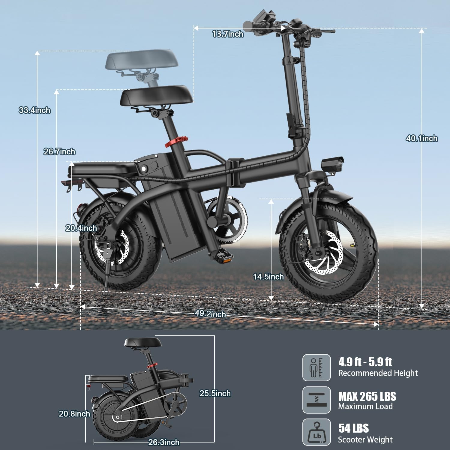 - __oldable and Portable_- The e bikes for adults electric is designed as a foldable design, simple three-step folding system, the size after folding is 27x17x26', and the seat and handlebars can also be adjusted to the height of everyone's preferences. It can easily fit in your trunk or take it into public transport, such as subways and buses. We have designed 3 gearshifts to easily set and select your preferred speed.