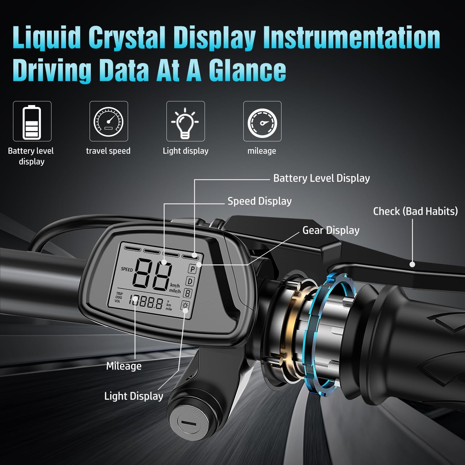 - __ightweight Design_- Use high-cost aluminum alloy material to make the fuselage, weighing only 46 lbs, lightweight, high hardness, high durability, strong shock absorption characteristics, to ensure the safety of the fuselage. The full shock absorption system can effectively absorb the bumpy feeling from the ground, and the soft and elastic high-density sponge seat can alleviate the hip fatigue after long-term driving, giving you the ultimate riding experience.