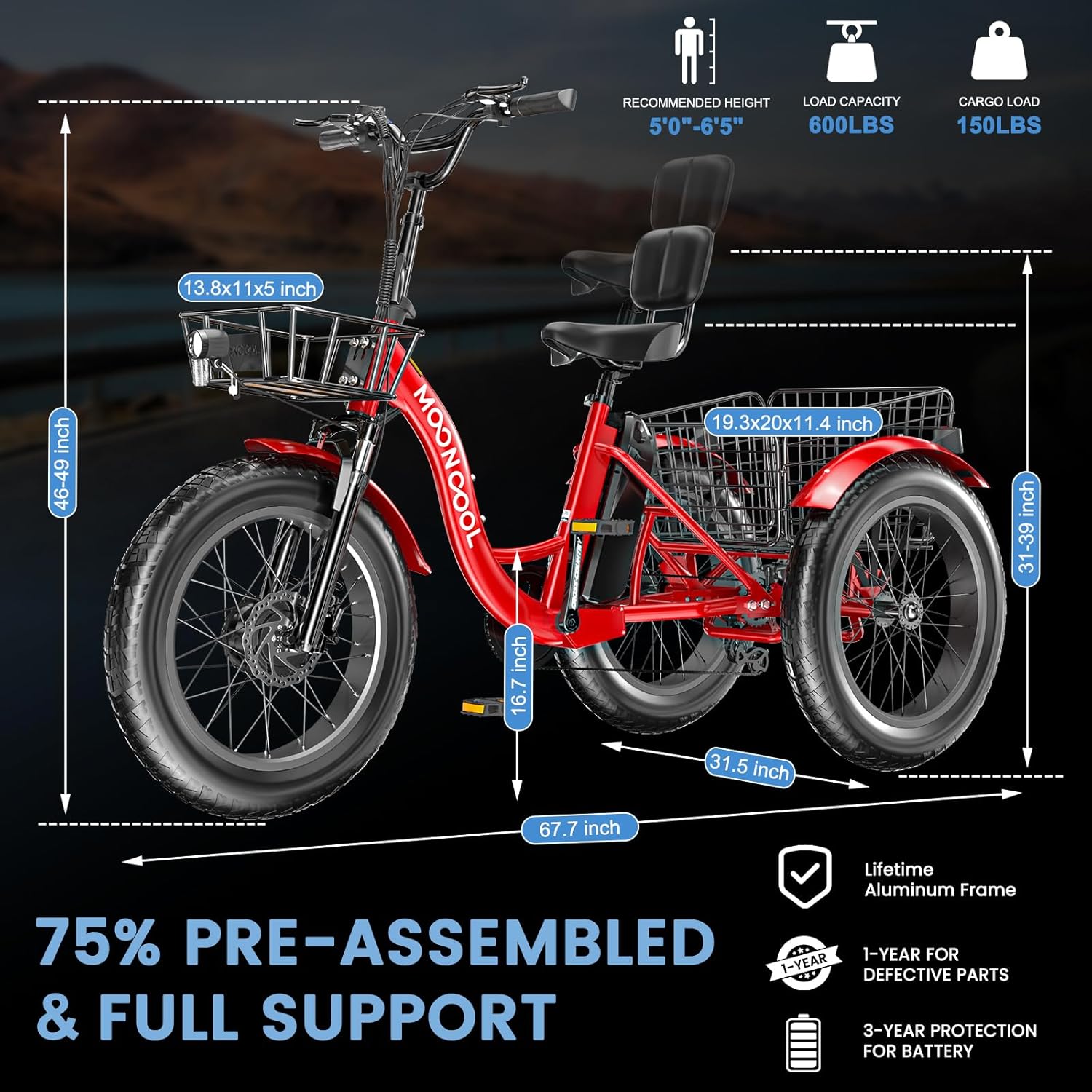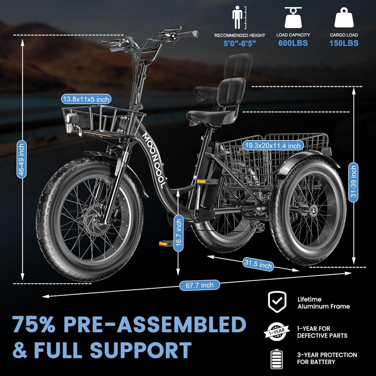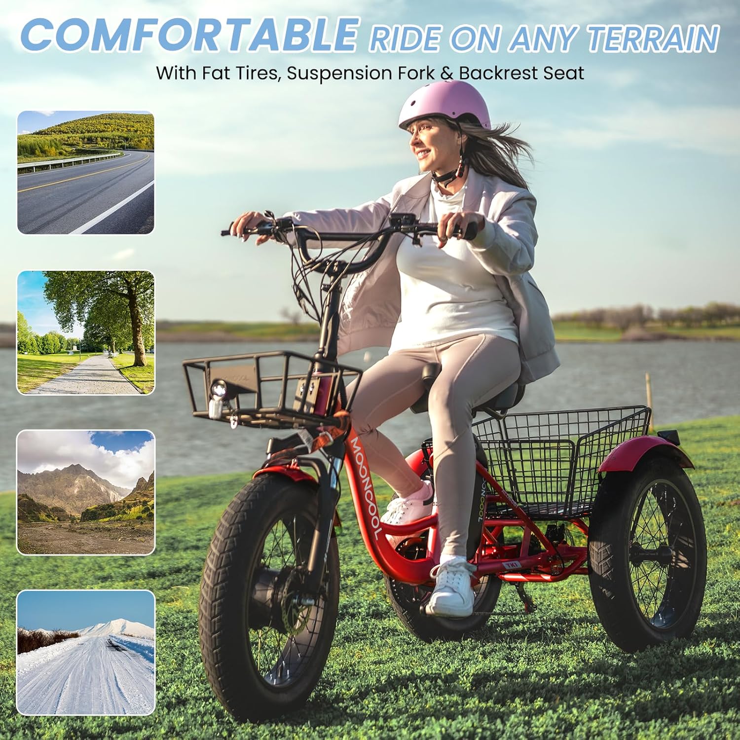 - Ride with Confidence: Our electric trikes come with sturdy 20'x 4' puncture-resistant fat tires, providing excellent grip on any terrain. Featured with the 6061 aluminum bike frame, ensures strength and longevity, providing a sturdy foundation for your rides