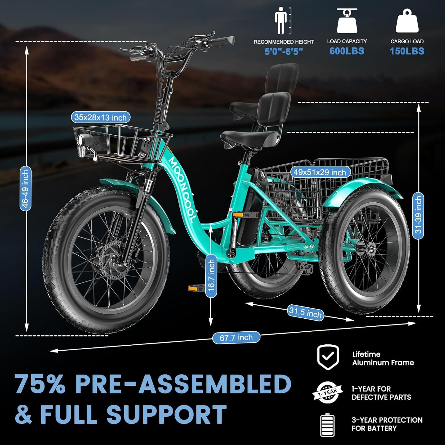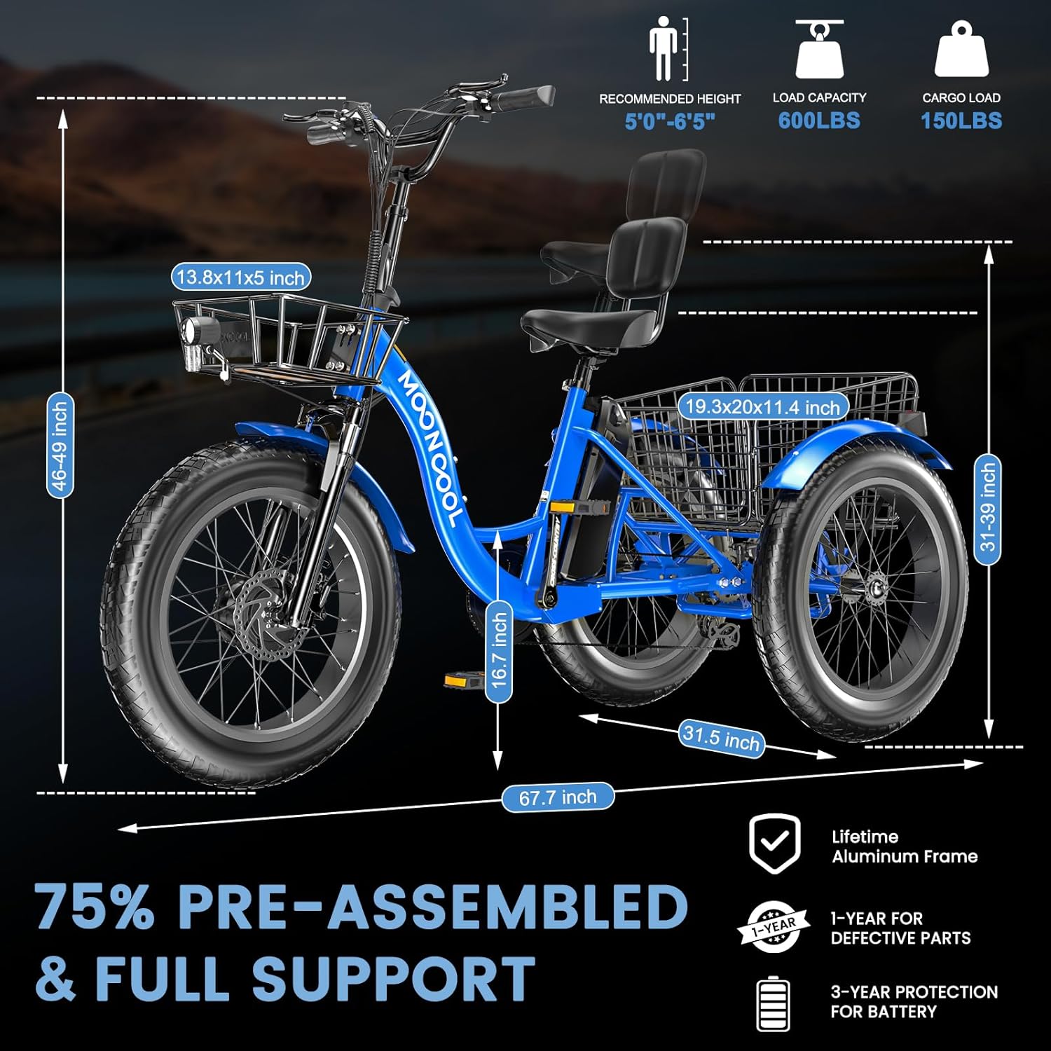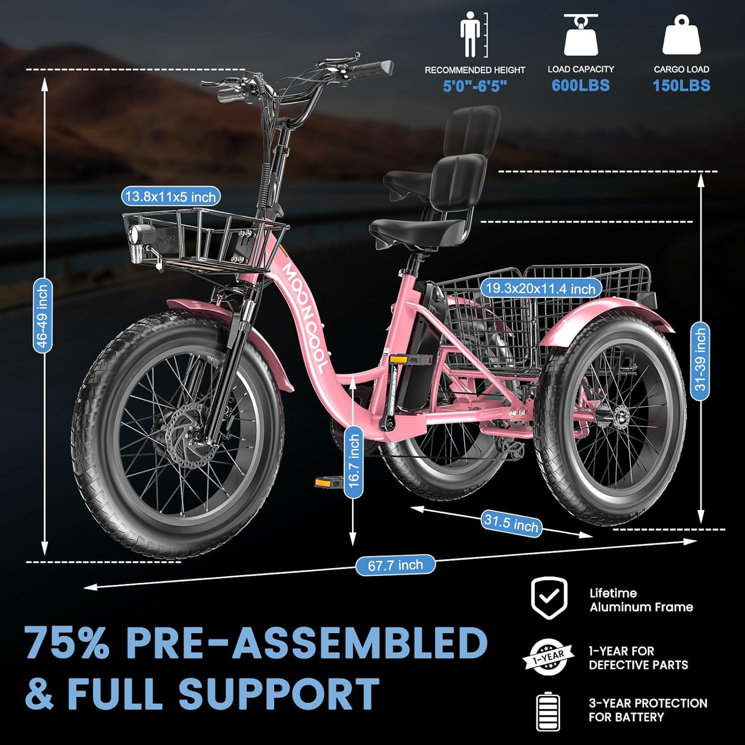 - Ride with Confidence: Our electric trikes come with sturdy 20'x 4' puncture-resistant fat tires, providing excellent grip on any terrain. Featured with the 6061 aluminum bike frame, ensures strength and longevity, providing a sturdy foundation for your rides