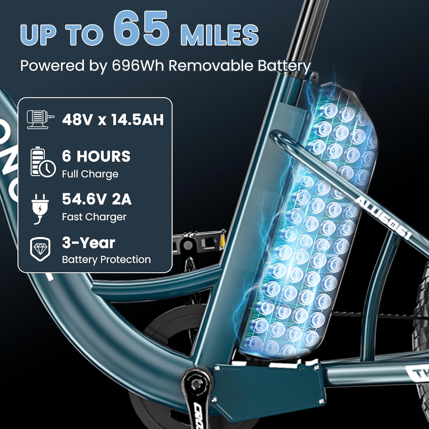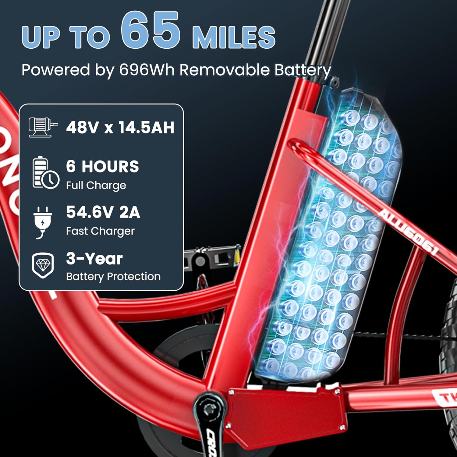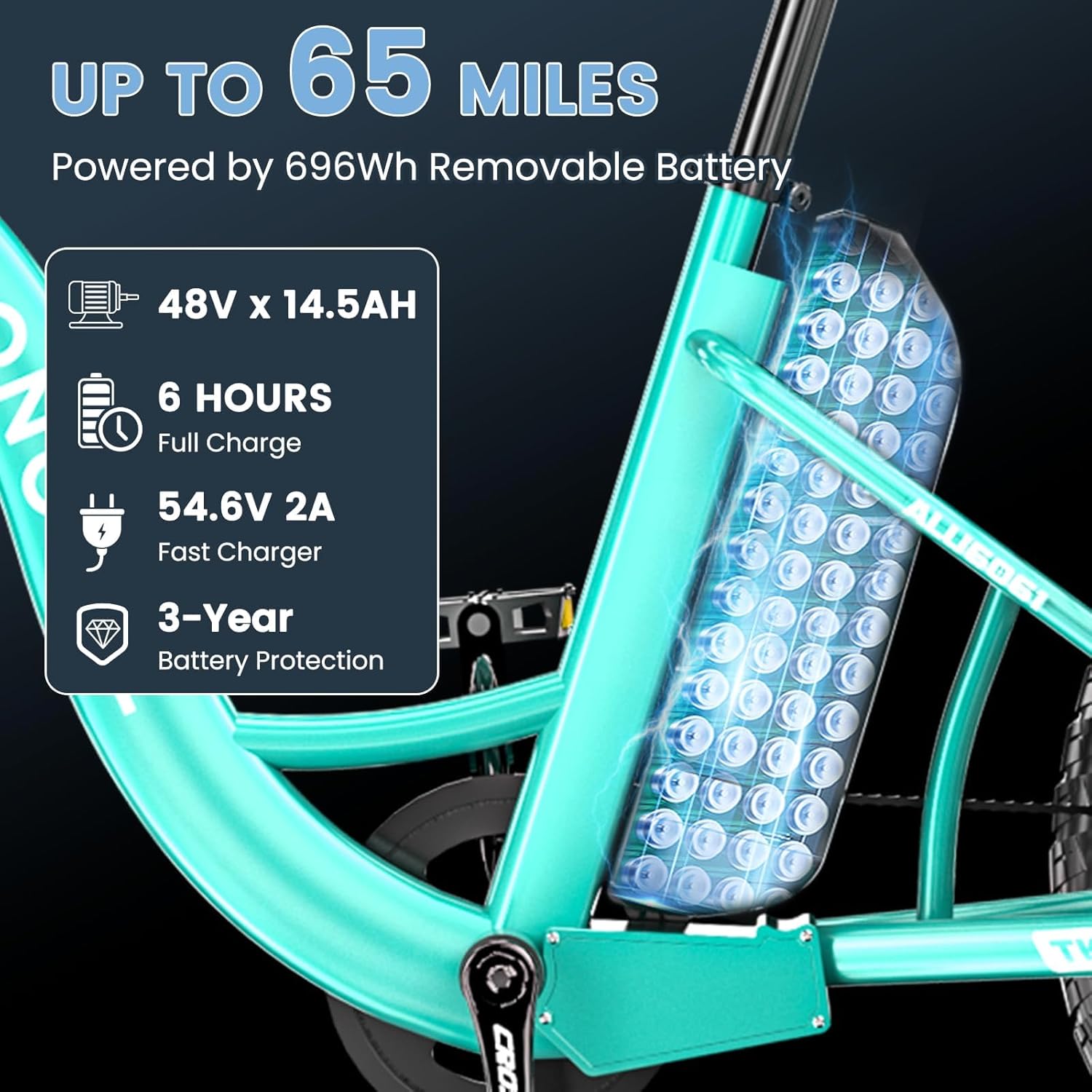 - Powerful Setting: Experience powerful performance with the 48V 500W motor, reaching a maximum safe speed of 15.5mph on this electric tricycle. The 48V 14.5Ah removable battery provides a generous range of 30-45 miles