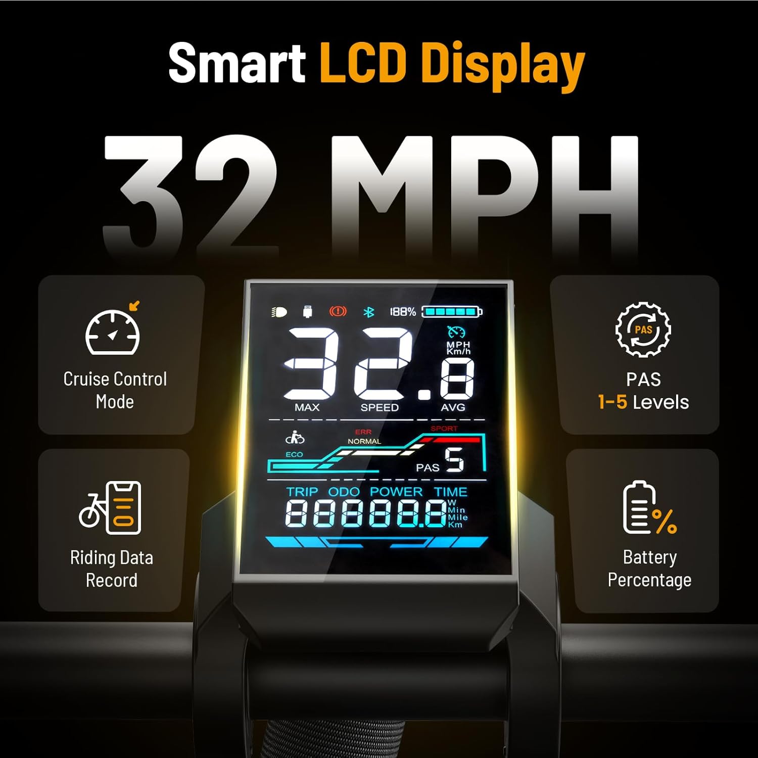 - Powerful Brushless Motor & 32 MPH Max Speed: Equipped with a 1000W (peak 2000W) brushless hub motor, the Jasion YR20 electric bike delivers a top speed of 32 MPH and conquers 30° inclines. Whether you're navigating city streets or exploring rugged trails, this bike offers exceptional power and smooth acceleration, making it the perfect choice for both daily commutes and thrilling off-road adventures