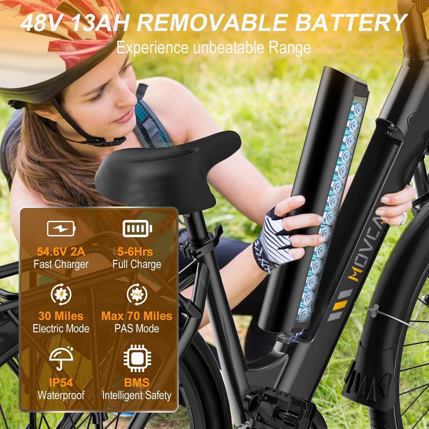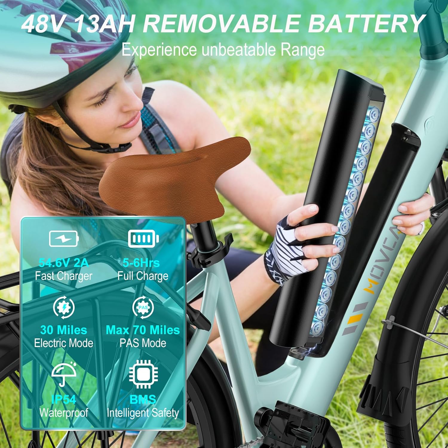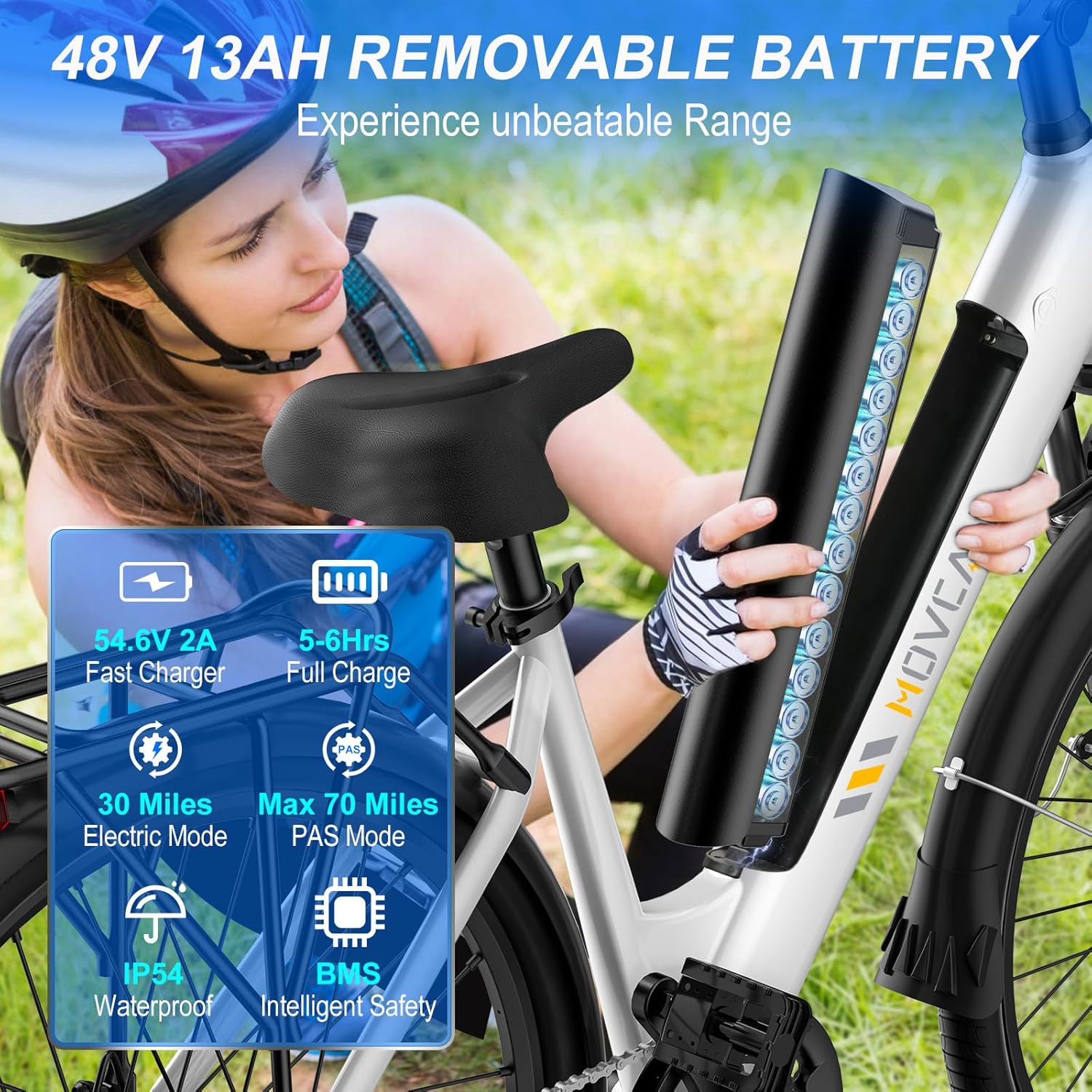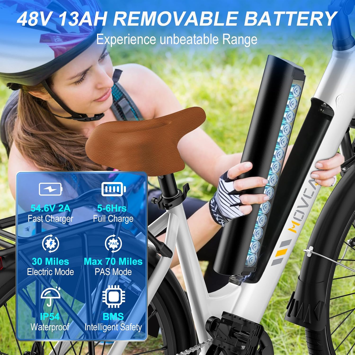- _48V 13Ah Removable Battery & Limitless Exploration__bikes is equipped with 48V 13Ah batteries, which are UL2849 certified and have a BMS system, greatly improve the safety factor. The removable design makes it more convenient to charge the battery at home or office. Providing up to 70 miles range per charge (PAS mode) and 30 miles in pure electric mode. Allowing you to go anywhere you want.