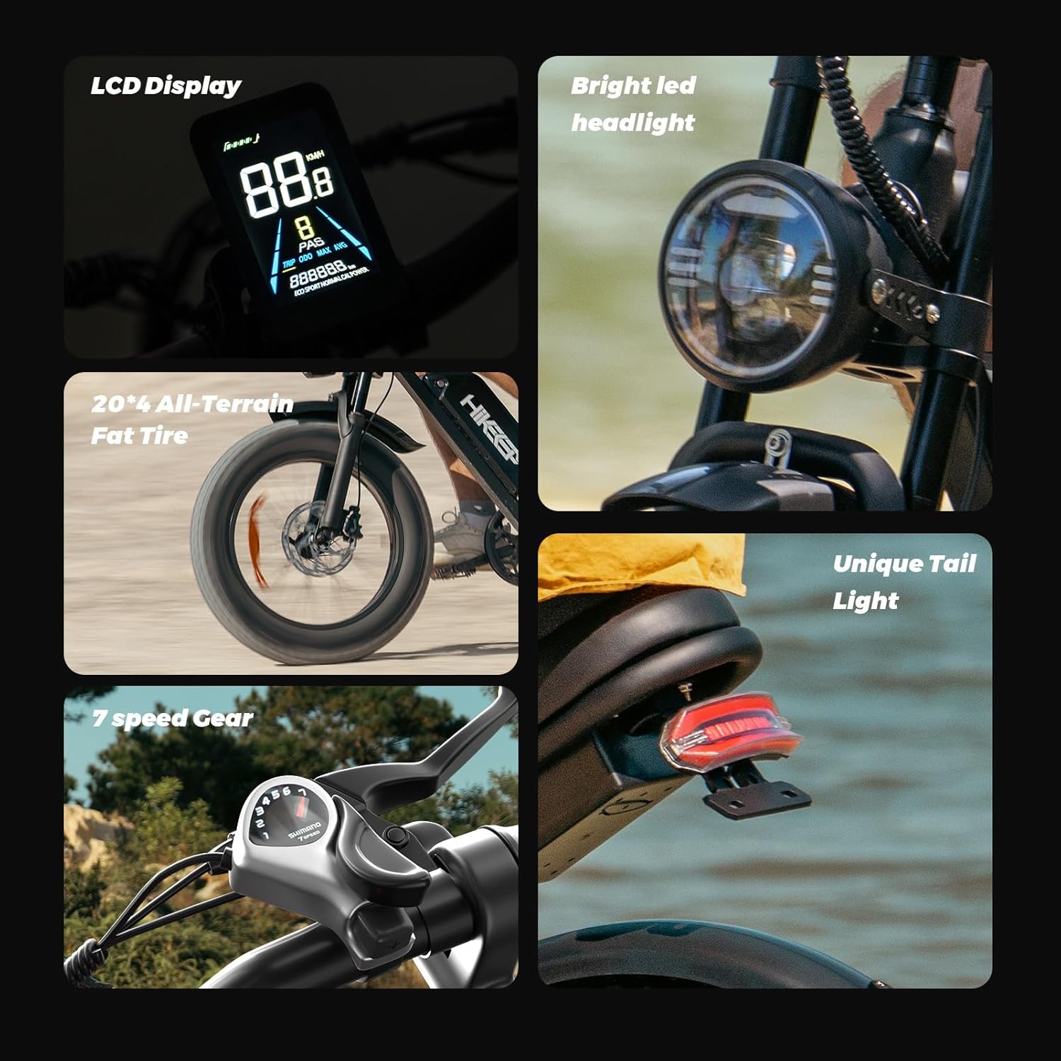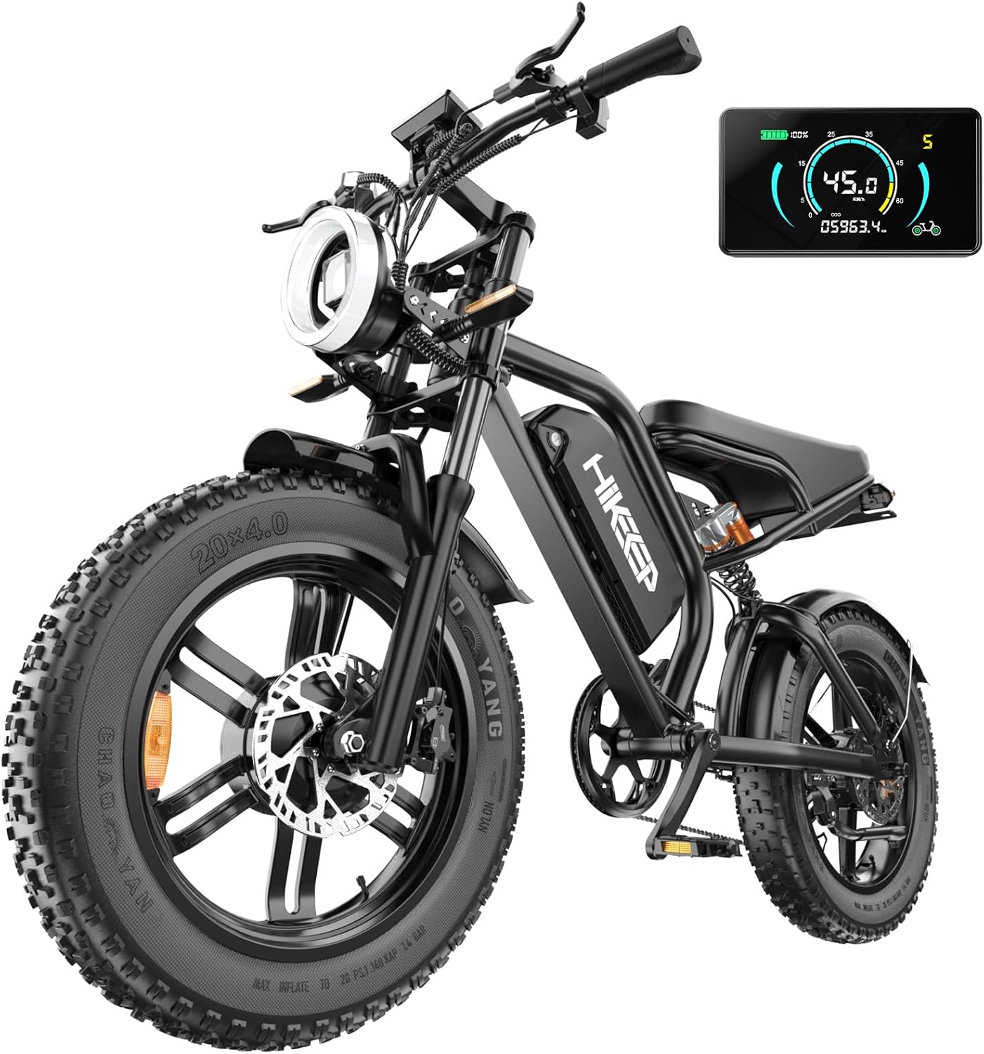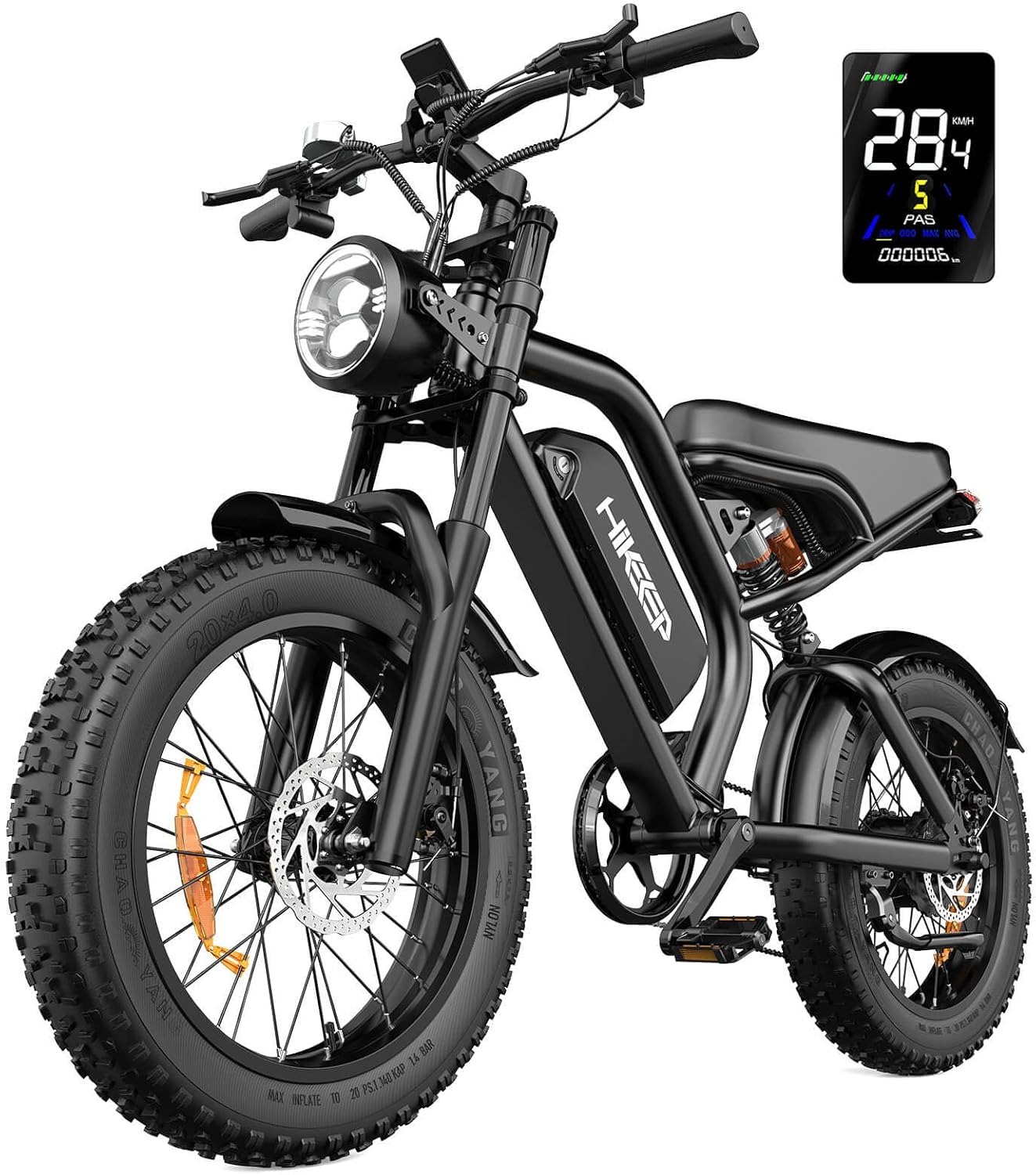 - __pgraded Electric Bike for Adult__he 1500W peak brushless hub motor and the battery of 48V/13AH offers enhanced climbing ability, reaching speeds of up to 30 mph in pure electric mode, effortlessly conquering gradients of up to 35 degrees. Two 20__ 4_ Fat tires puncture-resistant tires adapt to all terrain. Enjoy the speed and freedom.