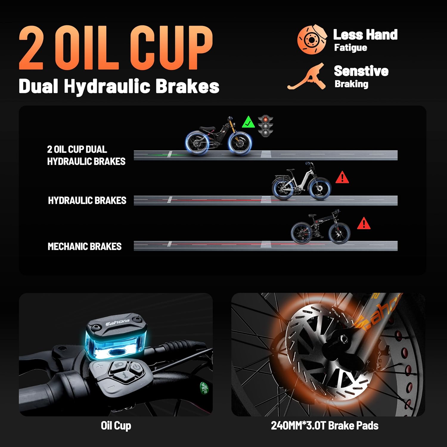 - __HY eAhora Romeo Pro II USE 4-PISTION HYDRAULIC DIS BRAKES?___Braking Power more powerful, better for aggressive riding. _Offer more precise control and modulation. _Heat management will better, with more pistons, the increased surface area means heat is more evenly distributed, helping to avoid brake fade.